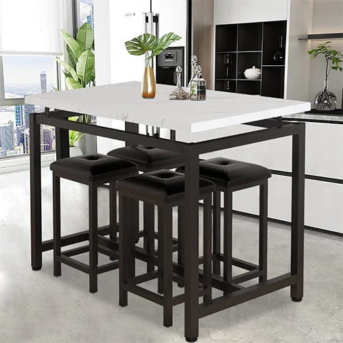 Our modern bar table set with 4 counter height stools has wide application. It is suitable for dorm, apartment, home, bistro, pubs, as well as your home, like the kitchen or dining room.
