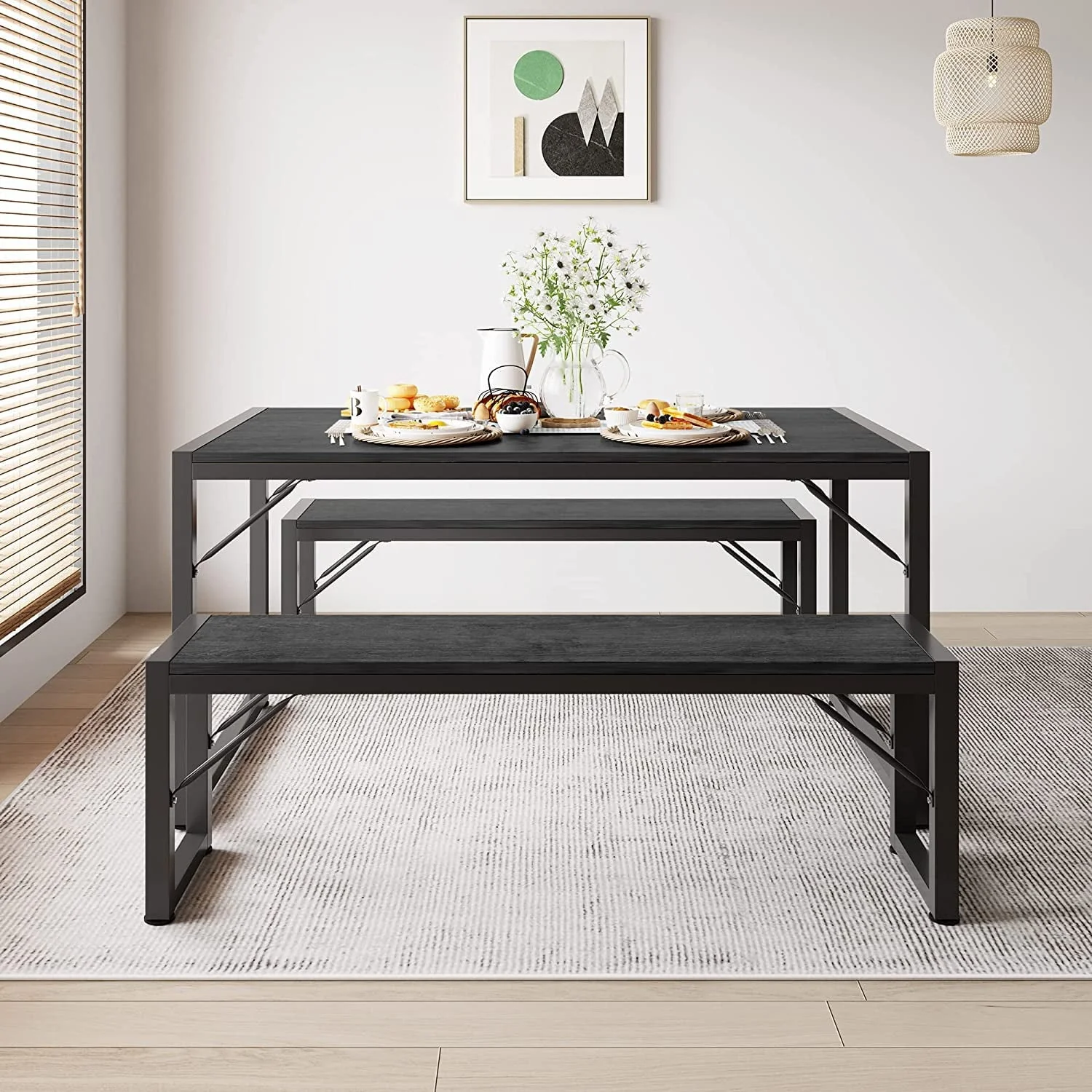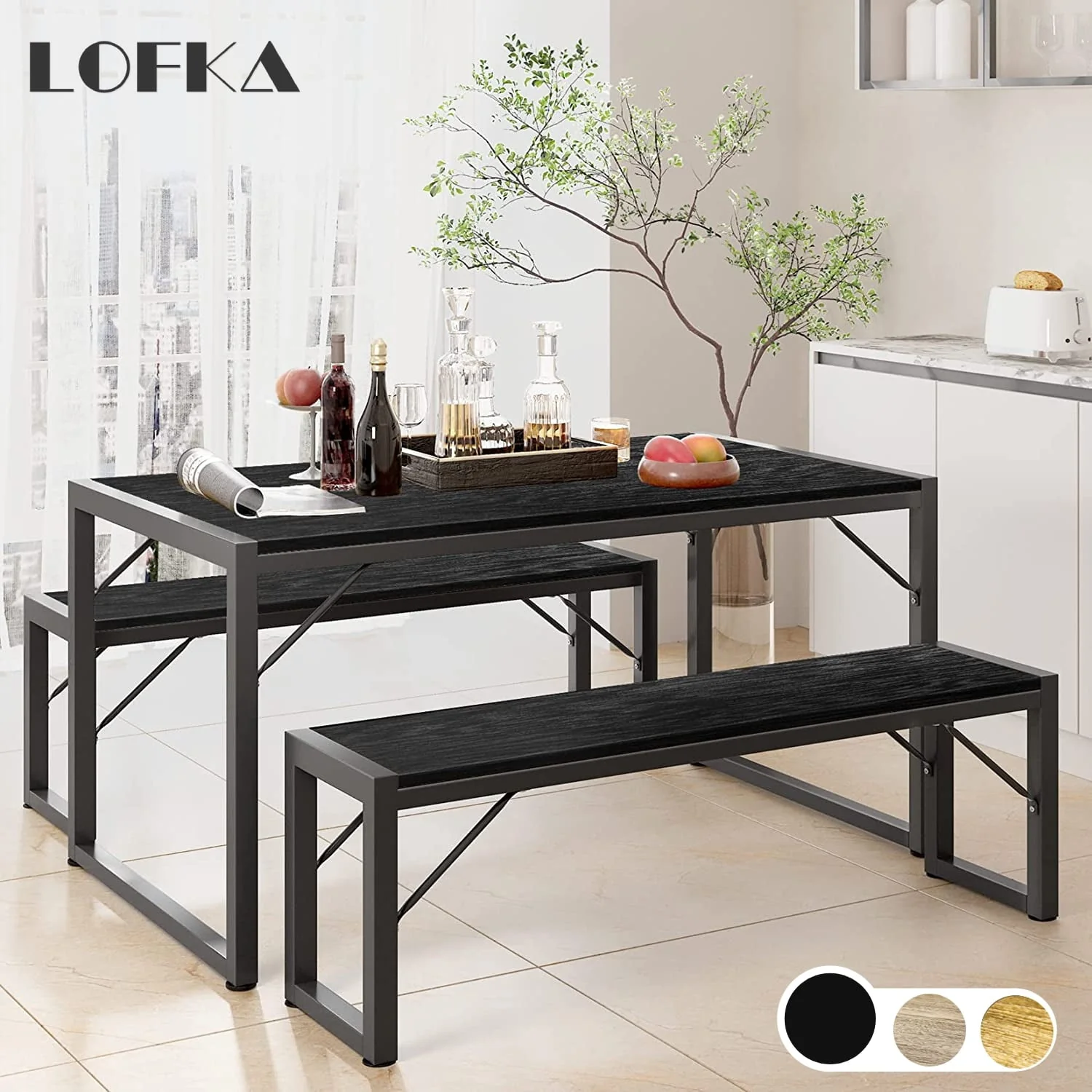 Lofka Modern Dinner Table Set with 2 Benches(Black/Gray/Retro)