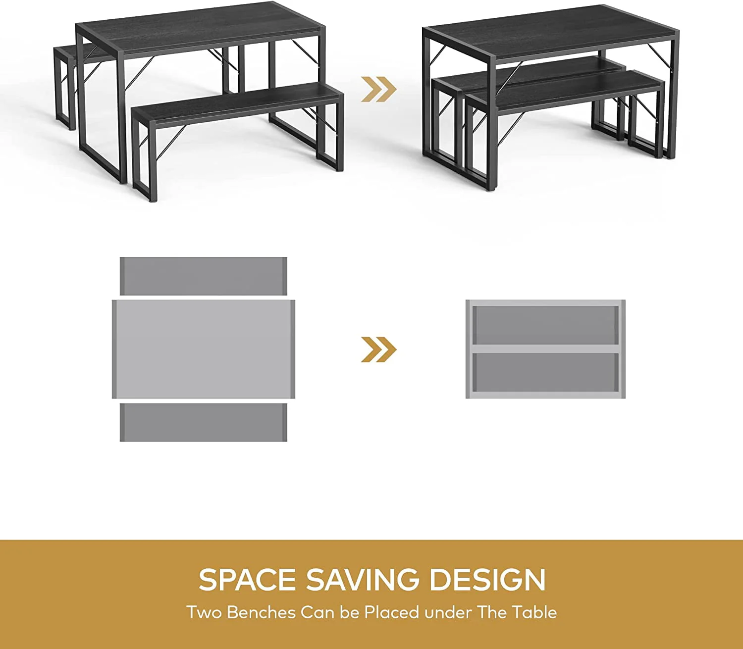 In small spaces like condos, kitchens, studio apartments, dorms, and more, the Dining Set's two beautiful black benches can be stored under the standard height table for space-saving storage while not in use. As well as prevent from tripping.