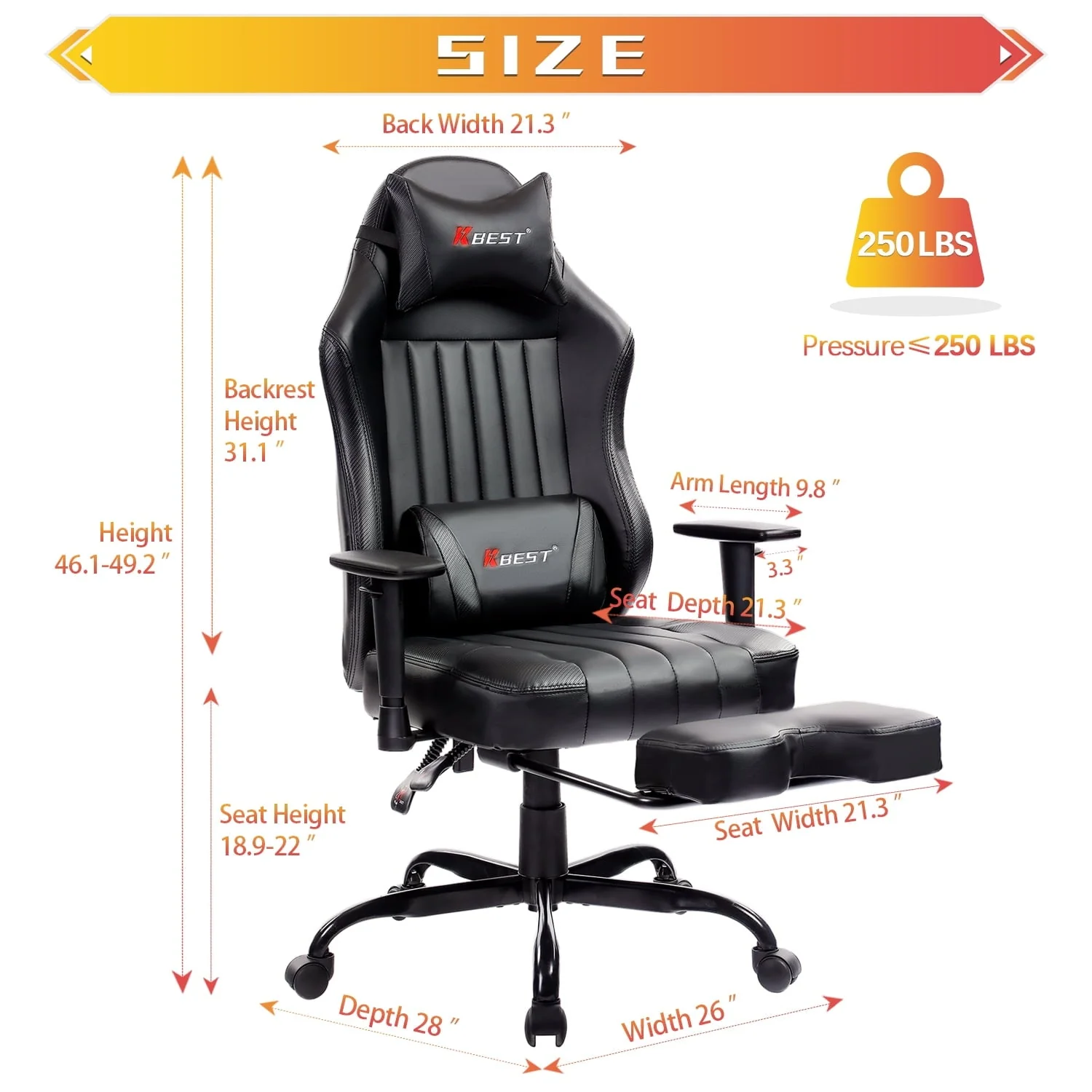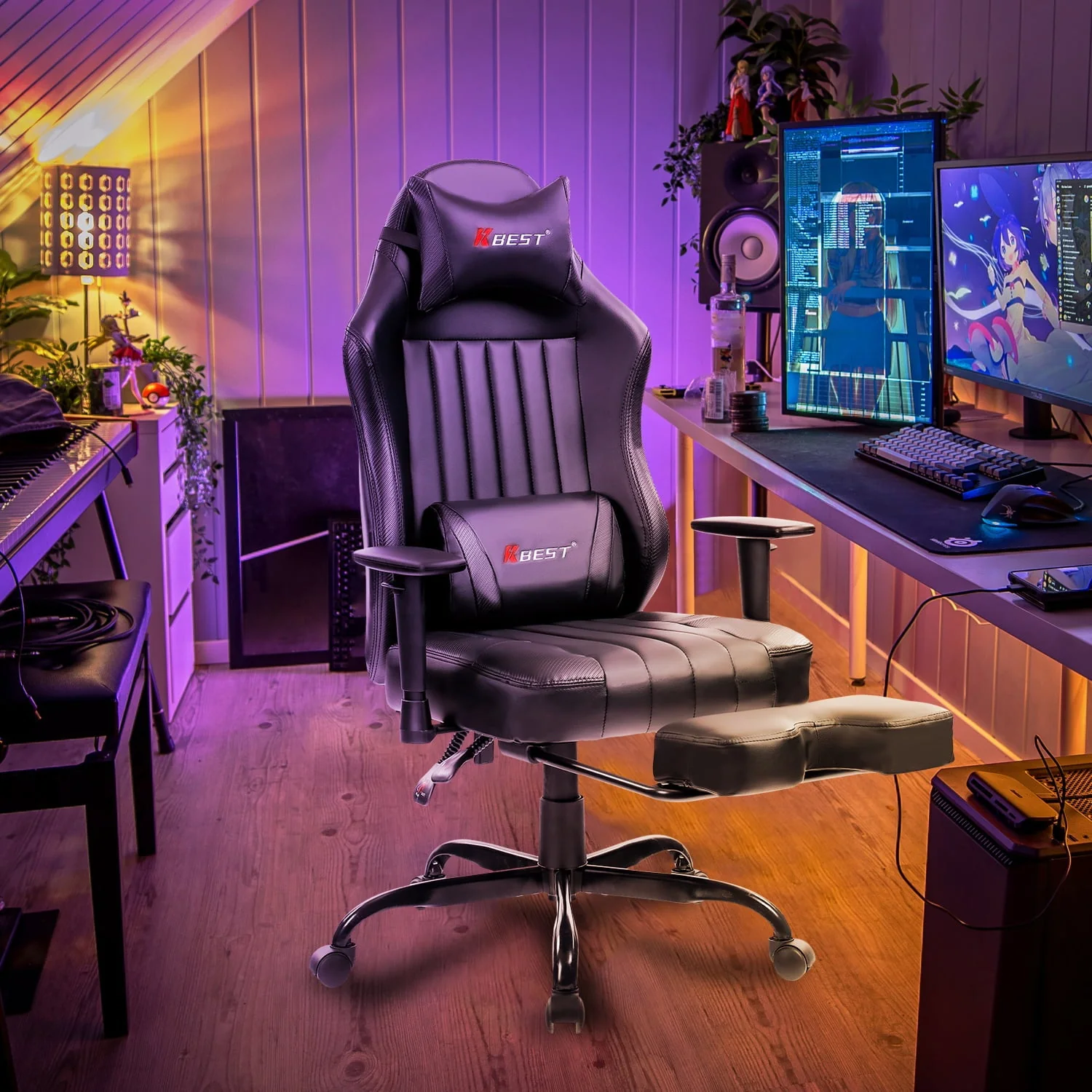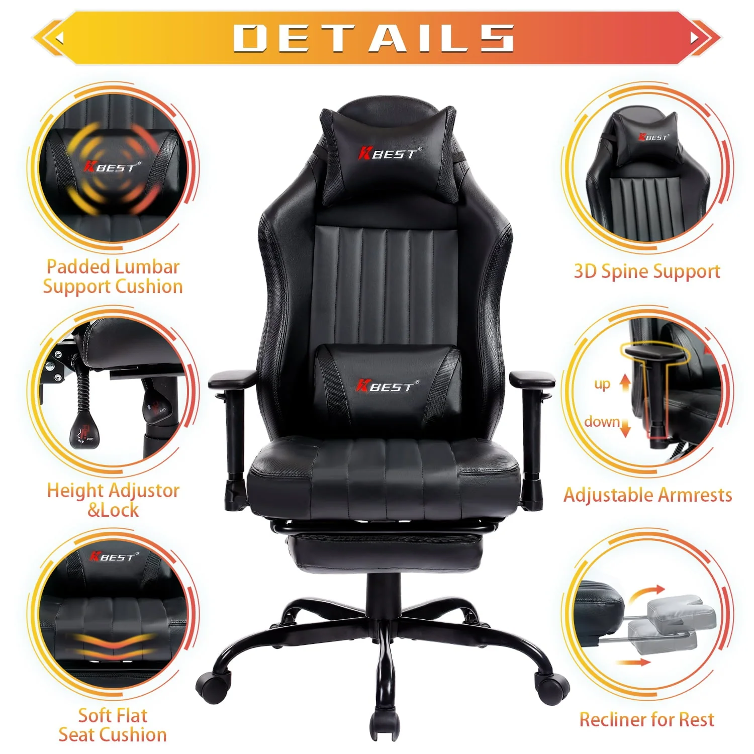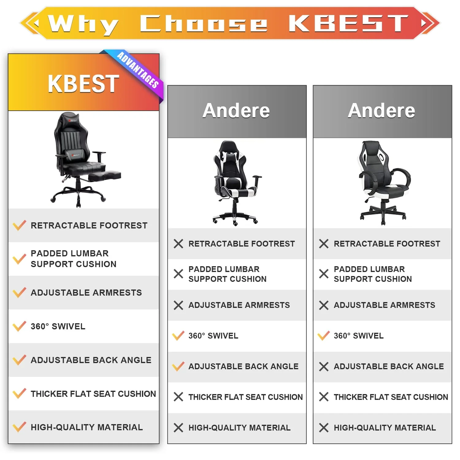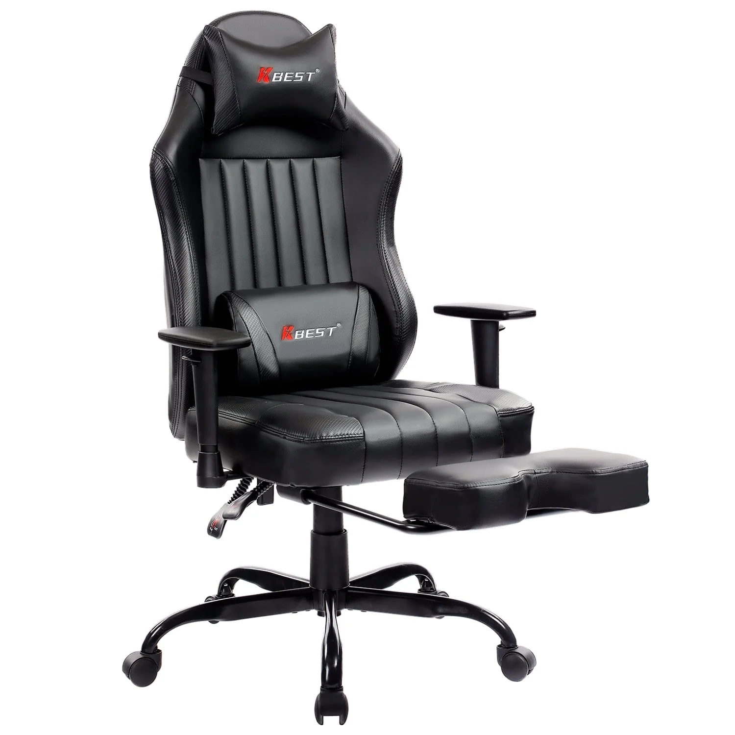 KBEST gaming chair is your ideal choice for working, studying, and gaming. The KBEST series with ergonomic design is one of the classical series among our products. With an adjustable headrest and lumbar pillow, it comforts both the cervical and lumbar spine. Seat cushion and chair back full of high-density sponge keep you comfortable after day-long sitting. The ergonomic design and high-quality material make KBEST chairs perfect for both home and modern offices. Upgrade your gaming office set-up with KBEST,Black