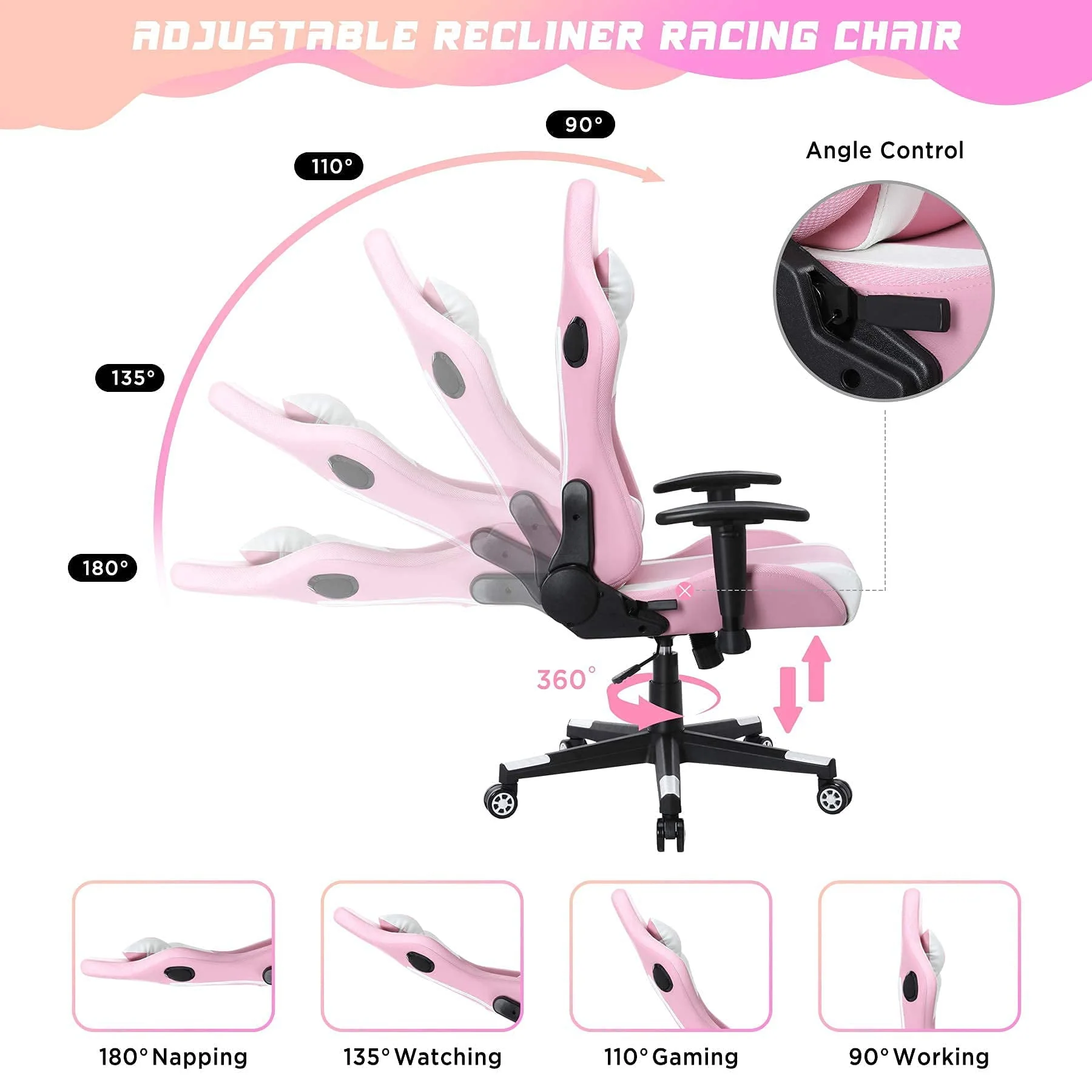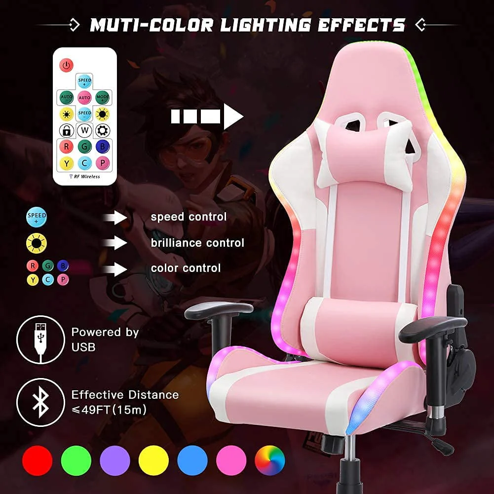 Are you uncomfortable sitting on a normal chair while playing games? Try our HomeMiYN gaming chair, and play like a legend! A professional grade gaming chair would help you do better in games! HomeMiYN gaming chair is your ideal choice for working, studying, and gaming. It comforts both the cervical and lumbar spine. The racing-style angle adjustor helps you enjoy reclining and rocking at the same time. Seat cushion and chair back full of high-density sponge keep you comfortable after day-long sitting. With 2 video speaker and LED light, this gaming chair can give you a better gaming experience!