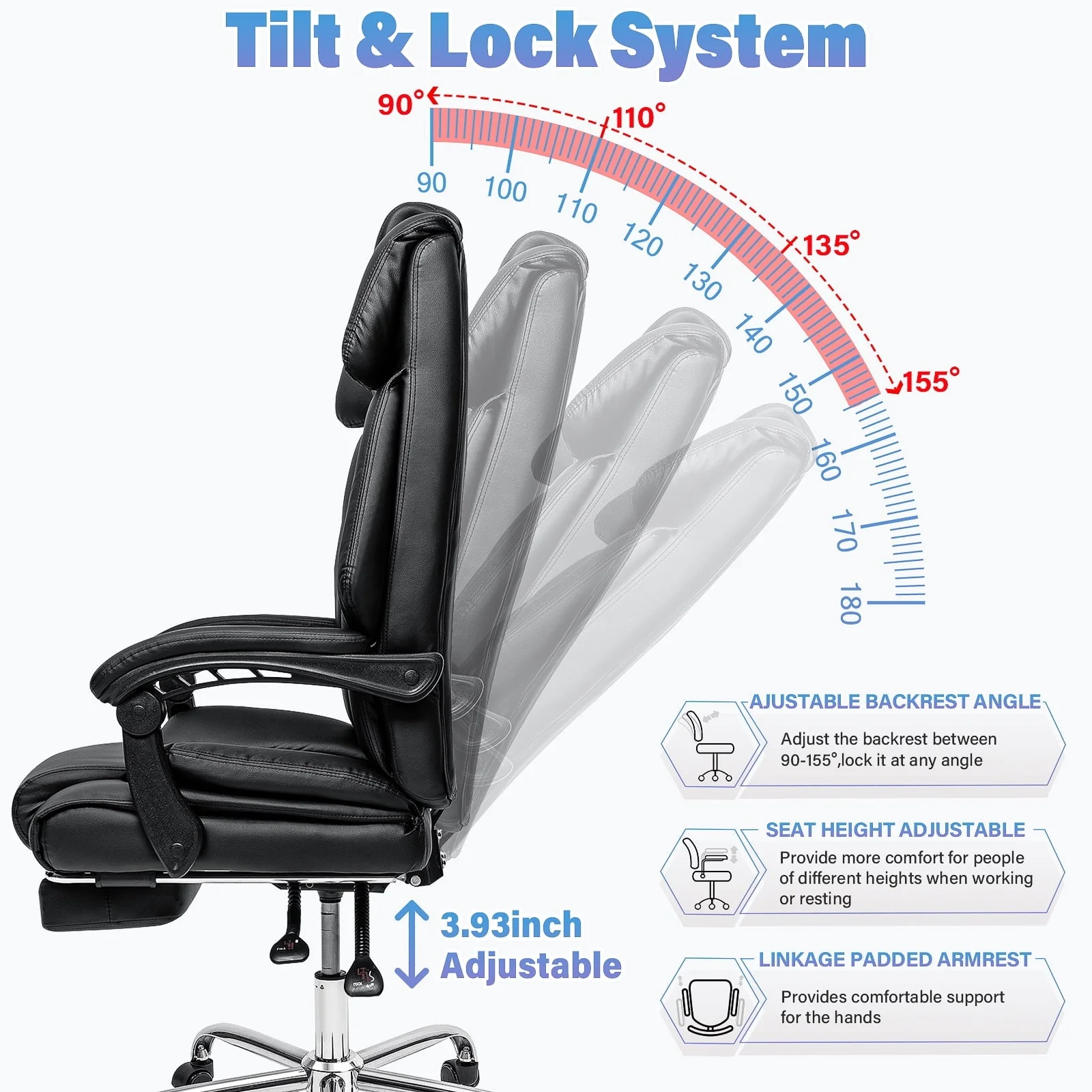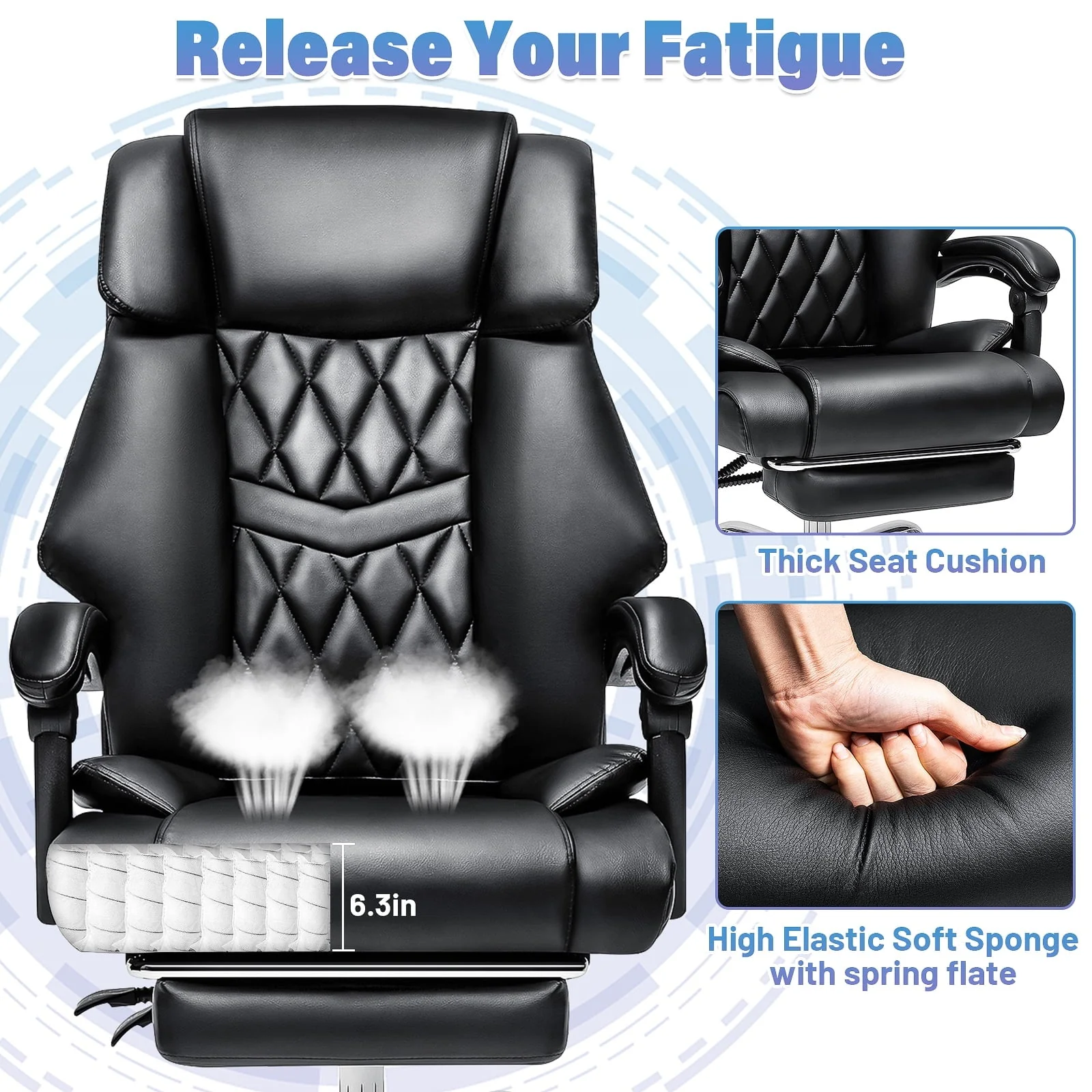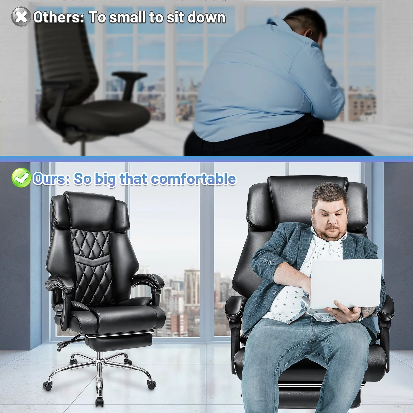 Our office chairs are adapted of high quality pu leather, big and tall designed shape, providing immersive sitting experience. It is easy to assemble. Follow the instruction step by step and you will get a perfect chair! Don't miss it, you deserve it now.🔥Today's Deal
