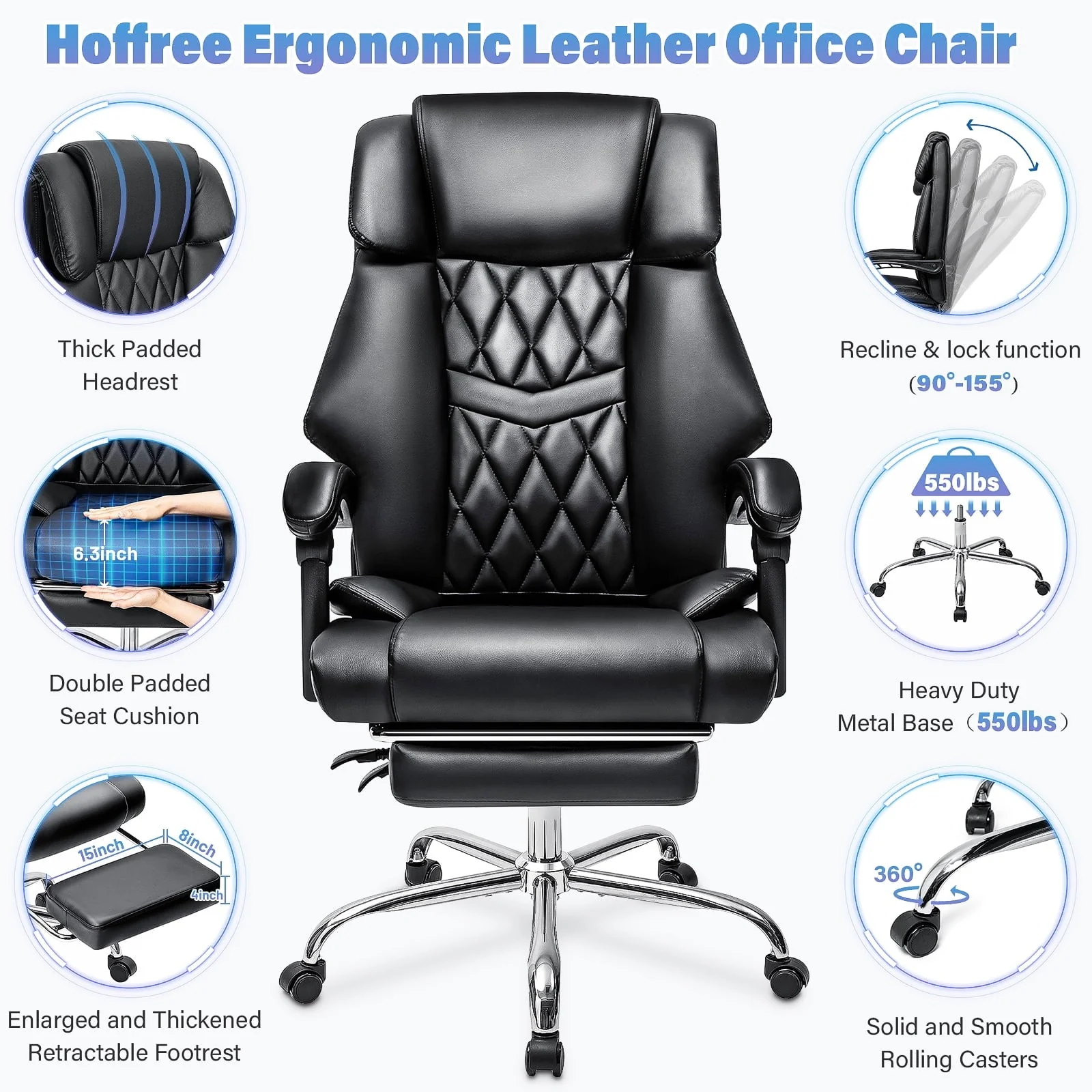 Hoffree Big and Tall Office Chair Ergonomic High Back Cushion Computer Desk Chair with Lumbar Back Support Adjustable Executive Leather Chair Heavy Duty for 8 Hours Working Home Office, 550lbs