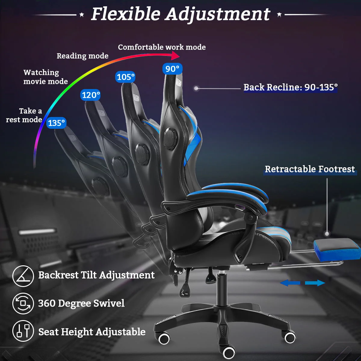 Hoffree Message Gaming Chair with RGB LED Lights, Racing Style Recliner Swivel Video Game Chair with Speakers, Adjustable Ergonomic High Back Computer Chair with Headrest & Lumbar Support
