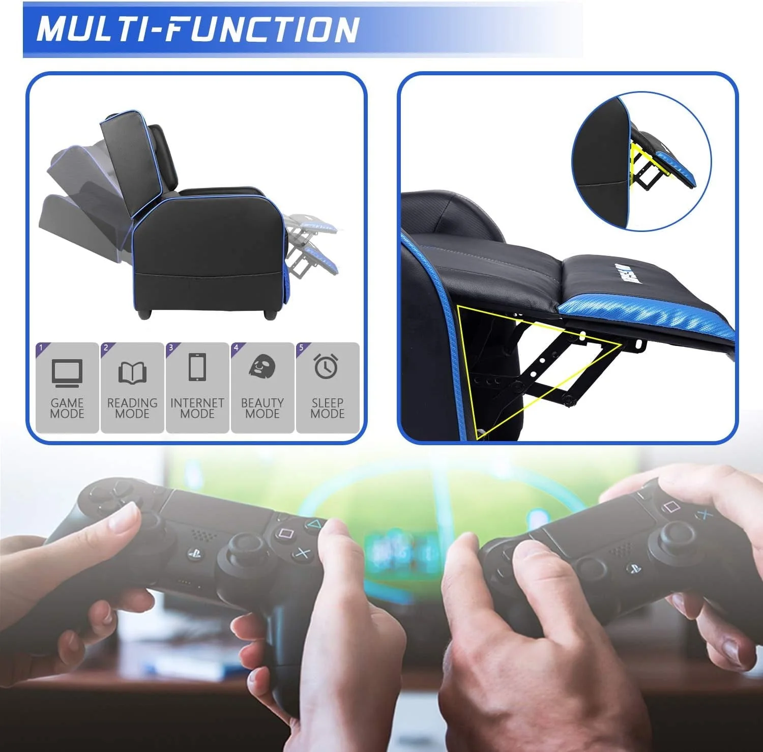 PUKAMI Gaming Recliner Chair for Adults 400 lb Racing Style Sofa Big and Tall PU Leather Recliner Seating Modern Ergonomic Lounge Recliner Chair Comfortable Home Movie Theater for Living Room
