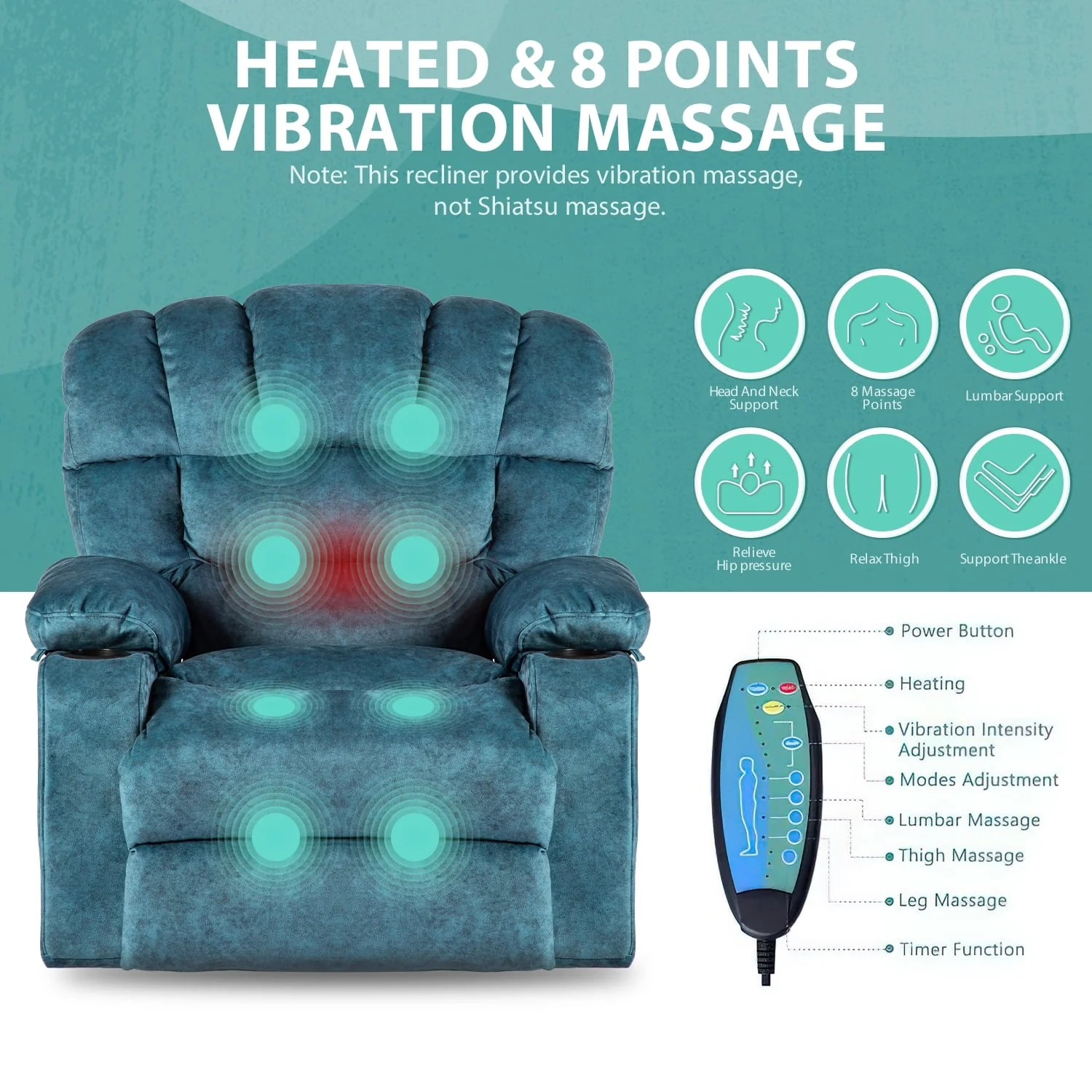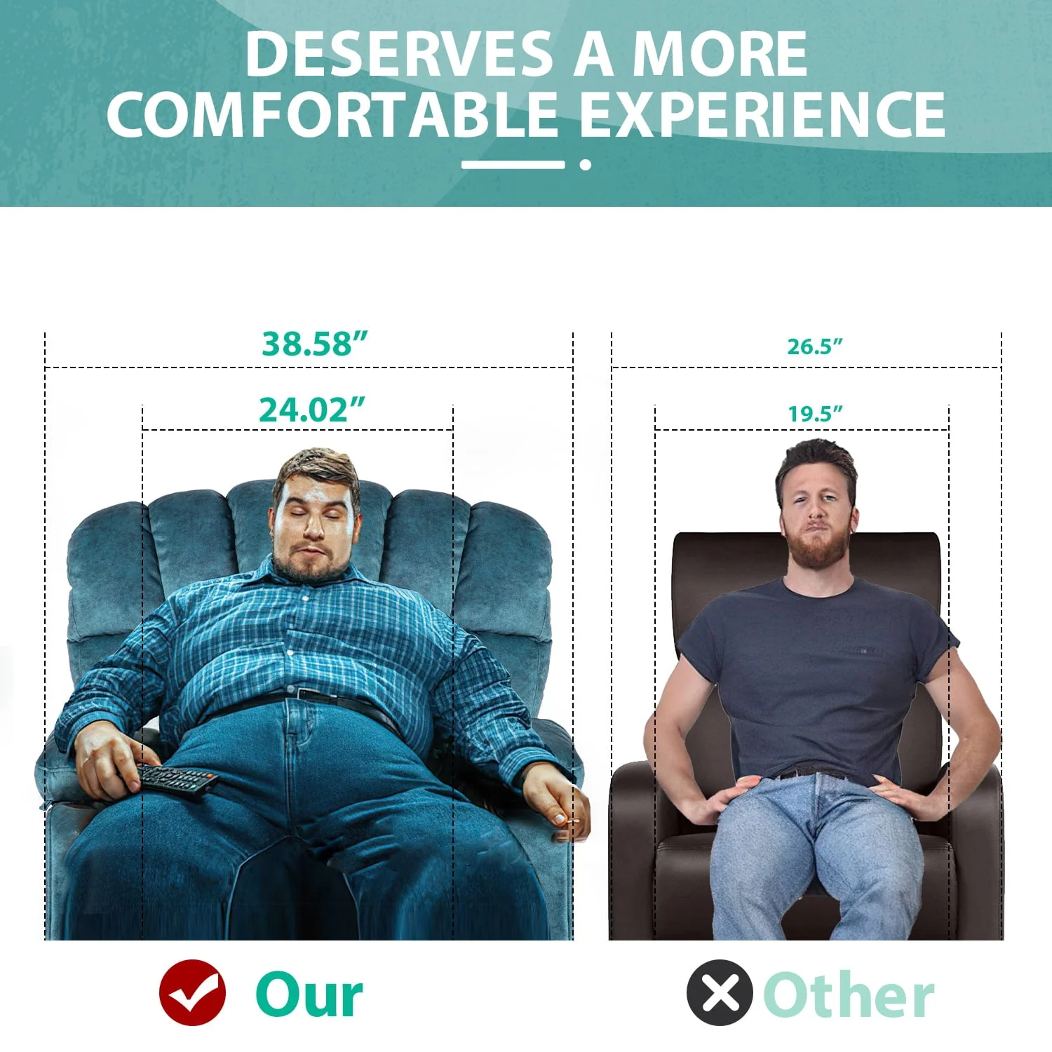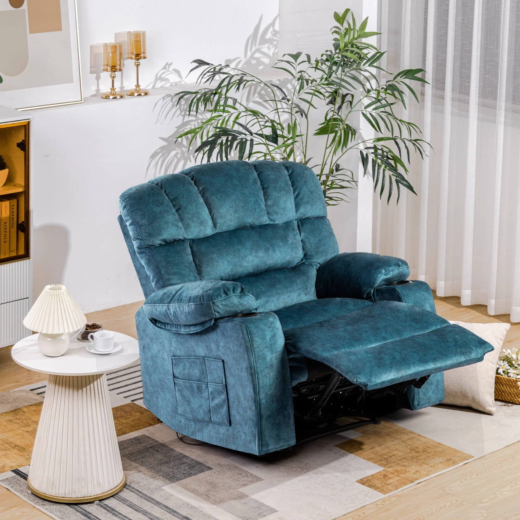 • Colerline 40.9" Wide Super Soft and Oversize Modern Design Velvet Upholstered Manual Recliner Chair with Heating and Massage, Green