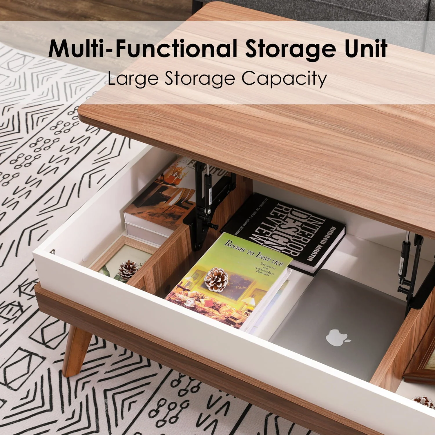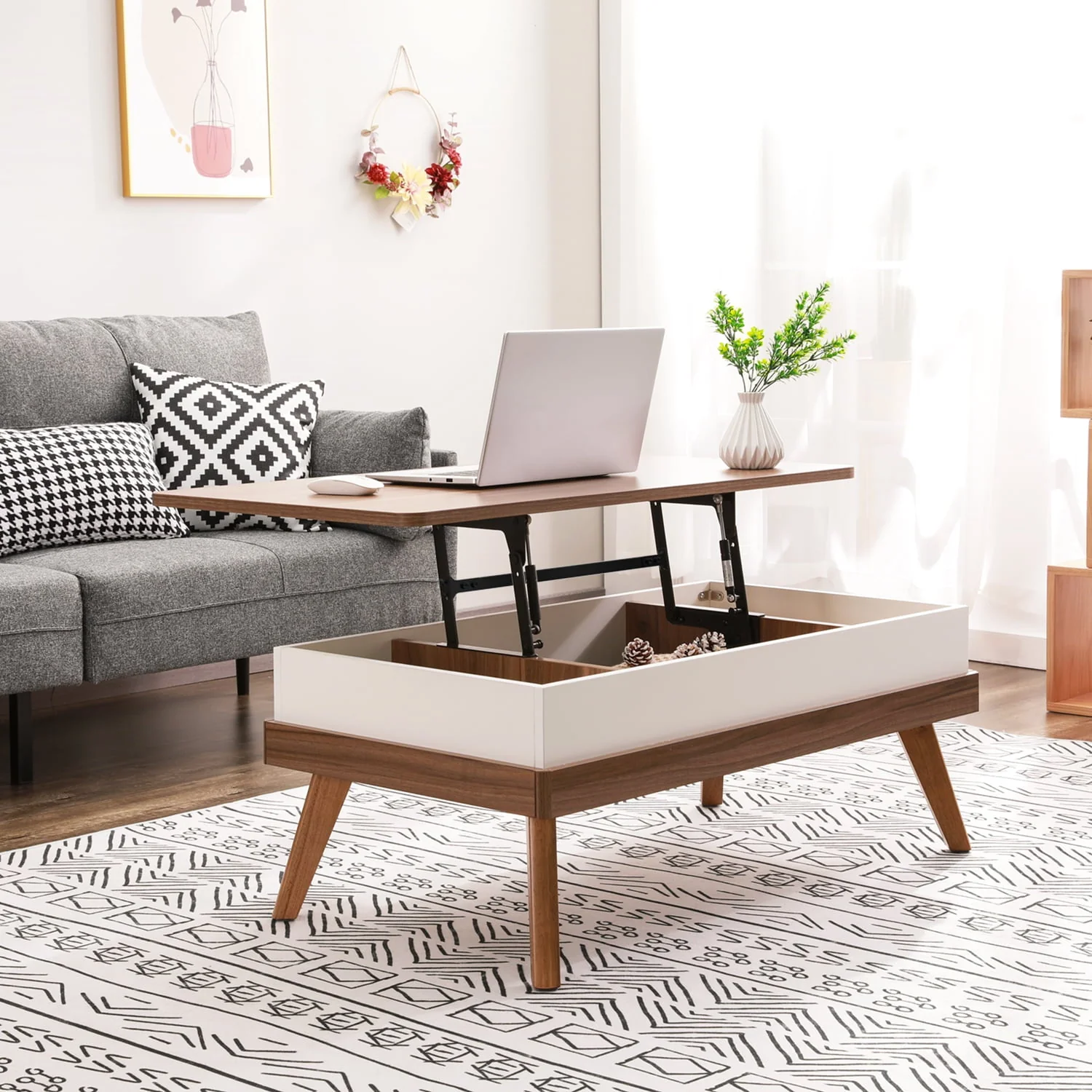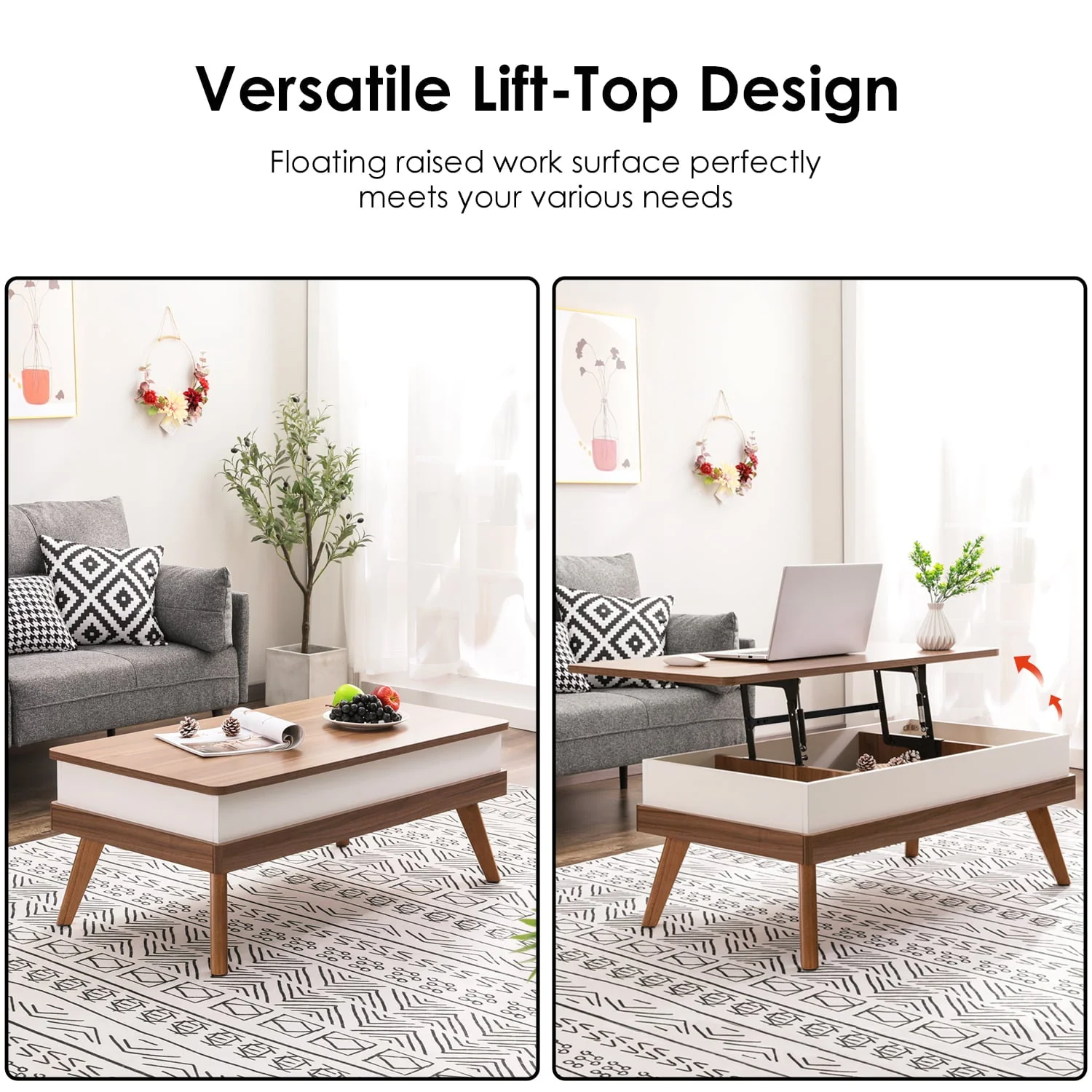 10 MINUTES TO ASSEMBLE: It only takes you 10-15 minutes to assemble the coffee table. You only need to assemble 4 table legs.With its minimalist design and the use of neutral colors, Bidiso lift-up coffee tables can perfectly compatible with any room style and decor. VERSATILE LIFT TOP DESIGN: Bidiso multifunctional coffee table provides you with a floating raised work surface. The tabletop can be lifted up and moved forward, which perfectly meets your various needs for home office and dining.The high-quality metal mechanism ensures that the table top can be raised and lowered easily, smoothly and quietly. SAFETY FEATURE: The coffee table has rounded corners design to avoid damage and injury. It tenderly emphasizes modern and stylish character in addition to adding a high-end feel. HIDDEN LARGE STORAGE SPACE: Raise the table top, you can find three hidden storage compartments, which can store a lot of objects.It makes your room tidy up in good order, clean and tidy.You can store your often-used items like magazines, laptop, remote controllers, game controllers and so on, keeping them handy and dirt-free.