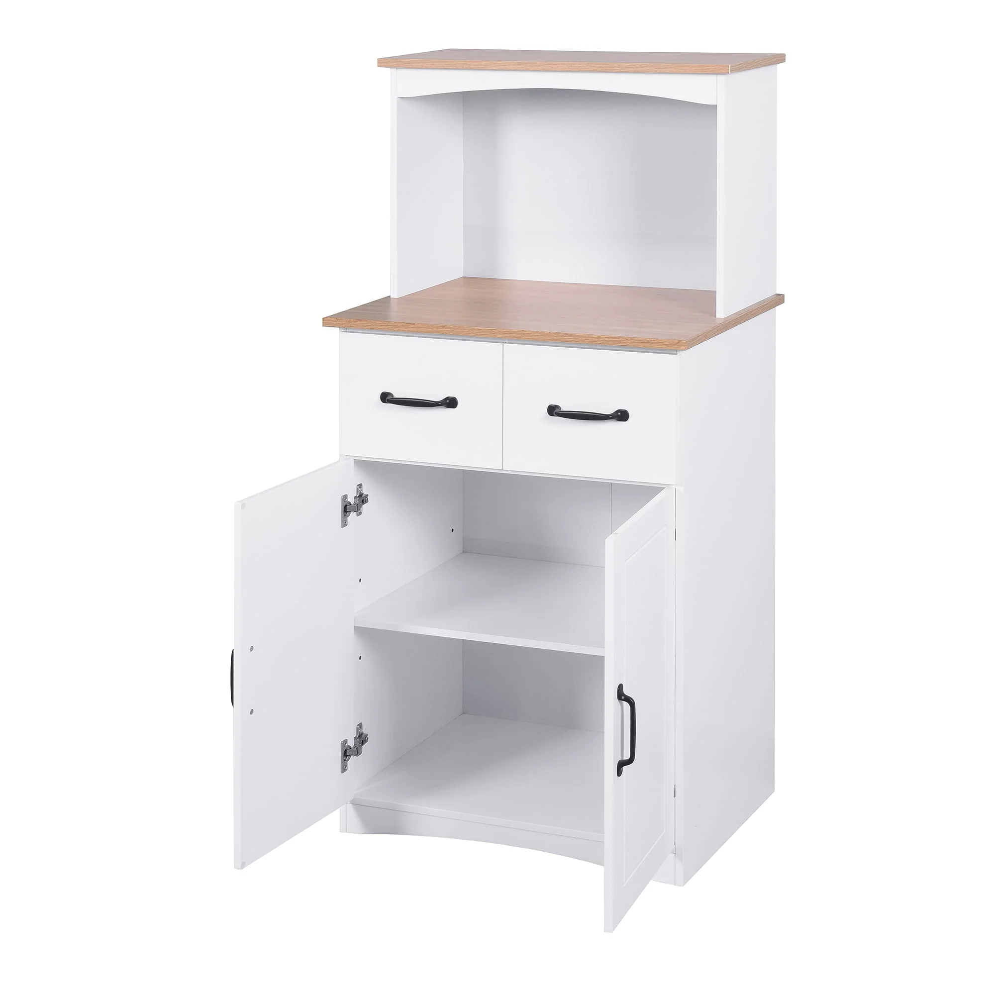 ♥ Hassle-Free Storage: Featured with a cabinet with doors and adjustable shelves, it can meet your different storage needs. There is an open shelf in the middle for home appliences like microwave or coffee maker. You can use 2 drawers to store tableware, knife fork, seasonings