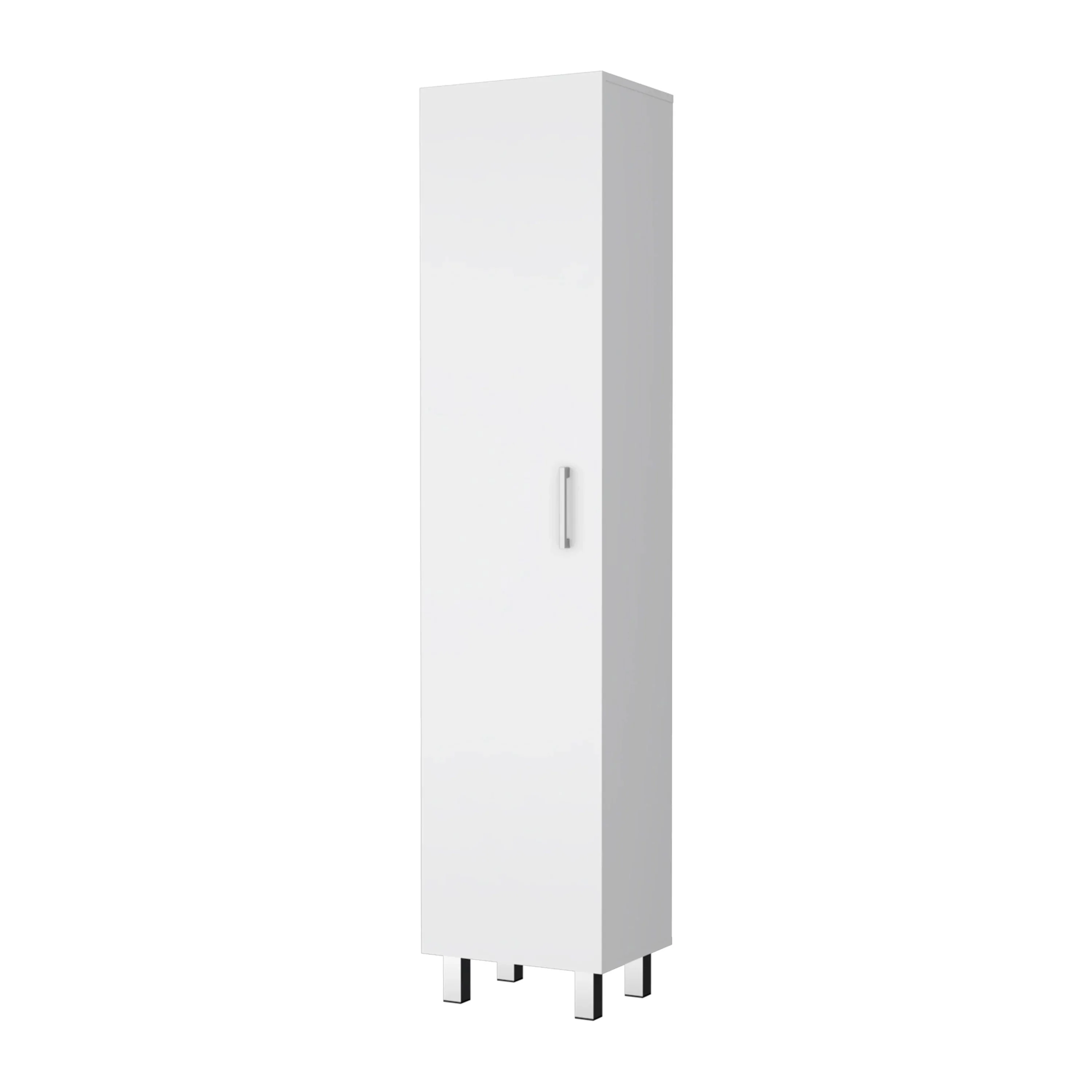 Do you have a cluttered home with no place to store your things? Look no further because the Clarno Tall Storage Cabinet is here to help! With its slim shape, it can easily be adapted to fit into any space in your home, and it comes with a long, wide door with broom hangers inside, perfect for organizing your brooms. Plus, it has four wide shelves inside that are perfect for storing all your toiletries in an orderly fashion. And to top it all off, its metal handle and legs match perfectly! So don't wait any longer, order the Clarno Tall Storage Cabinet today and start decluttering your life!