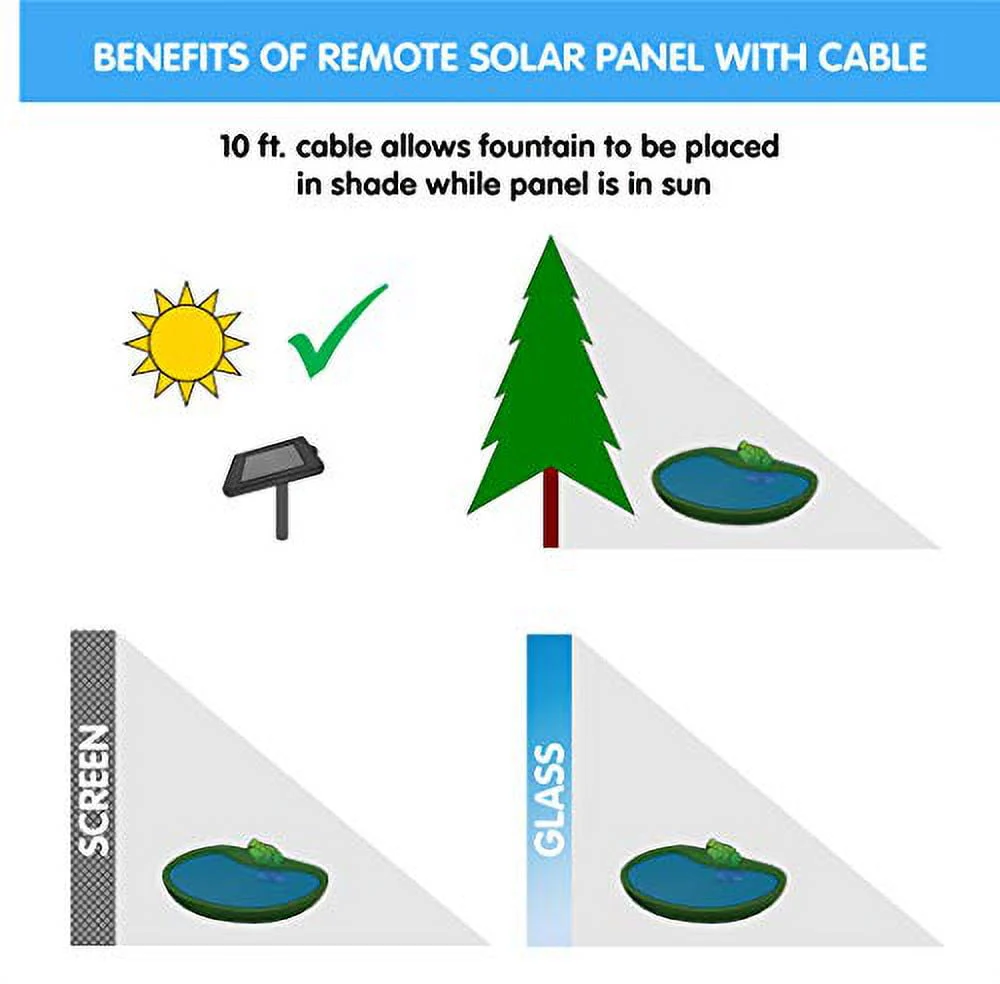 The solar-powered fountain comes with a separate solar panel. Place the panel in a spot with full sun and connect the solar panel to the fountain bowl with the provided 10-foot cable. There's no additional wiring; simply install and enjoy.