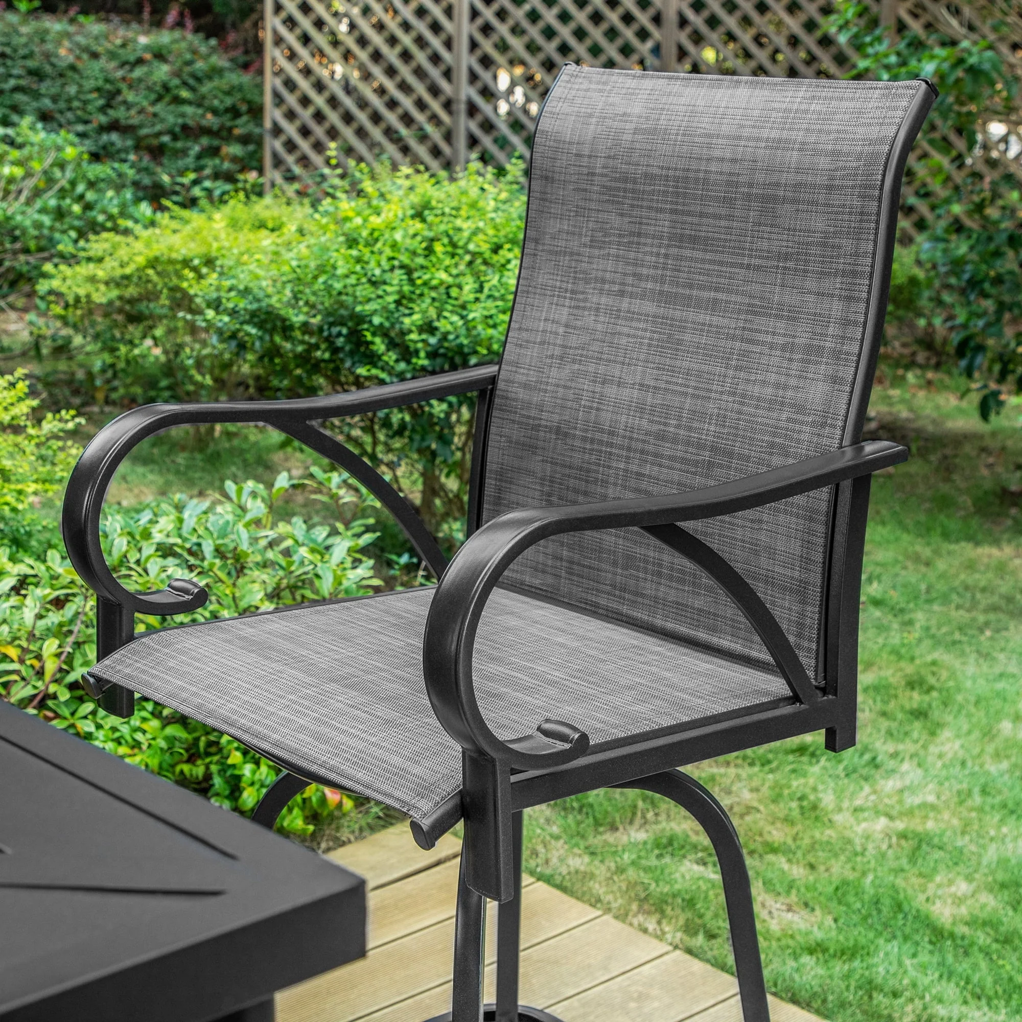 Summit Living 5 - Piece Outdoor Patio Swivel Bar Stool Dining Set with 4 High - Back Textilene Chairs with Armrest&1 Bistro Bar Table, Black&Grey