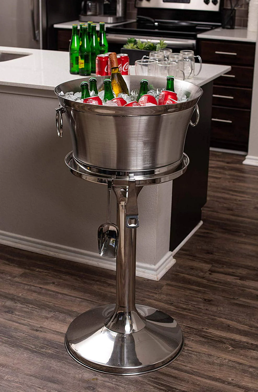 Dress up your indoor or outdoor table with our stylish BirdRock Home Stainless Steel Beverage Tub with stand, ice scooper and bottle opener. Double wall design keeps drinks cold without condensation. 18/8 Stainless Steel makes this beverage tub look and feel professional. Works great for parties, tailgates or events. Care instructions: Hand wash with warm water and mild soap. Wipe with a soft dry cloth. Made in India