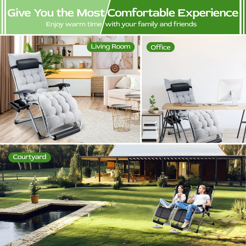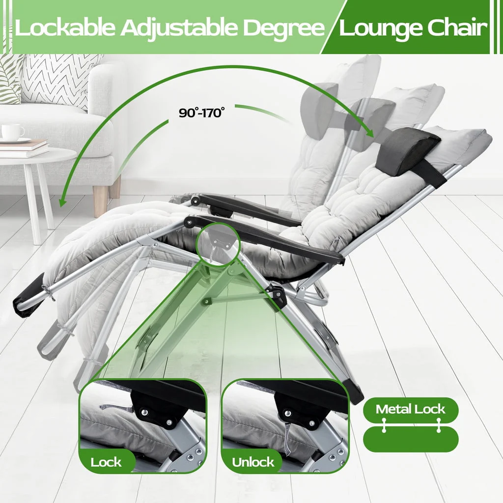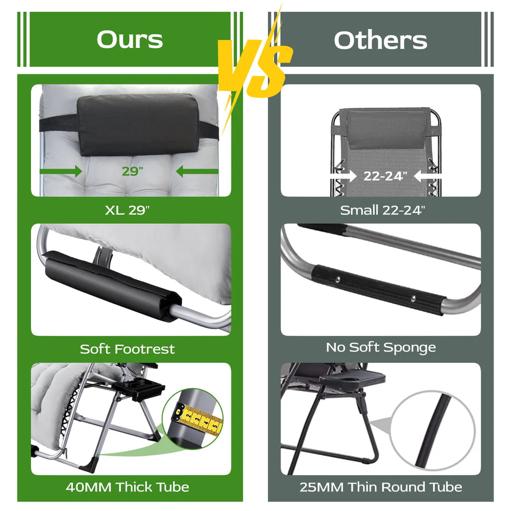 • Oversized Zero Gravity Chair, VECUKTY Oversized XL Ergonomic Patio Recliner Folding Reclining Chair for Indoor and Outdoor, Gray