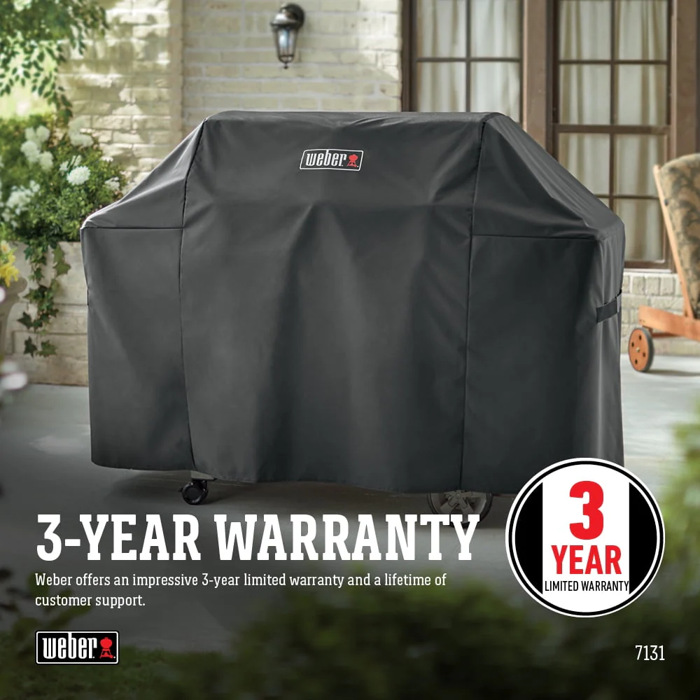 Keep your investment protected and safeguard your Weber Genesis II Gas Grill with this polyester Weber Grill Cover. Its revolutionary design has the flexibility to make grill cover-ups a cinch, yet has a vinyl-like ruggedness that will withstand inclement weather. A hook and loop strap on each side tightens the cover below the Genesis side tables, keeping your grill thoroughly protected even on the windiest days.