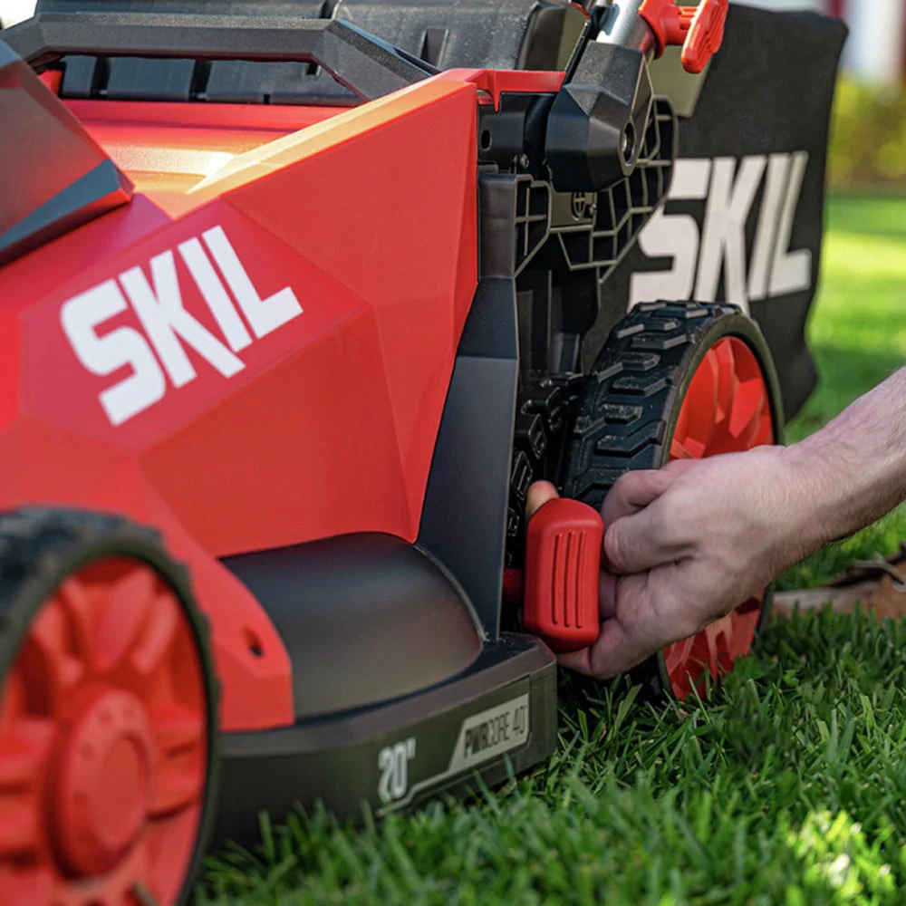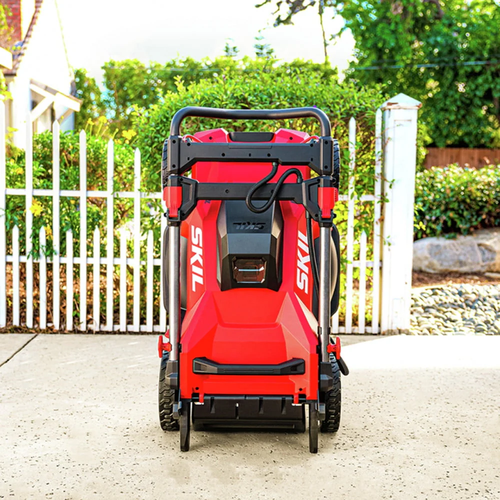 Ditch the Gas. Keep the Power. Get industry-leading performance and the power like gas in a cordless mower powered by PWR CORE 40 lithium technology. The digital, brushless motor combined with PWR CORE 40 lithium technology provides unbelievable power and cutting performance. You’ll have control from start to finish with a push-button start. And, when the task is completed, the telescoping handle folds down completely and allowing for vertical storage. This SKIL 40V 20 inch cordless lawn mower kit includes a 5.0Ah PWR CORE 40 lithium battery for max run time and Auto PWR JUMP charger.