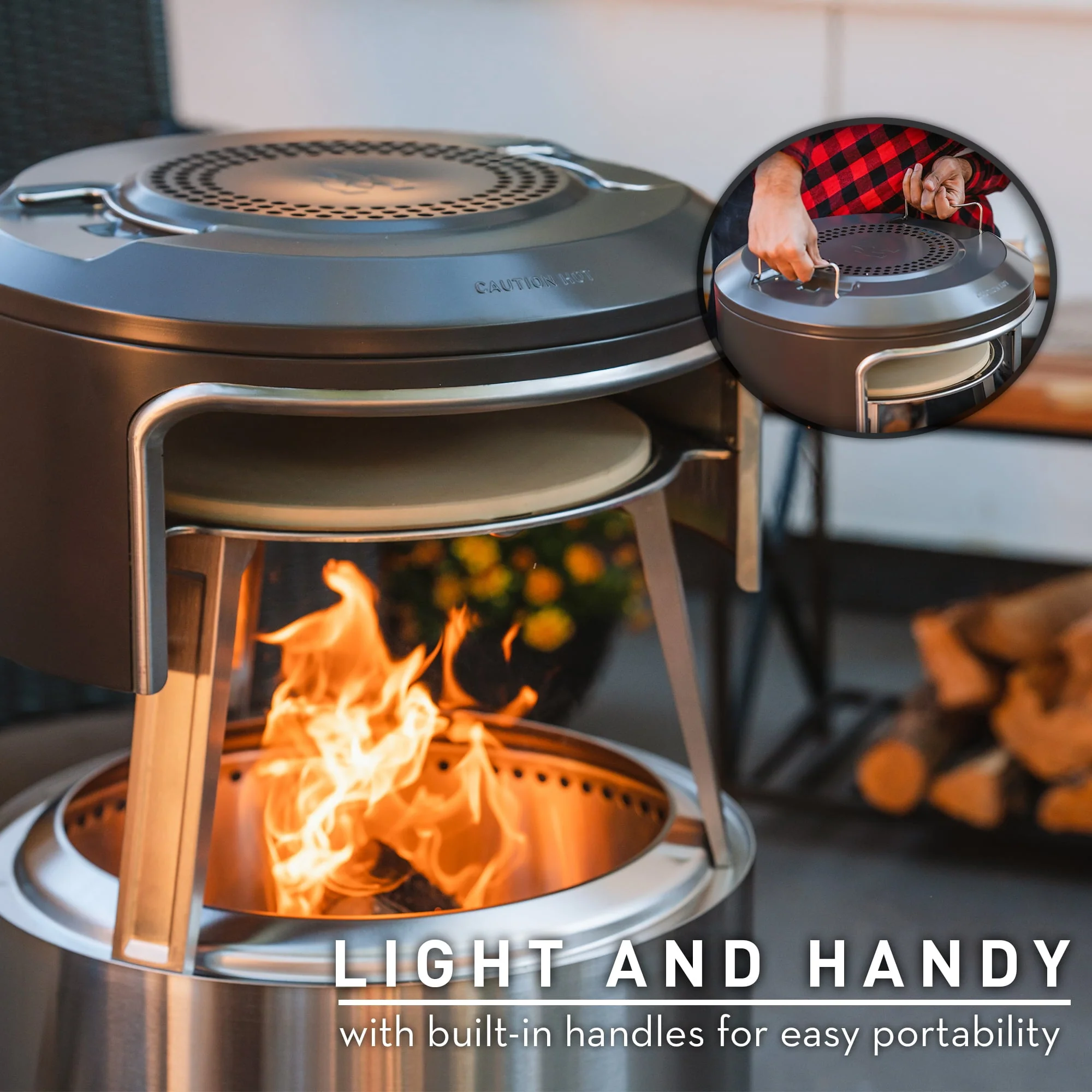 Solo Stove Bonfire Pi Fire | Pizza Oven Accessory for Bonfire Fire Pit, Incl. Carry Case & Cordierite Pizza Stone, Wood Burning Assembly, Stainless Steel, (H x Dia): 16.9 x 19.3 in, 19.6 lb