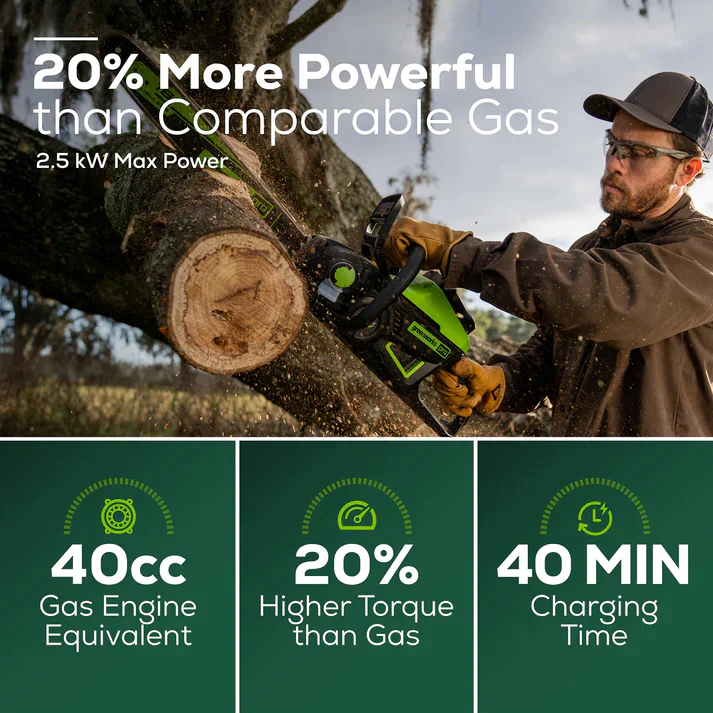 • Greenworks 60V 18" Cordless Chainsaw with 4.0ah Battery & Charger