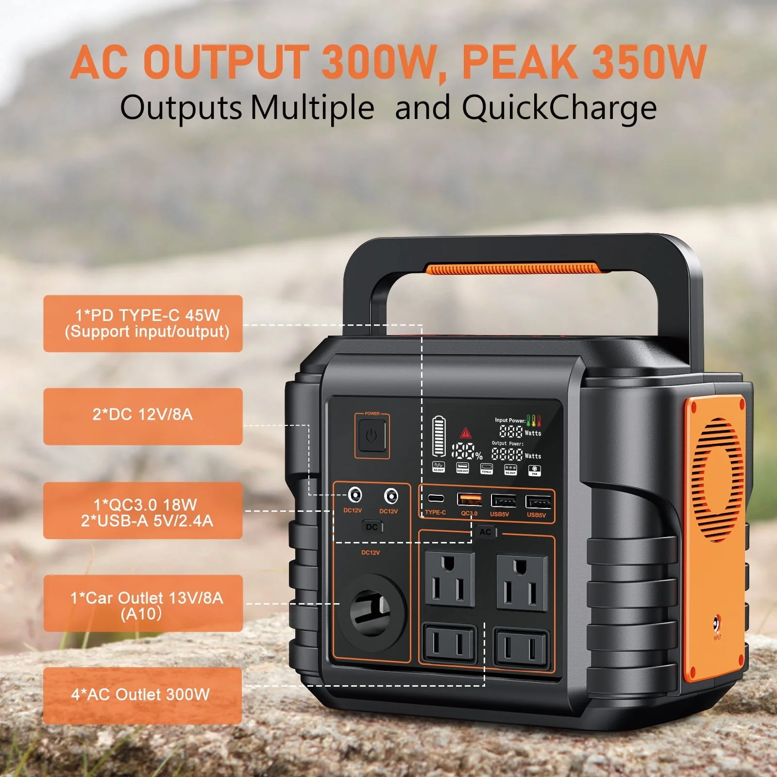 Prymax Portable Power Station 300W (Peak 600W), Solar Generator, Backup Battery Supply W/ AC Outlet for Home Blackout, Camping, Travel, CPAP