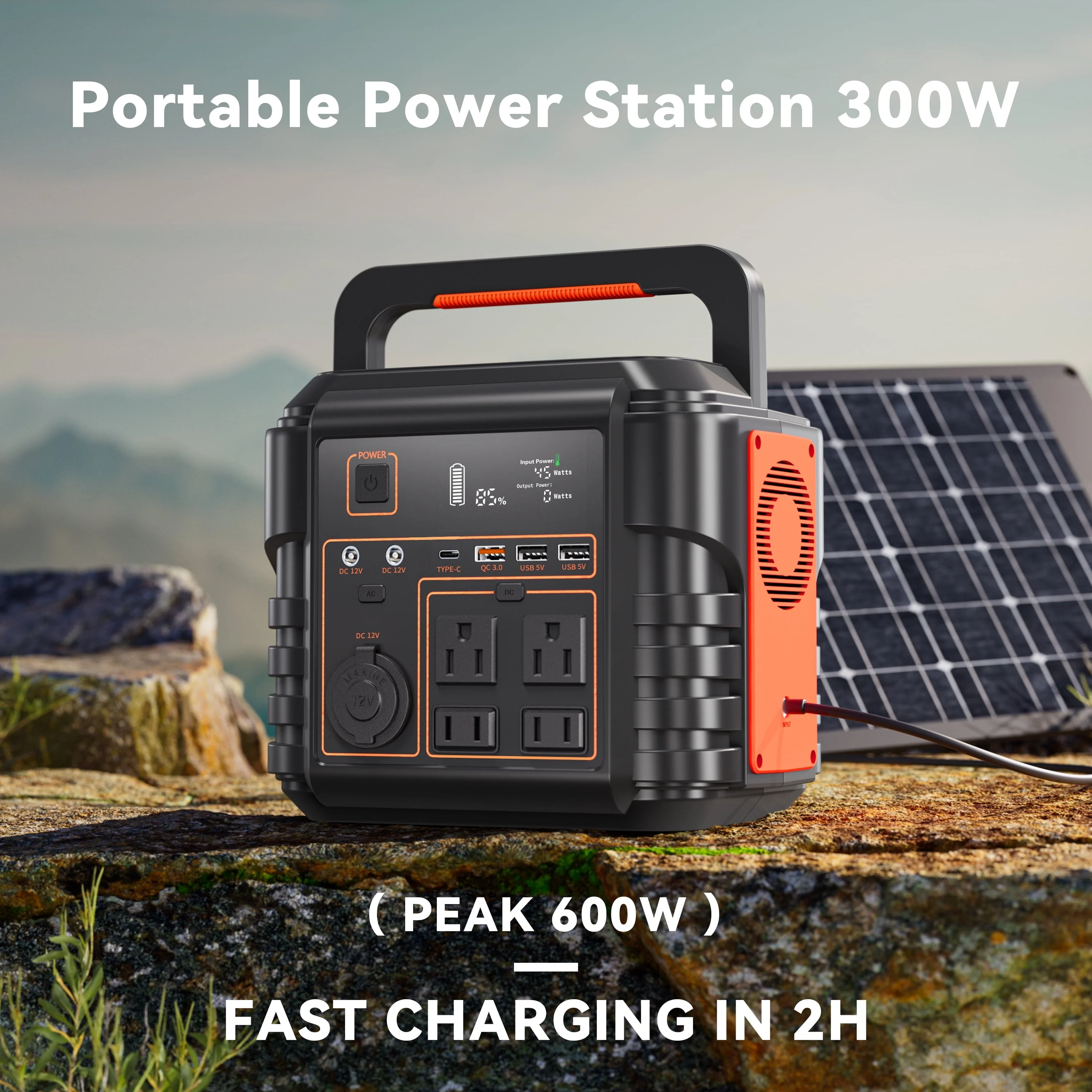 • Prymax Portable Power Station 300W (Peak 600W), Solar Generator, Backup Battery Supply W/ AC Outlet for Home Blackout, Camping, Travel, CPAP