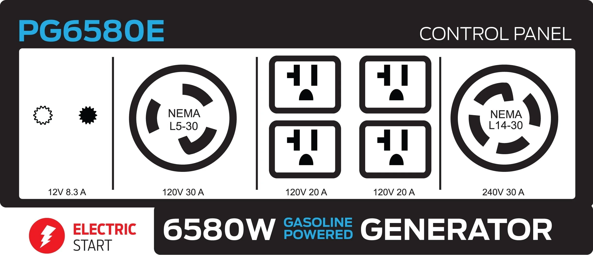 Designed for ease of use and durability, the PG6580E features Electric Start and sturdy construction to ensure reliable operation for years to come. The intuitive control panel and multiple outlets make it simple to operate and monitor. Safety is also a top priority, with features such as low oil indication, low oil shutdown, and automatic voltage regulation included.