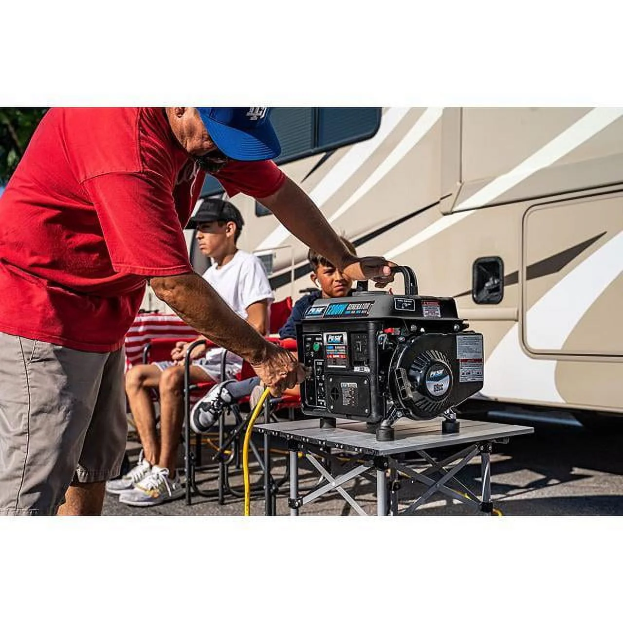 • Pulsar G1200SG Portable Gas - Powered Generator with Carrying Handle, 1200W, Black/Gray