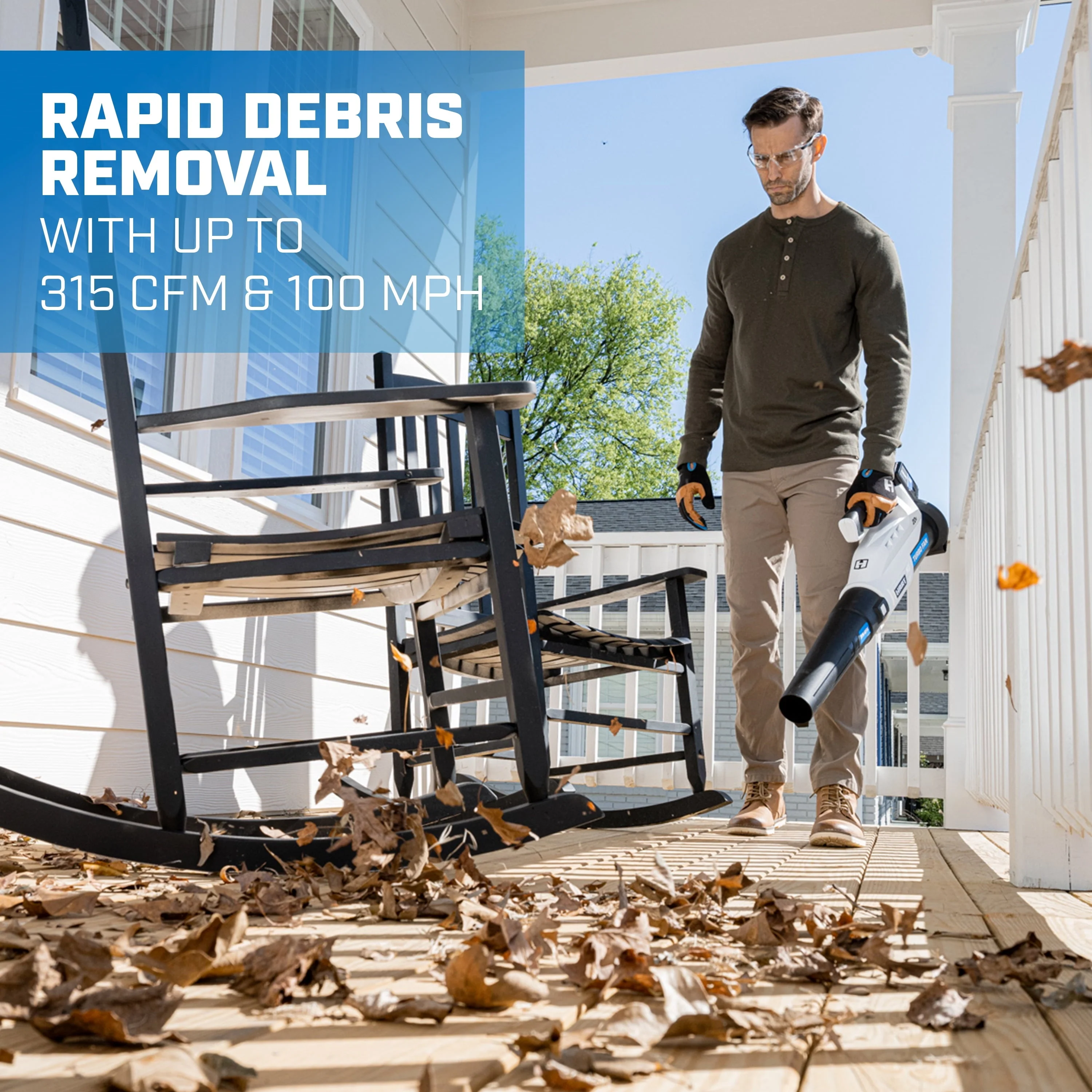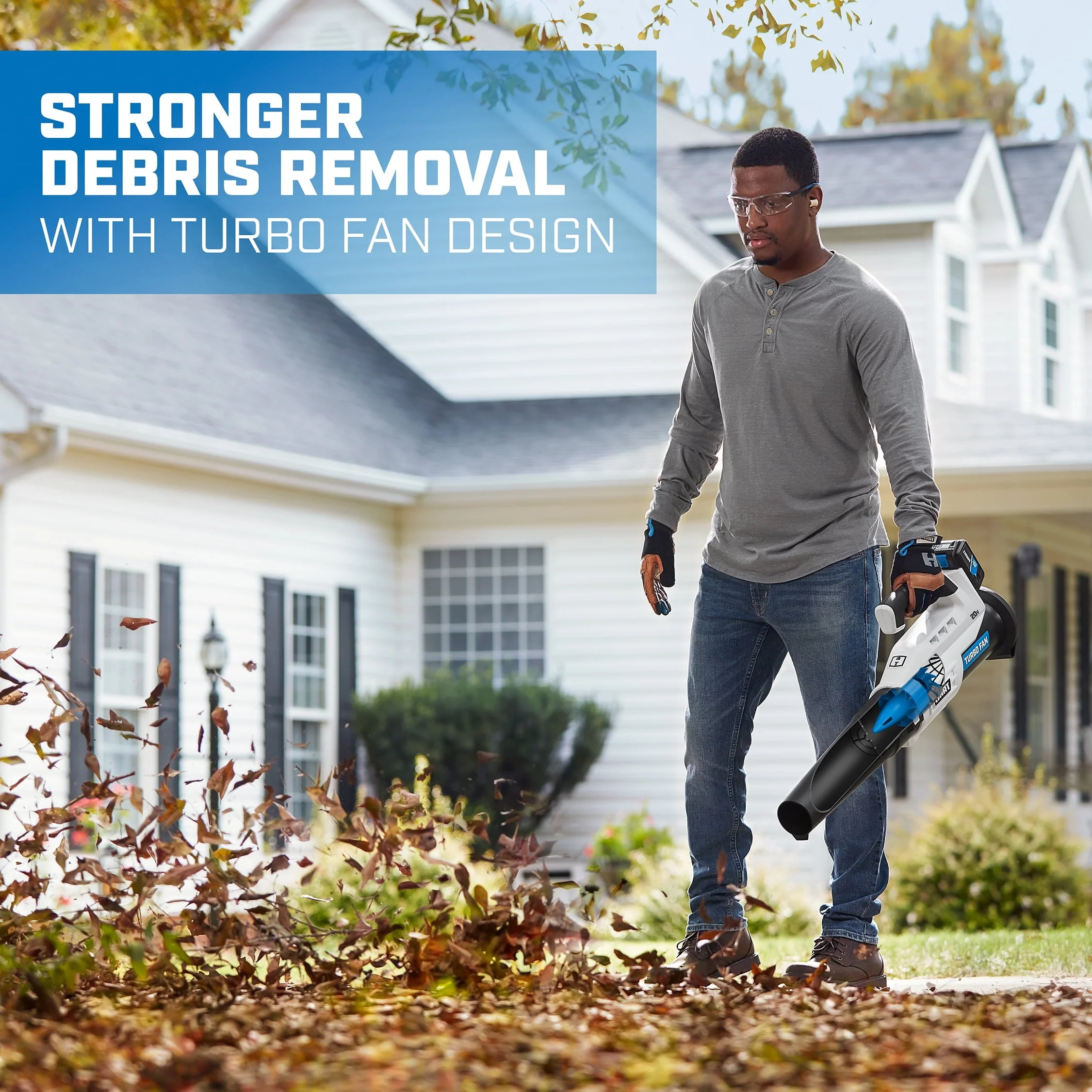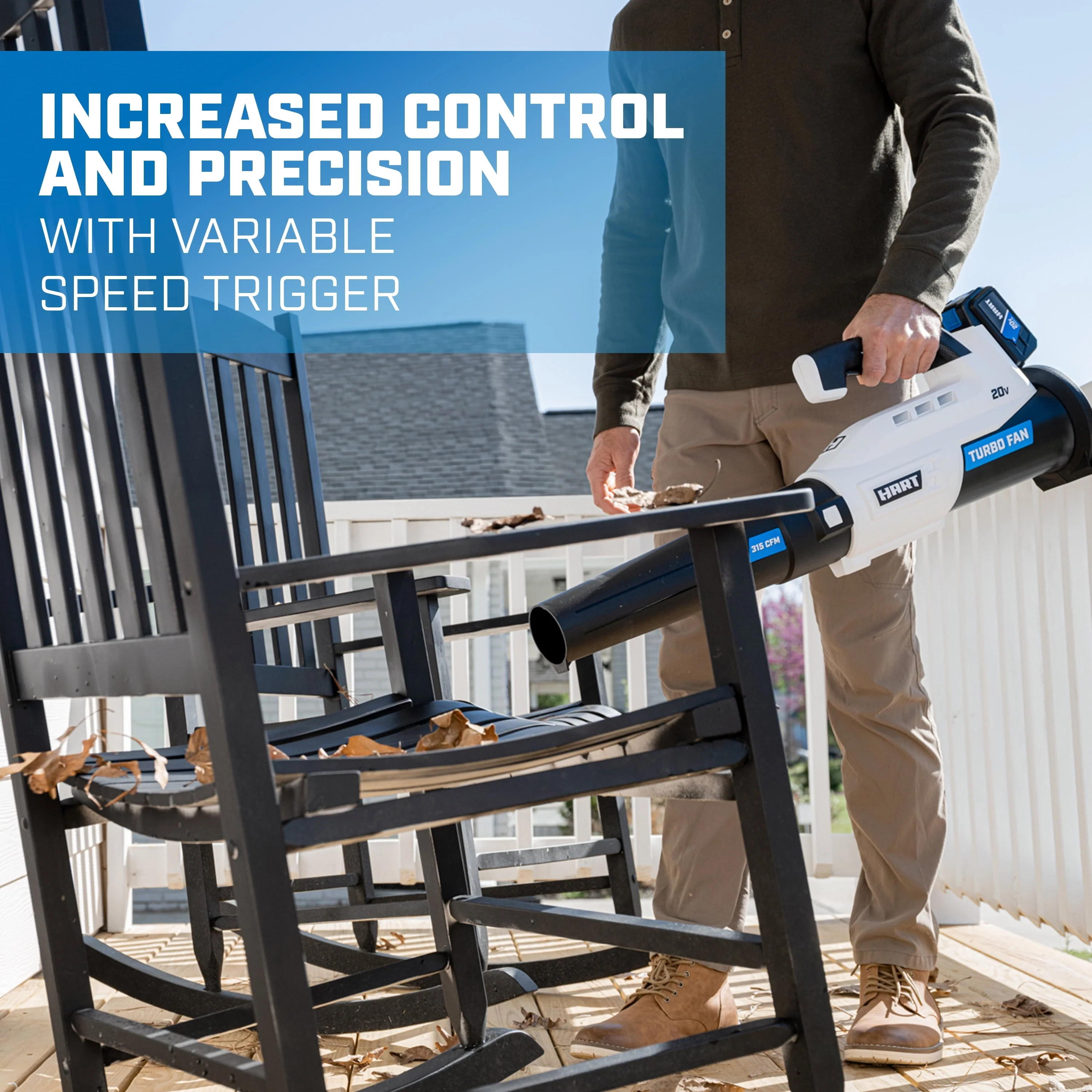Ditch the garden rake, it’s time to upgrade to the HART 20V Turbo Fan Blower. With the innovative turbo fan design that maximizes air velocity and delivers twice the clearing power, this cordless blower is a powerful tool to have in your tool shed. It provides 315 CFM and 100 MPH of power for stronger debris removal from your yard. And for large yards, the variable speed trigger provides more user control, from maximum clearing power to more focused blowing. The included 20V battery is compatible with all HART 20V tools. Blower and battery are covered by a limited 3-year warranty. Includes: Turbo Fan Blower, blower tube, 4.0Ah Lithium-ion battery, fast charger and operator’s manuals.