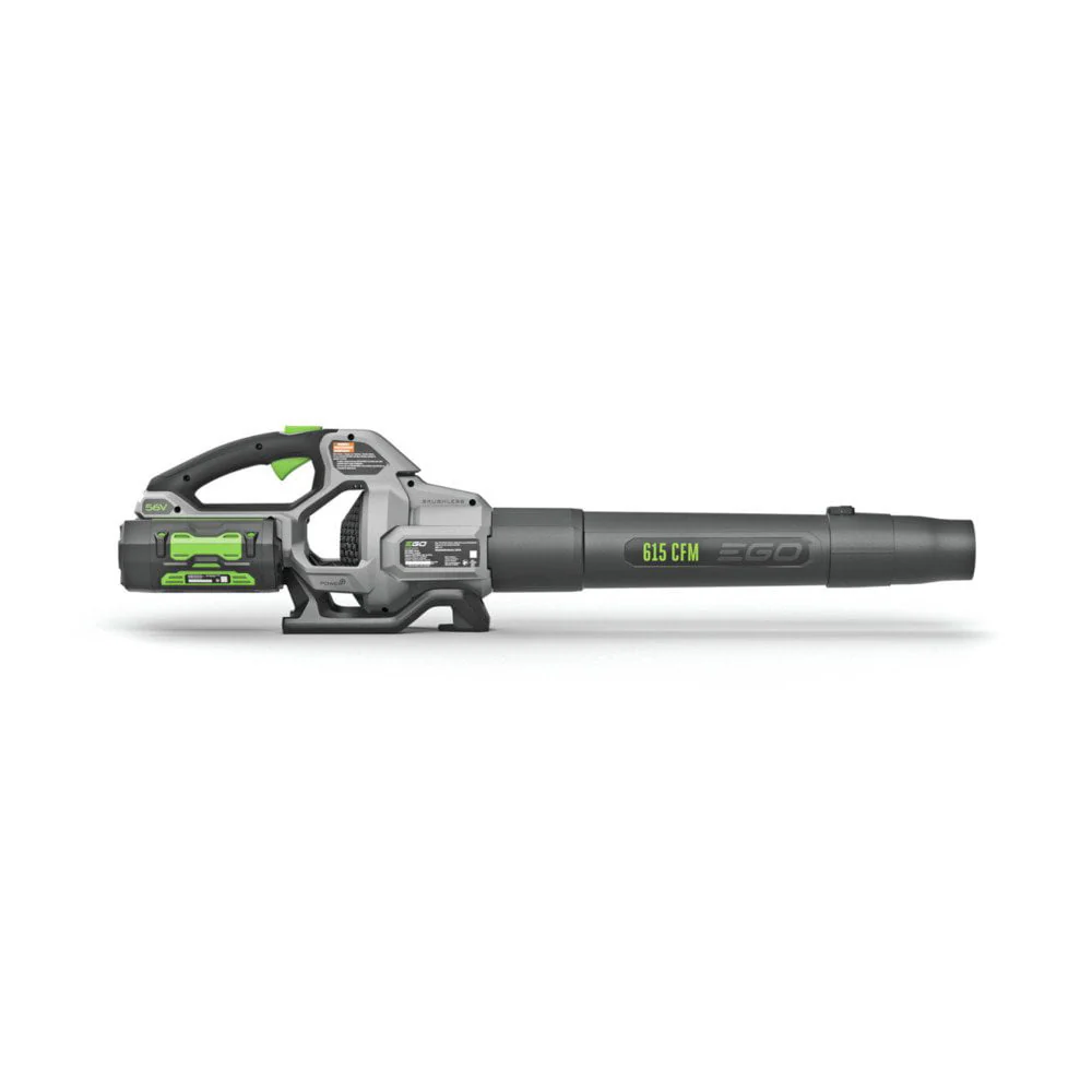 The 615 CFM EGO POWER+ Blower combines unprecedented power and performance! With air speeds up to 170 MPH, this blower can move heavy debris with ease. The lock-on speed-control dial allows you to adjust your speed from 200 CFM to 480 CFM for ultimate control. When you are ready to power through heavy debris, hit the turbo button for 615 CFM! All this industry leading power is combined with industry leading run times; up to 60-minutes of continuous run time. The high-efficiency brushless motor delivers longer run time, low vibrations, and an extended motor life. Turbine fan engineering, inspired by advanced aeronautics technology, performs better than premium gas-powered models. The included tapered nozzle makes clearing debris in all conditions easy. This quiet, lightweight and compact blower gets the job done faster and quieter than gas! Experience Power Beyond Belief™ without the noise, fuss and fumes. Compatible with all EGO POWER+ ARC Lithium™ batteries.