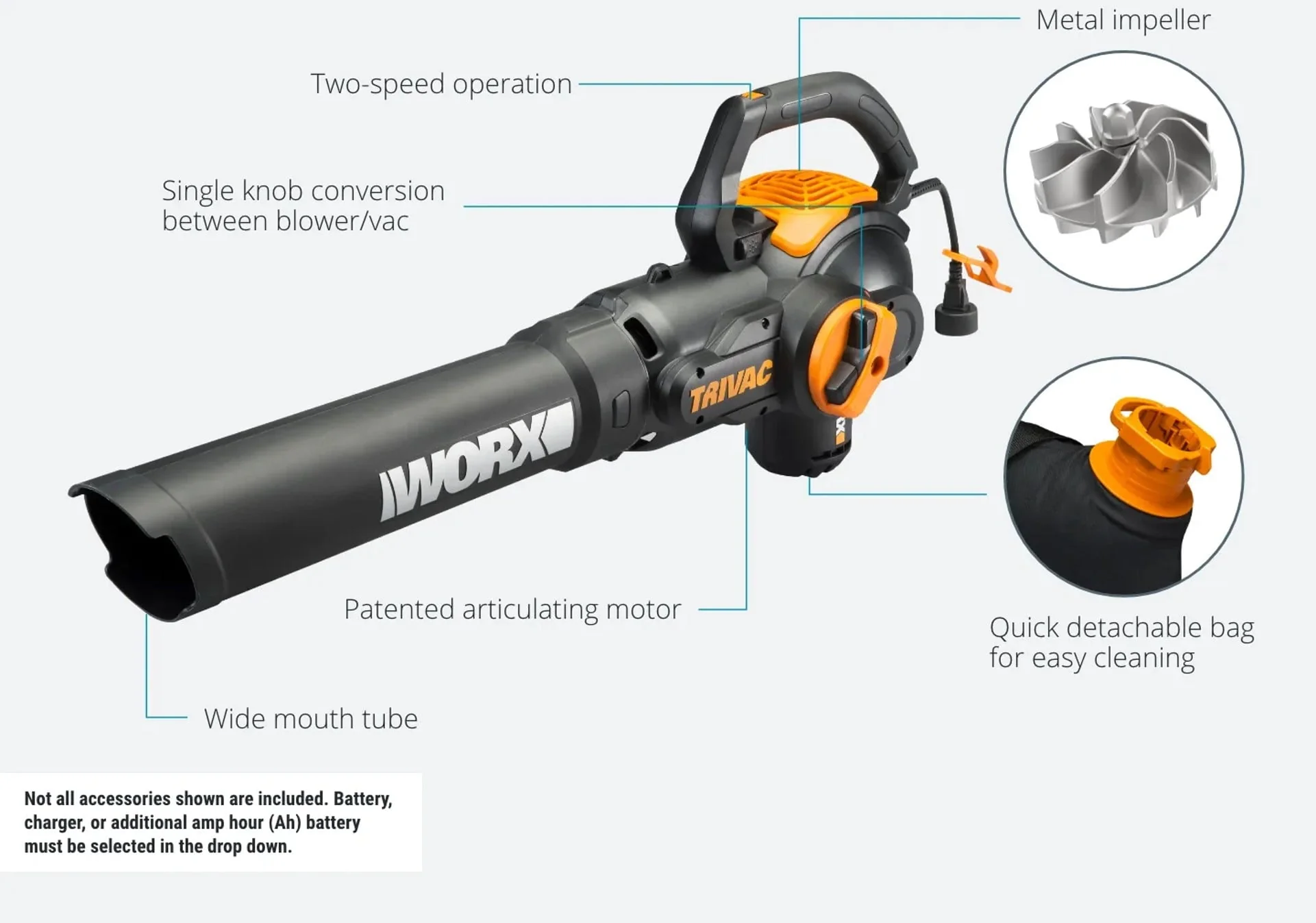 • WORX Trivac 2.0 Electric 12 - Amp 3in - 1 Vacuum Blower/Mulcher/Vac # WG512