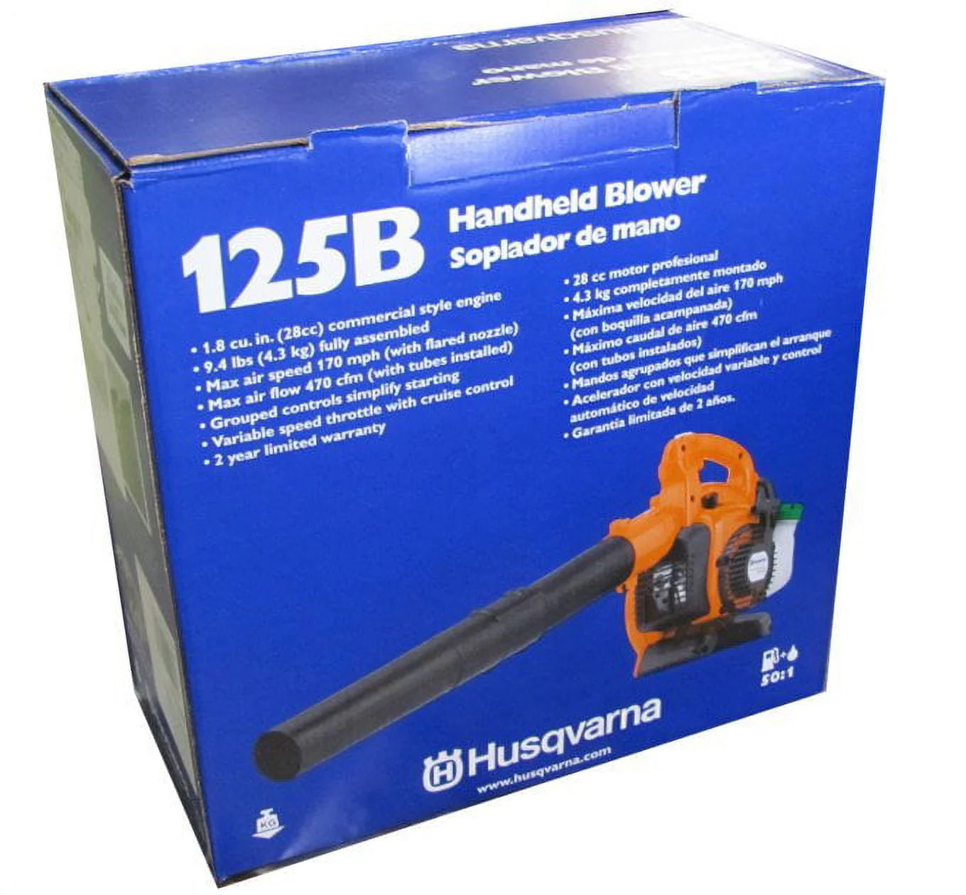 • Husqvarna 952711925 125B Gas Leaf Blower, 28 - Cc 1.1 - HP 2 - Cycle Handheld Leaf Blower, 470 - CFM, 170 - MPH, 12.5 - N Powerful Clearing Performance and Ergonomic Design