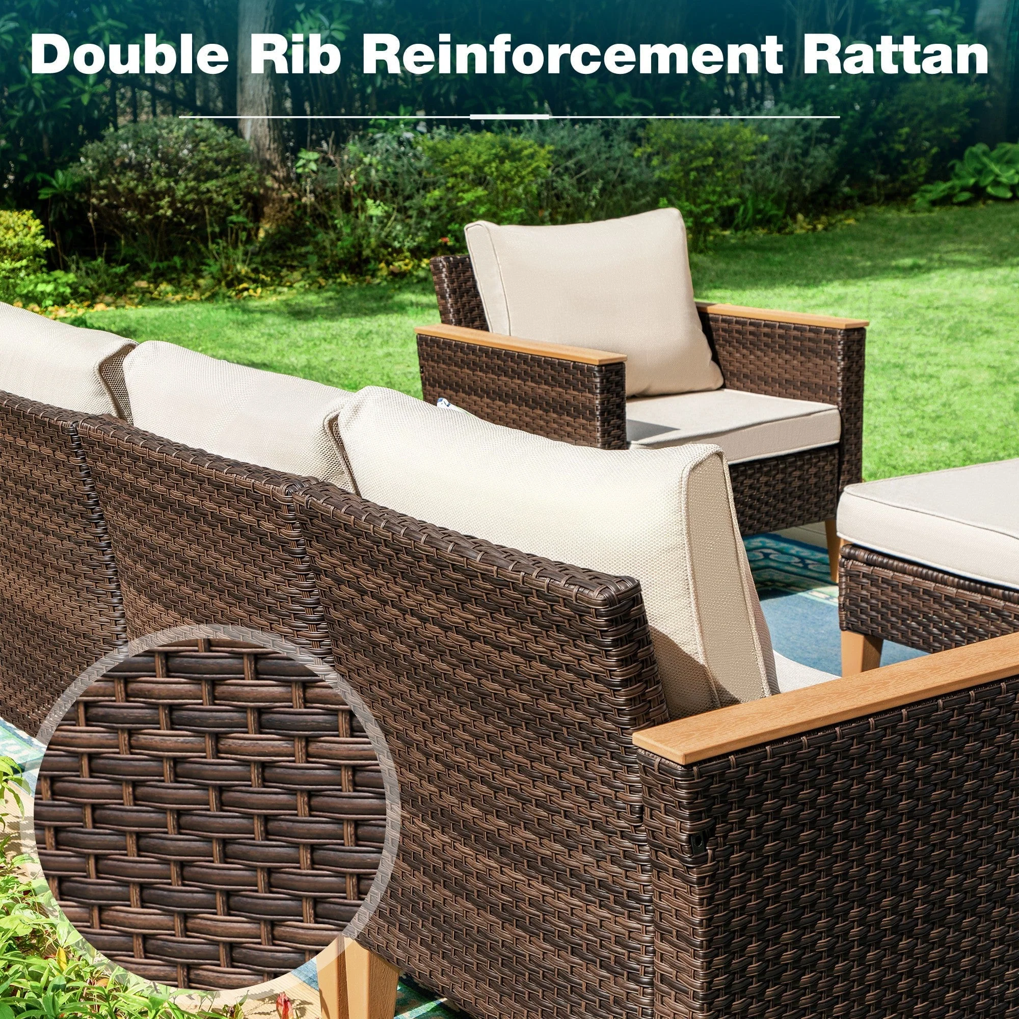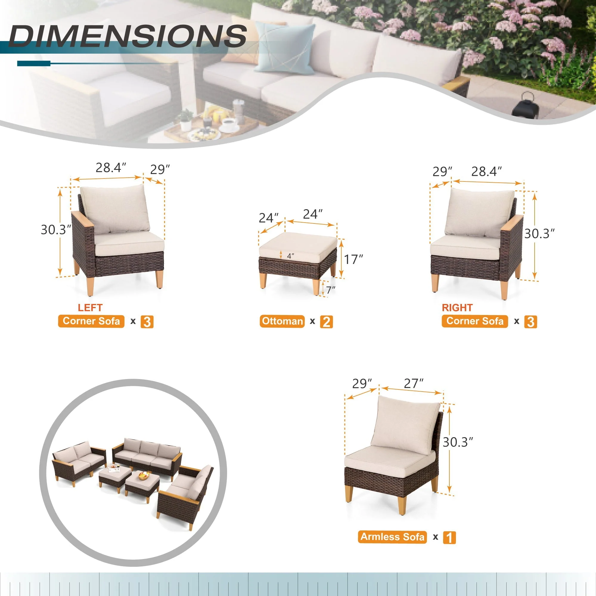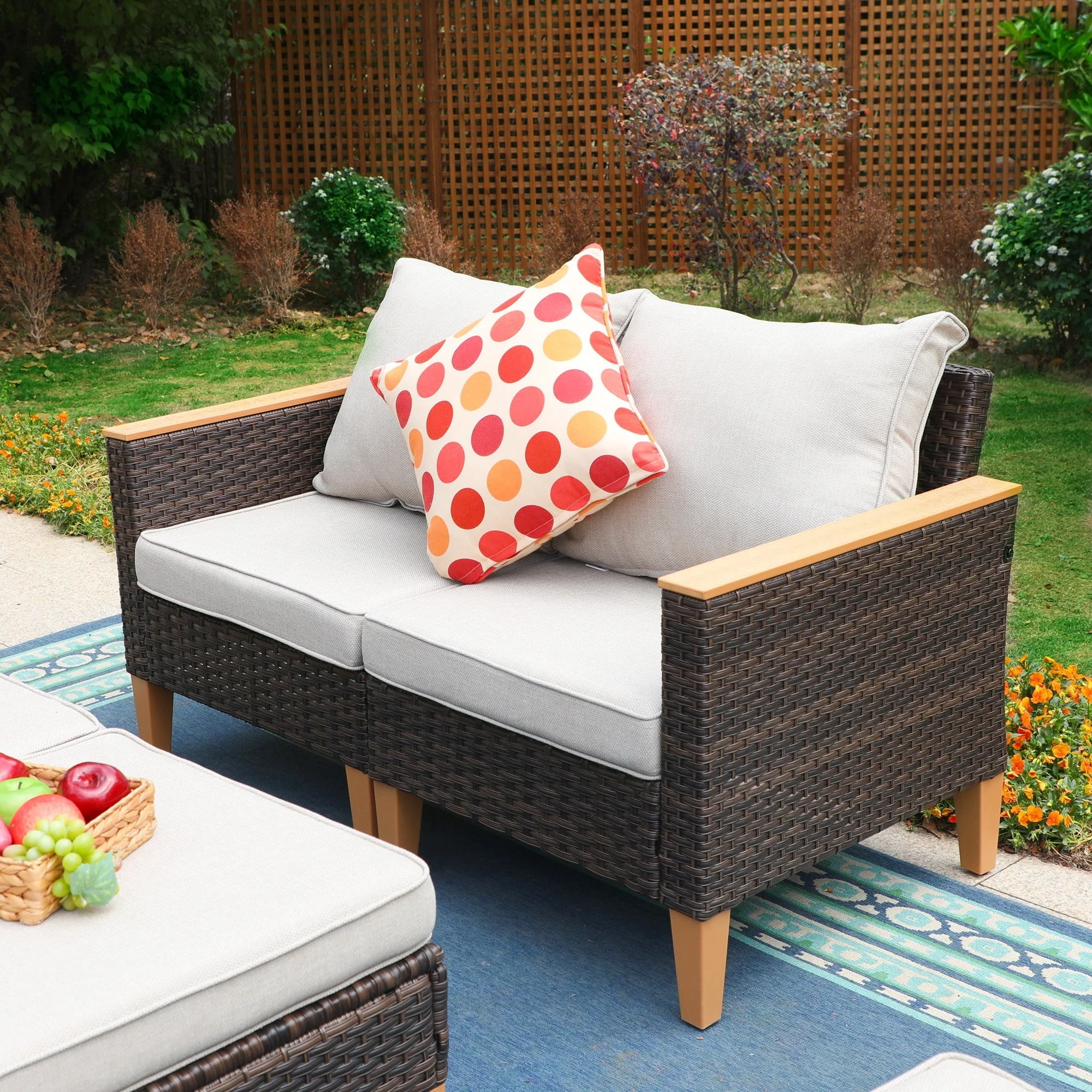 Sophia & William patio conversation set can provide a relaxed and inviting atmosphere to any outdoor living space. The combination of the natural wicker texture and the thick cushions creates a comfortable and welcoming environment that invites people to sit, relax, and enjoy the outdoors. The overall effect of an outdoor wicker sofa set is one of relaxation, comfort, and natural beauty. It can provide a cozy and inviting atmosphere that is perfect for socializing with friends and family, or simply relaxing on your own with a good book or a refreshing drink.