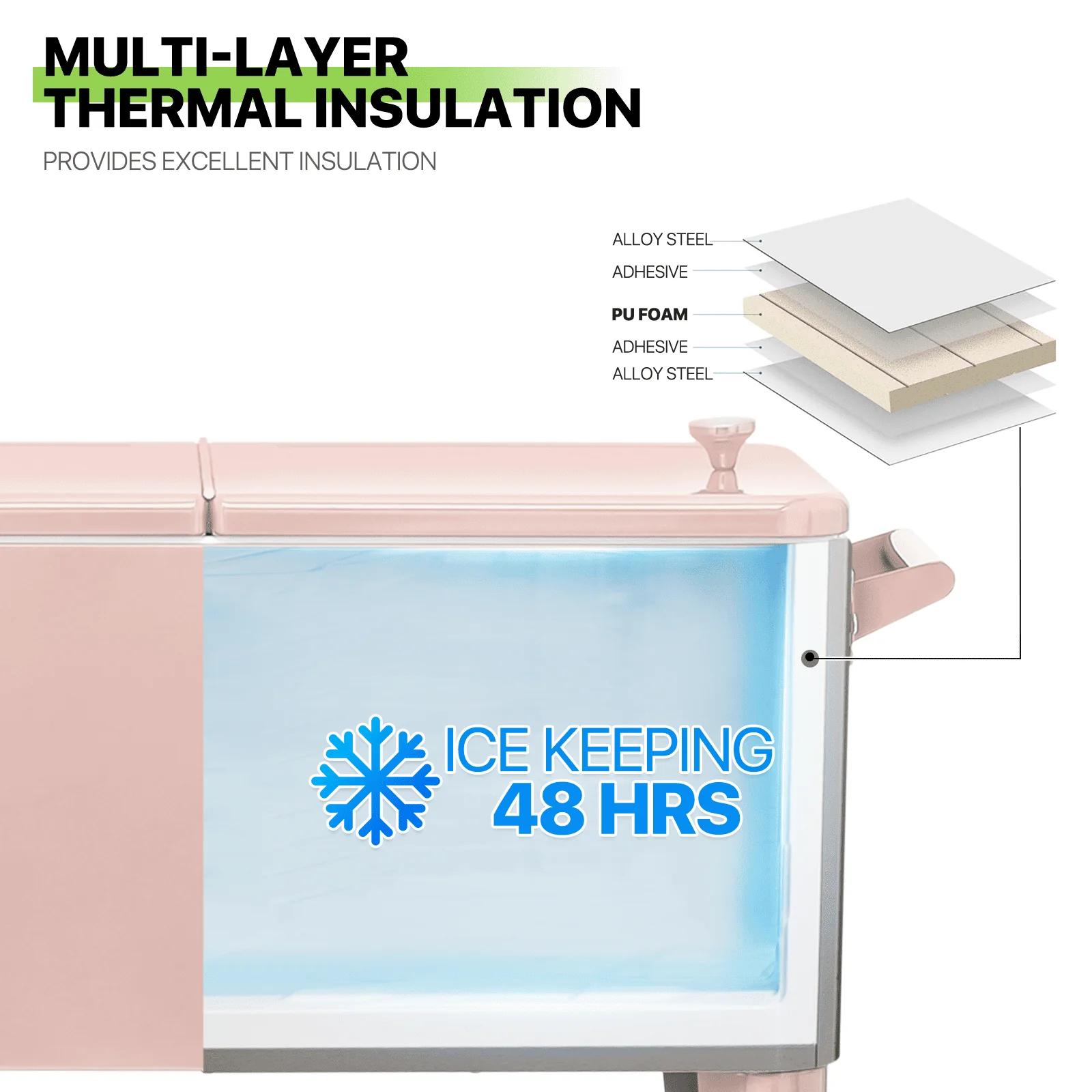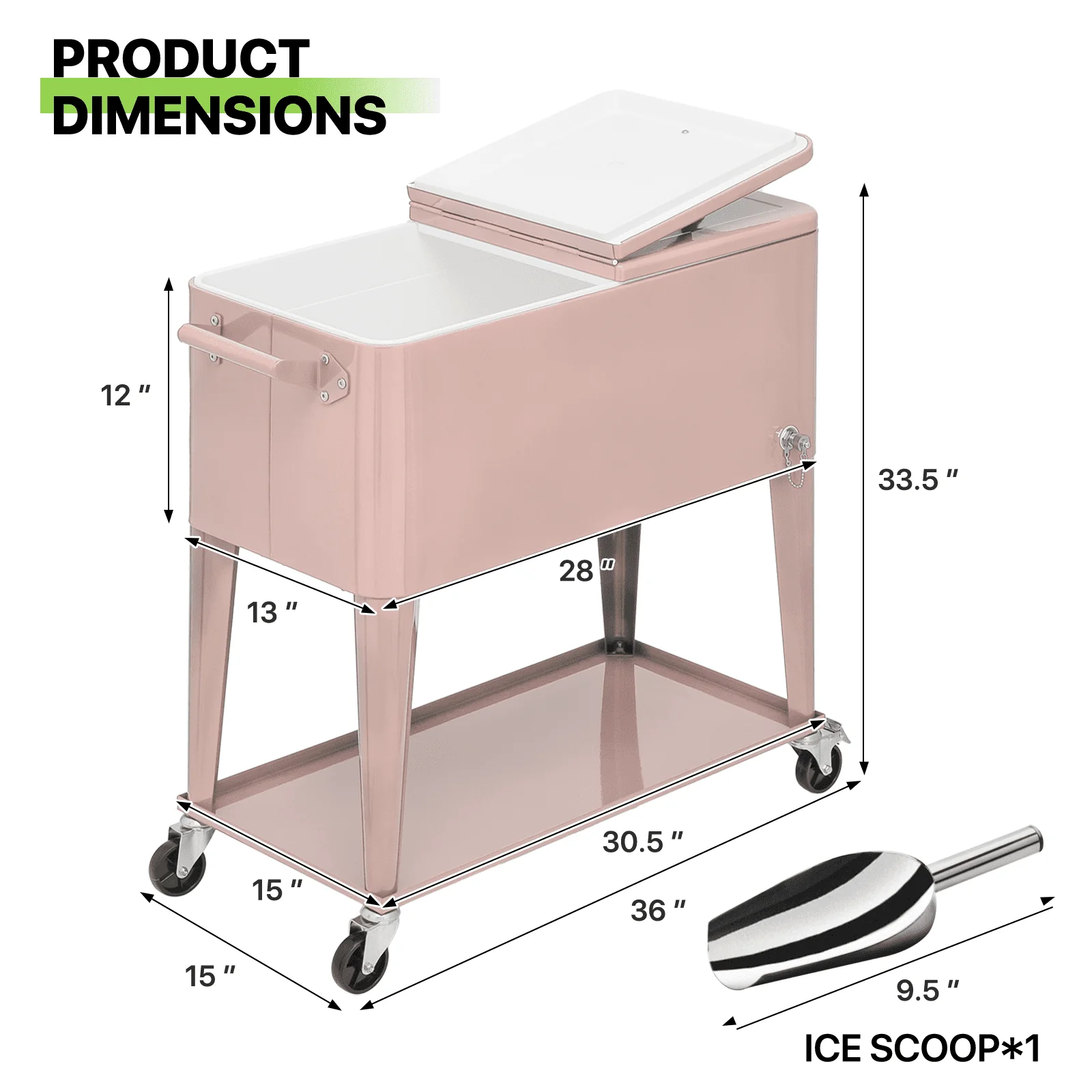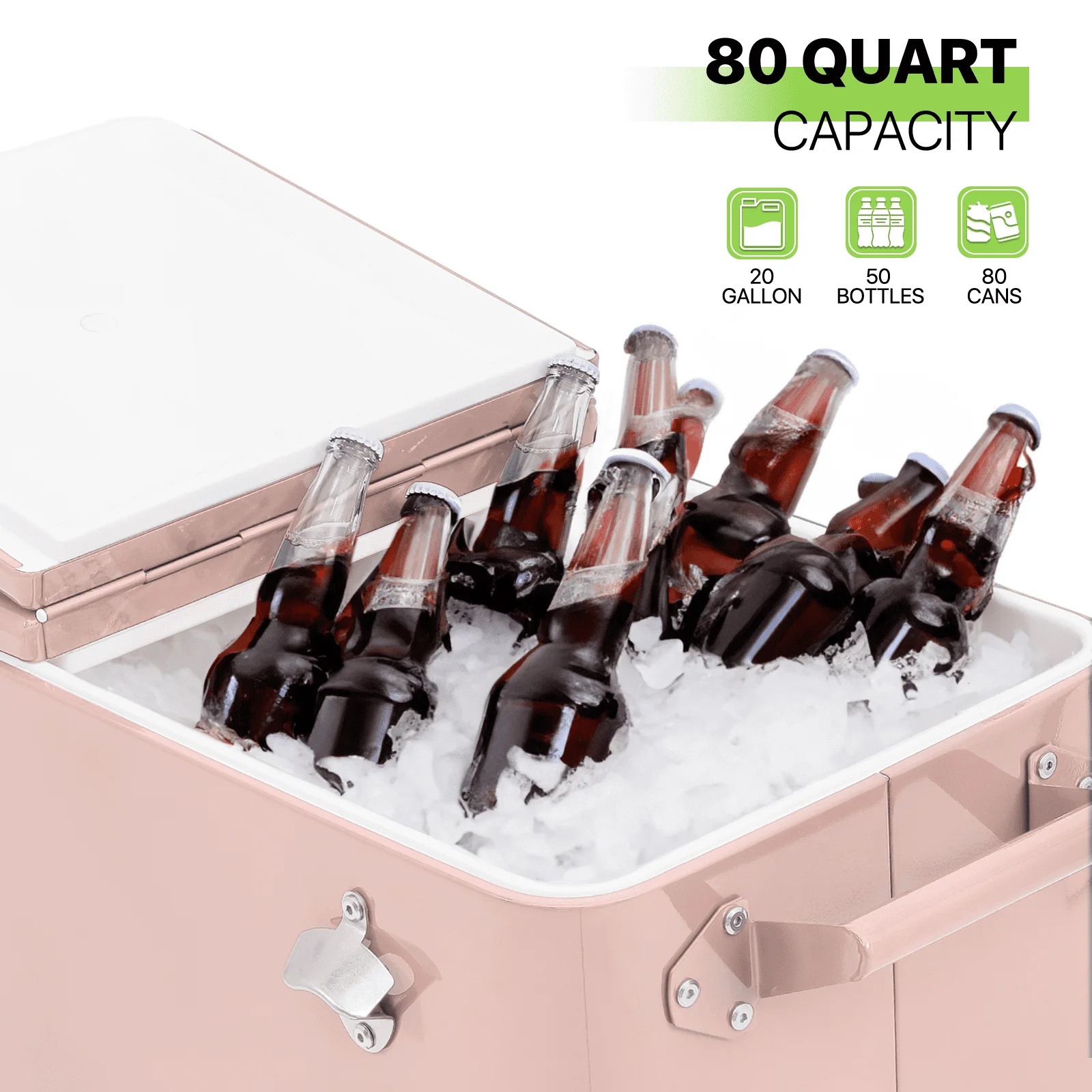 • Magshion 80 Quart Rolling Cooler Ice Chest, Portable Bar Cold Drink Beverage Cart Tub, Backyard Cooler Trolley on Wheels with Ice Scoop, Catch Tray & Bottle Opener, Pink