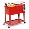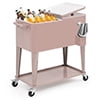 Magshion 80 Quart Rolling Cooler Ice Chest, Portable Bar Cold Drink Beverage Cart Tub, Backyard Cooler Trolley on Wheels with Ice Scoop, Catch Tray & Bottle Opener, Pink