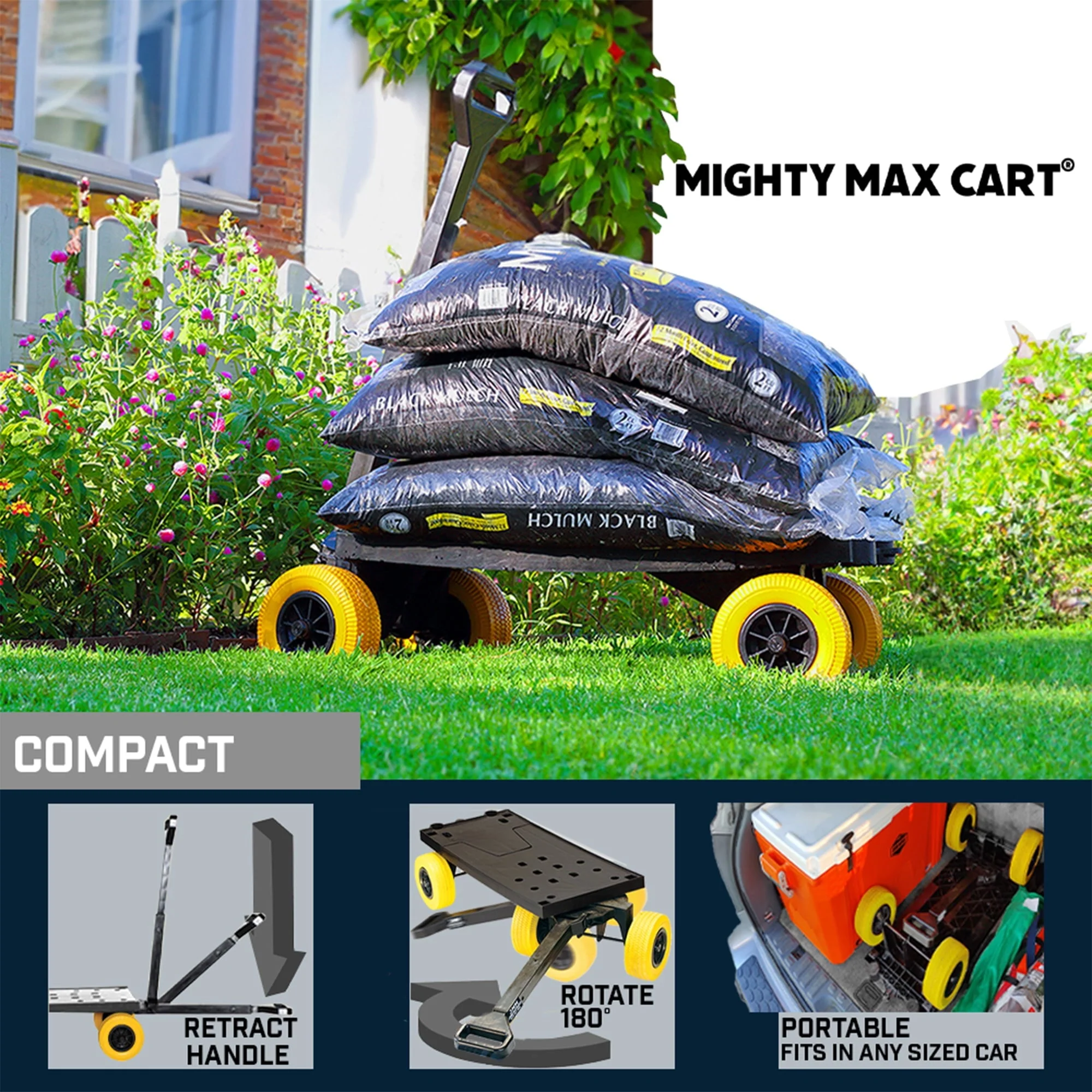 When it's time to pack up and go, the Mighty Max Cart's portable design makes it easy to collapse in seconds and fit in the back of any car, SUV, or truck. Made in the USA, the Mighty Max Cart is designed to provide years of trouble-free usage. It has a powerful 250 LBS weight capacity and is lightweight at only 22 pounds, making it easy to transport and use.