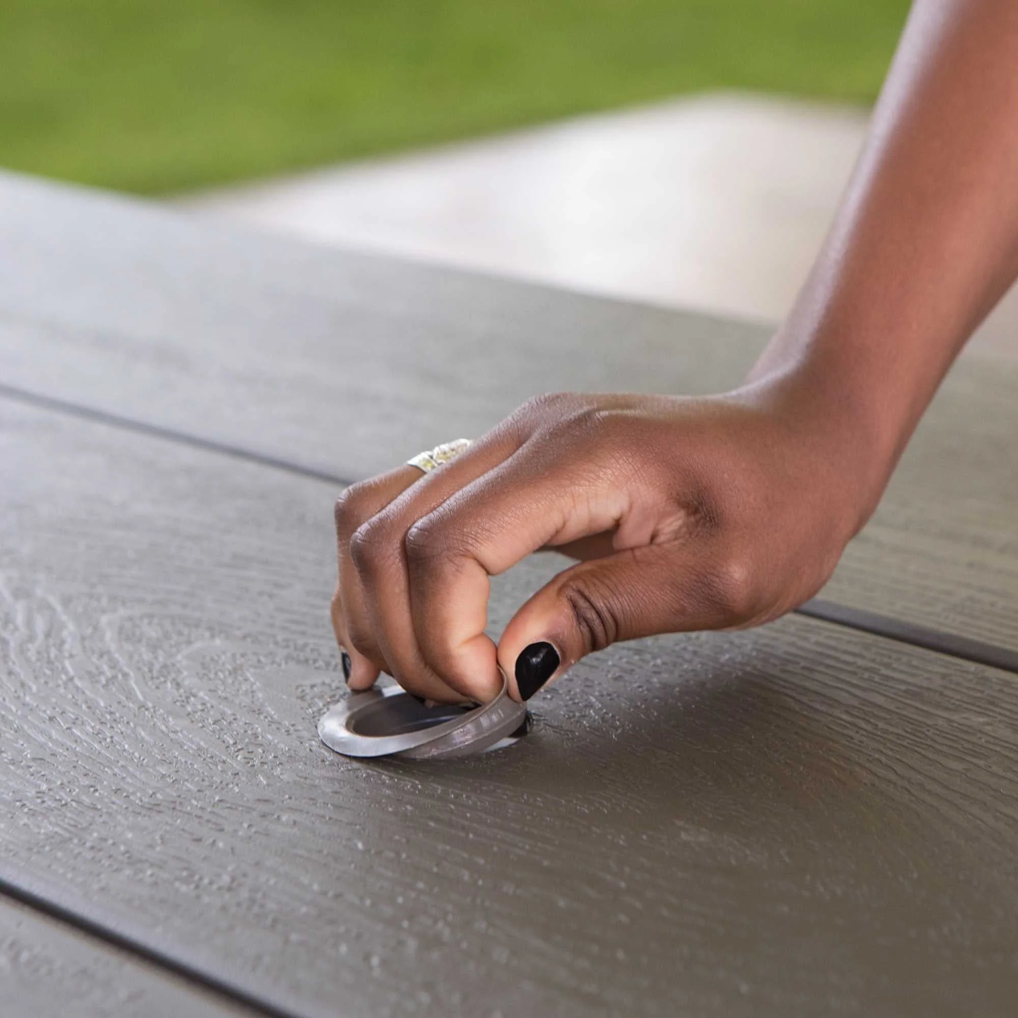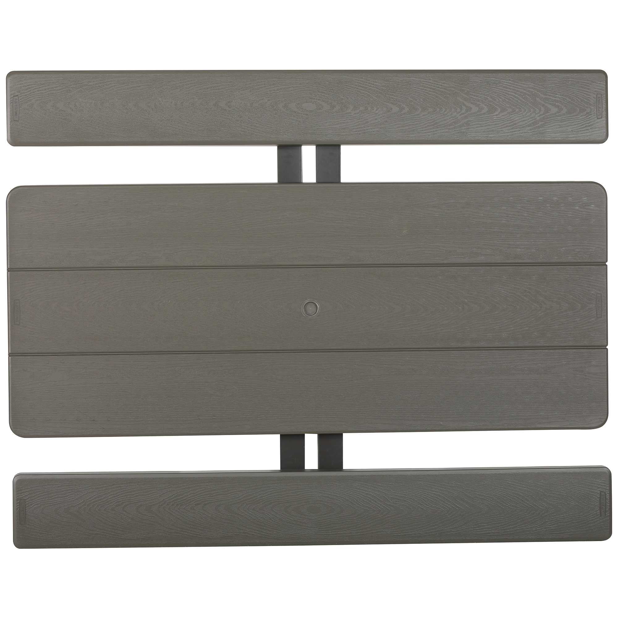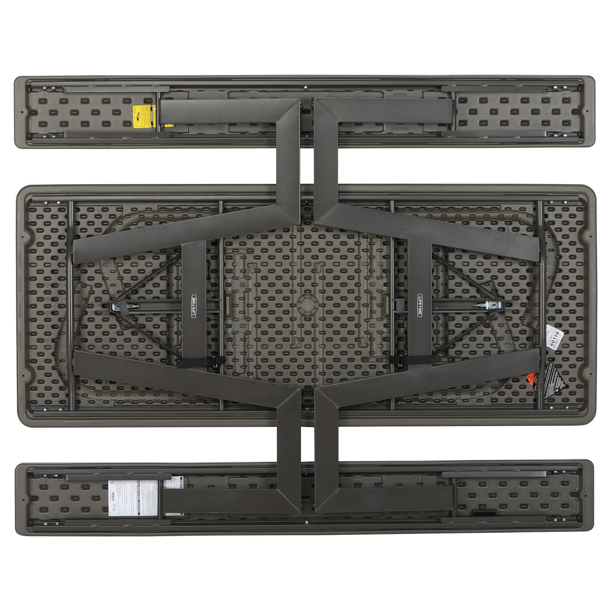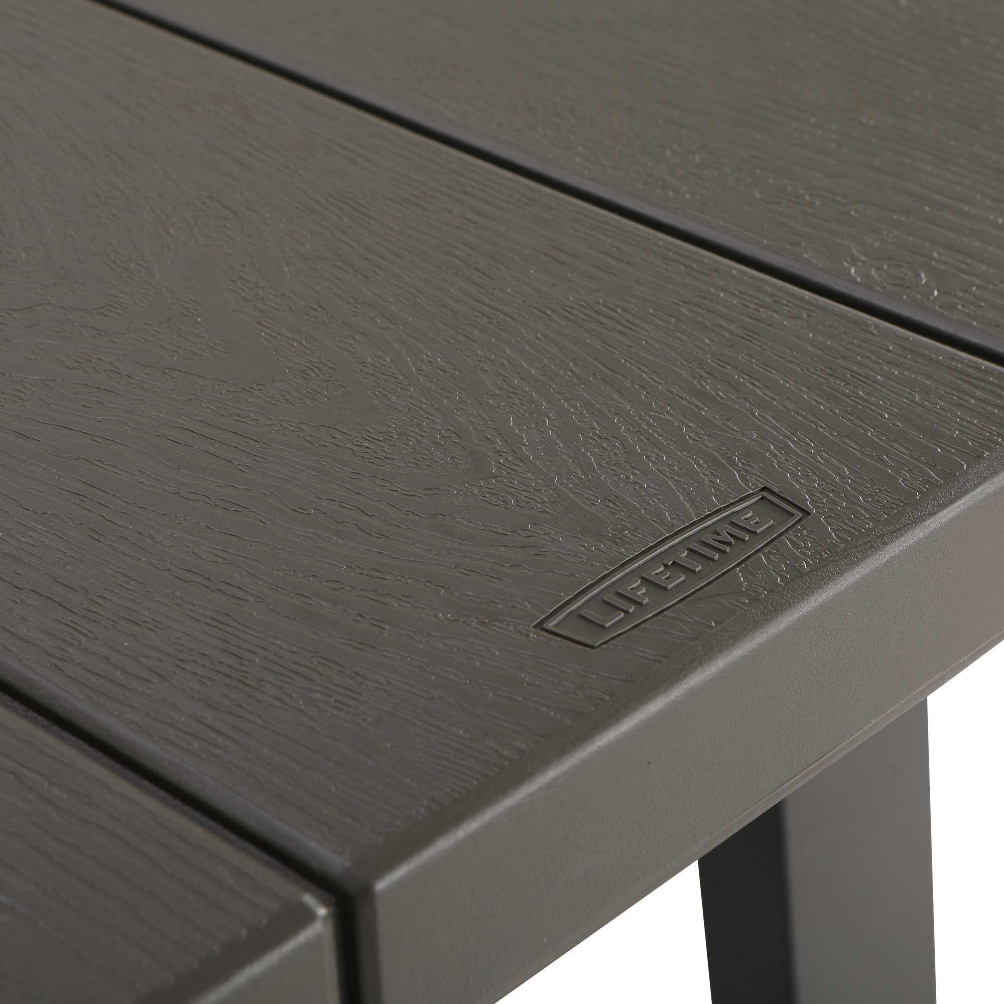 Lifetime 6-Foot Picnic Table - Built with the traditional W-frame design, the 72 in. x 30 in. high-density polyethylene wood-grain design tabletop is stain resistant, easy to clean, and folds flat for storage. This model comes in brown with a bronze folding frame and includes an umbrella hole and cap. 2-year limited warranty.