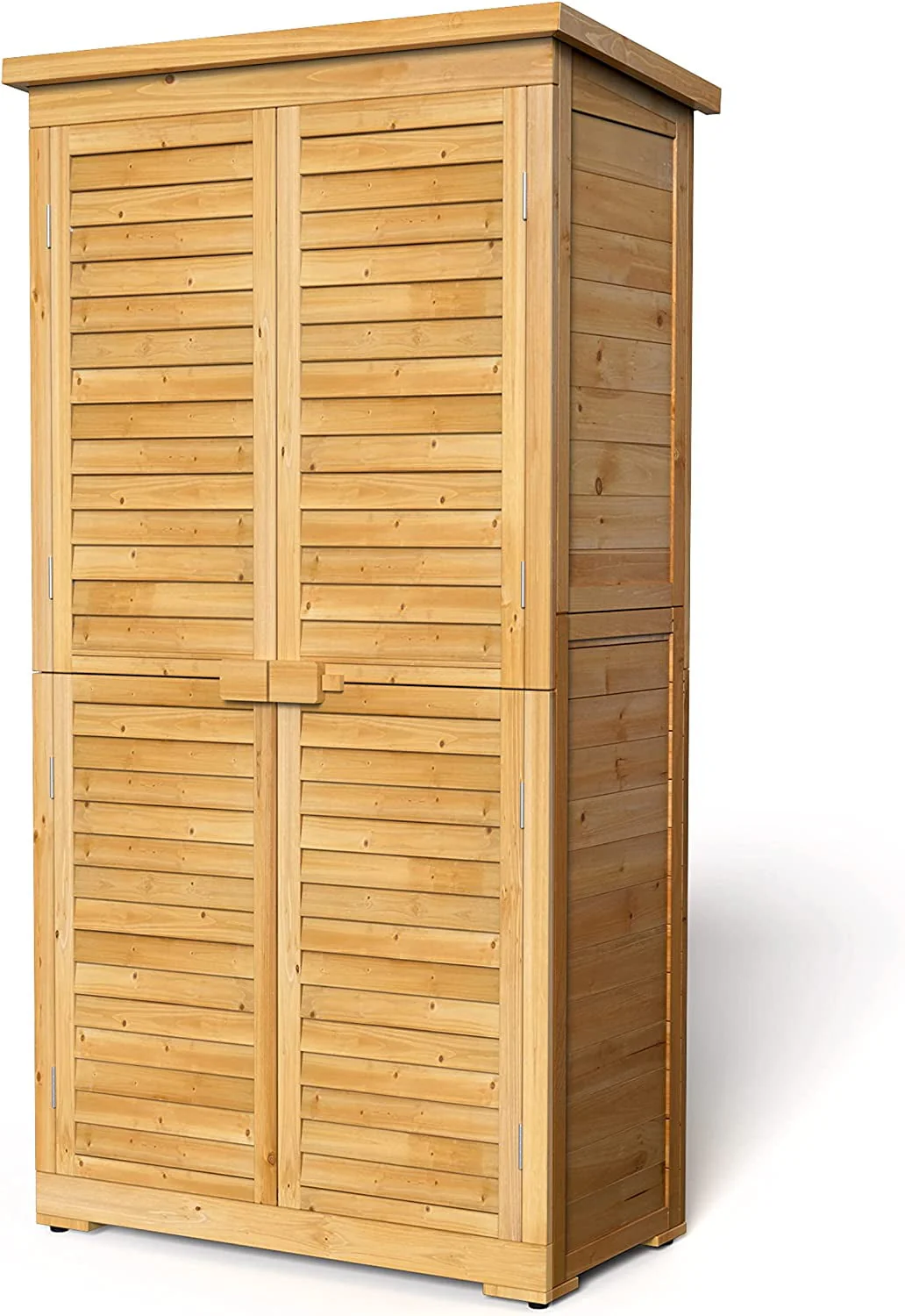 Introducing Lofka Outdoor Storage Cabinet Garden Shed w/ Asphalt Roof, Wooden, Natural
