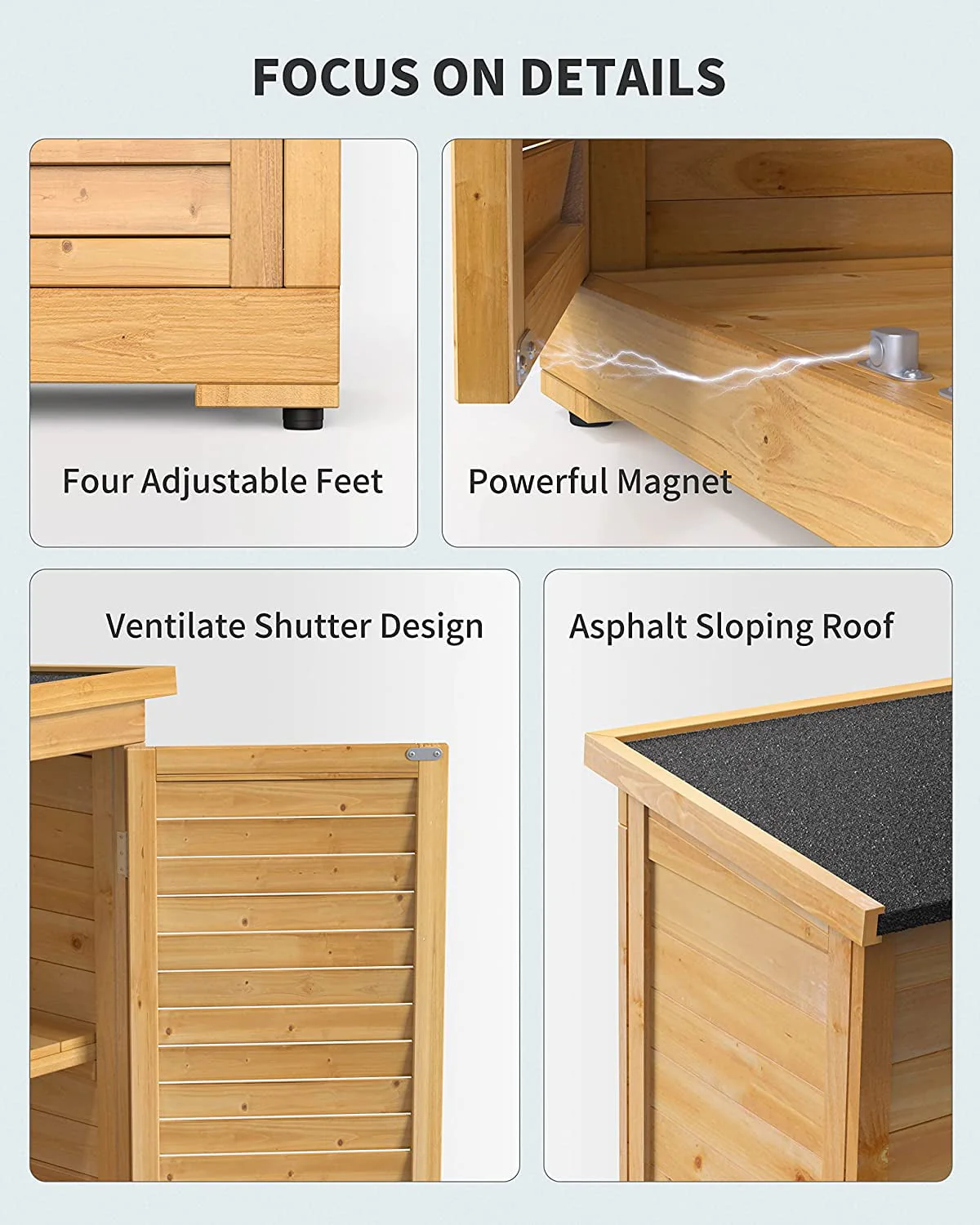 Lofka Outdoor Storage Cabinet Garden Shed W/ Asphalt Roof, Wooden, Natural