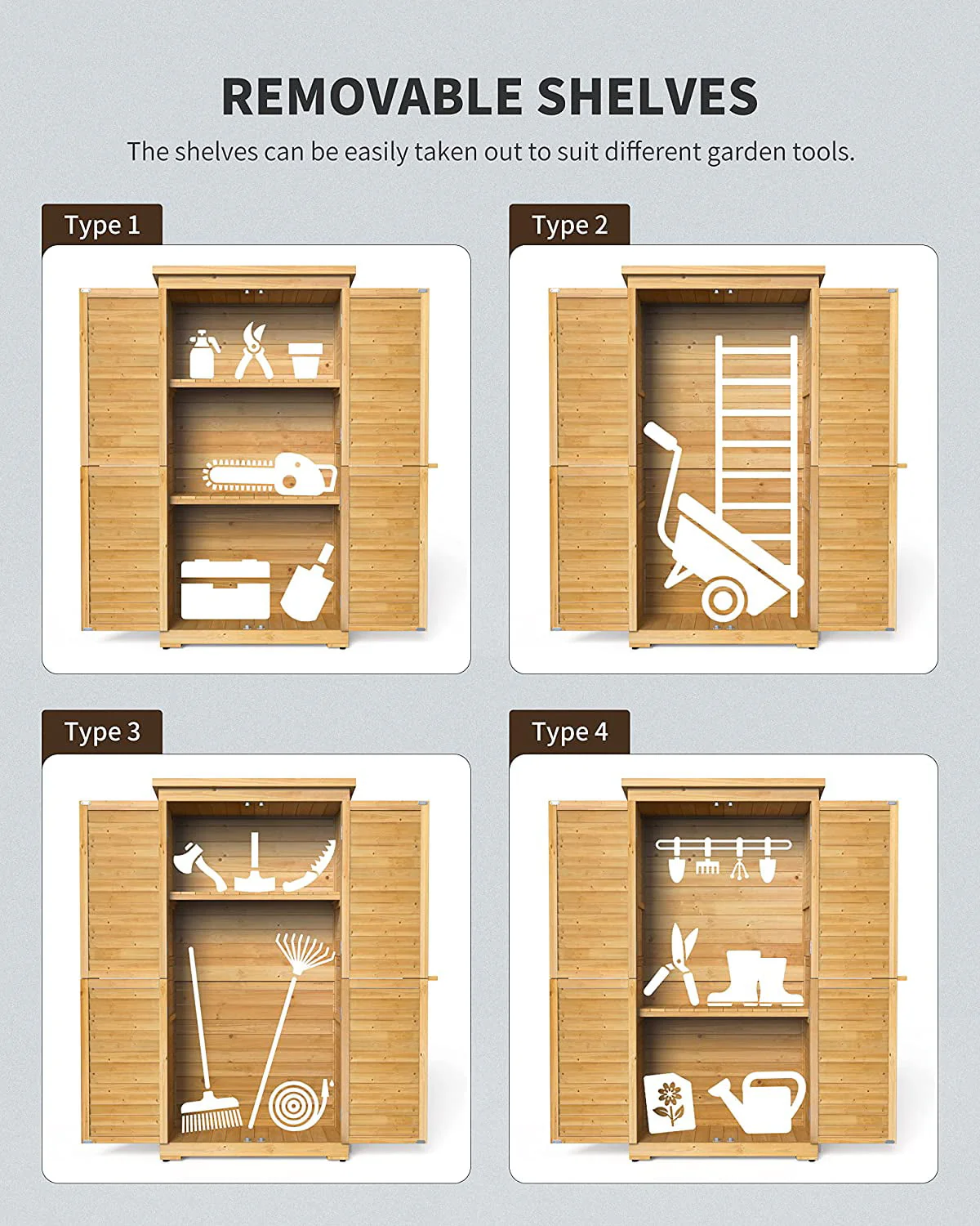 Made of fir wood, this garden storage cabinet will be great for the storage of your tools, equipment, and hoses. It is perfect to keep the garden space area neat and clean.