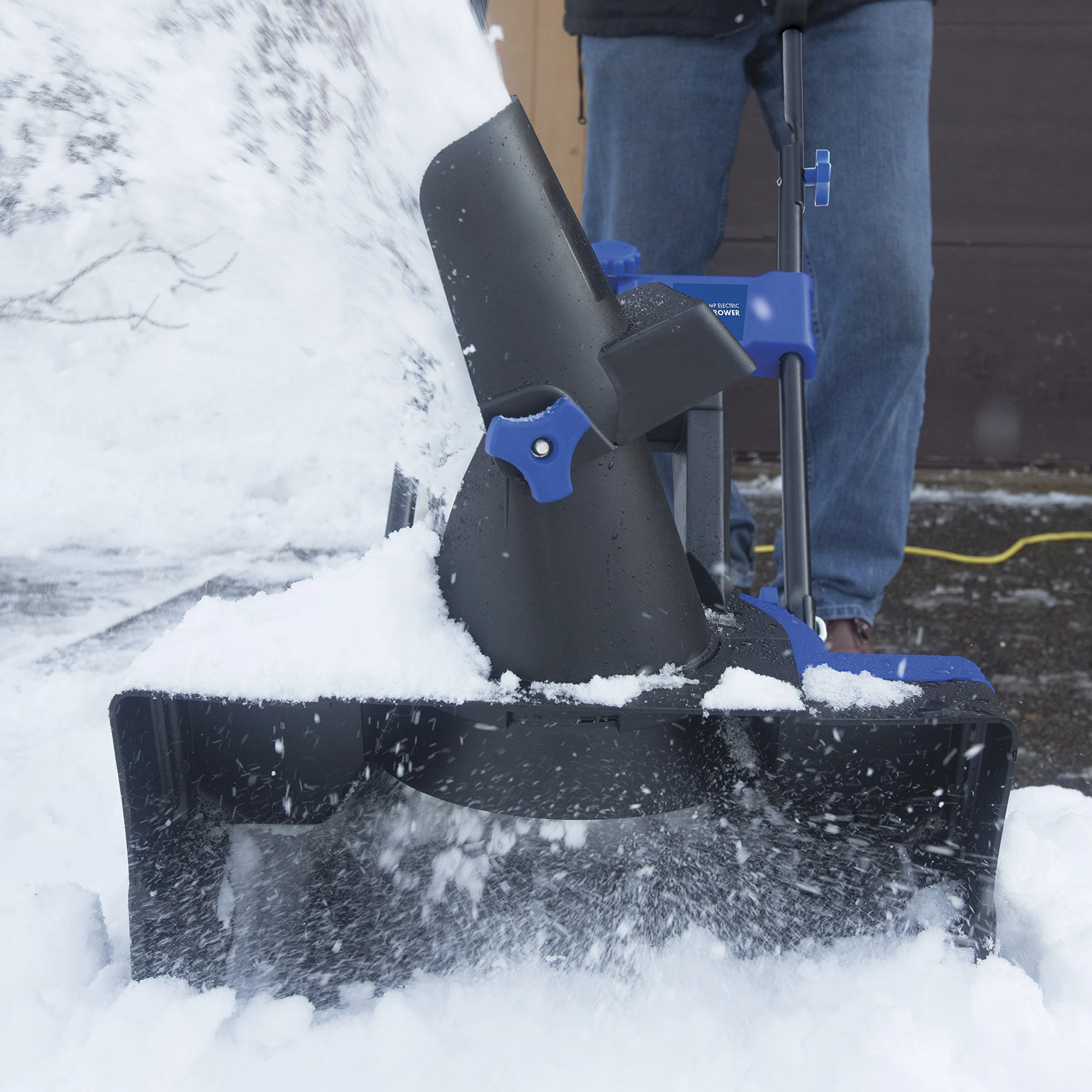 Max Clearing Power! Make quick work out of the heavy white stuff nature throws your way with the deluxe size Snow Joe Ultra SJ624E, the largest electric snow thrower currently on the market to date. Boasting a powerful 14-amp motor, this snow-throwing dynamo can move up to 730 pounds of snow per minute! Its durable, steel auger features 2 rubber blades that cut a swath 21-inches wide by 11.8-inches deep with each pass, so you can clean up large areas fast. Equipped with a 180 adjustable chute, the Ultra SJ624E throws snow up to 20 feet away in the direction you want it to go. Easy-glide wheels make the Snow Joe Ultra super easy to turn and maneuver. Plus, the scraper blade at the base of the unit efficiently scrapes the snow clear to the ground without damaging your deck or pavement. Delivering the performance of a gas machine with the convenience of electric power, the Ultra SJ624E is the smart, eco- friendly choice for snow removal this winter. No gas, no oil, no maintenance, no fuss! GET EQUIPPED with the Snow Joe Ultra and clear out fast from tough winter messes.