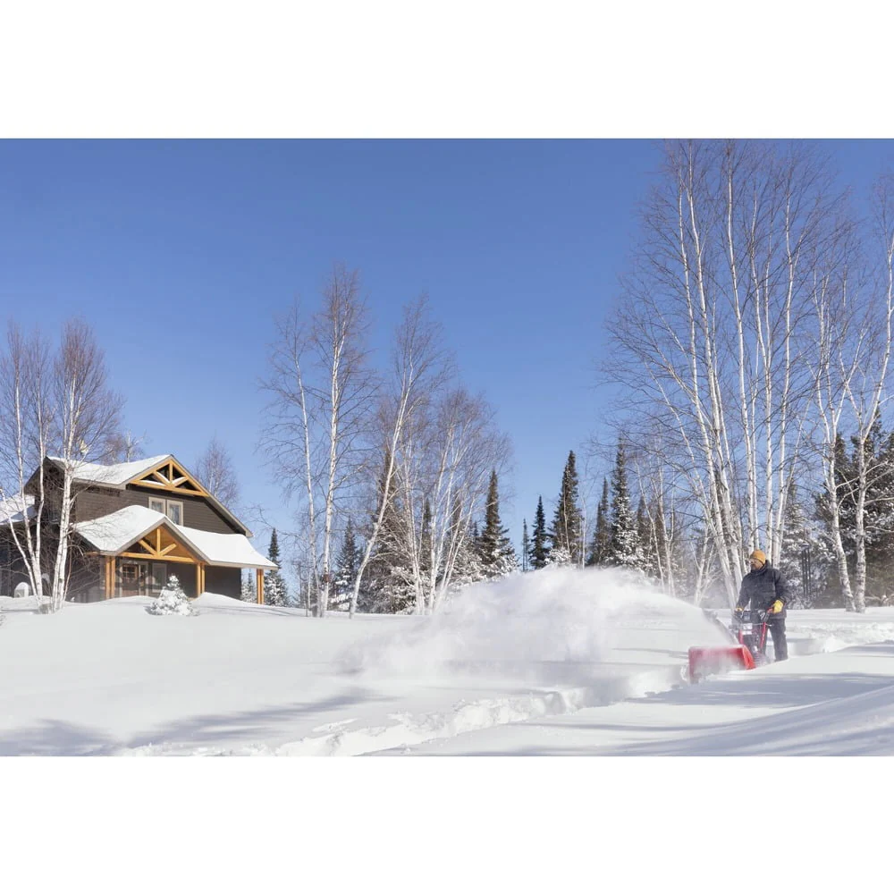 Troy-Bilt, 28", 2-Stage Gas Snow Thrower, 272cc 4-Cycle OHV Engine, Push Button Electric Start Installed, Trigger Controlled Power Steering, 28" Clearing Width, 20" Intake Height, Serrated Auger Design, Steel Gears In Cast Aluminum Gear Box, Large 12" Impeller, 6 Forward/2 Reverse Speeds, Single Hand Operation, Clutch Lock System, Ergonomically Designed Control Panel, Extended Polymer Chute With Remote Pitch Control, 16" x 4.8" X-Trac Tires, In Dash LED Headlight, 3 QT Fuel Tank Capacity, Deluxe Reversible Poly Skid Shoes, Chute Clearing Device Standard, Oil Included In Engine, Fully Assembled, 3 Year Limited .