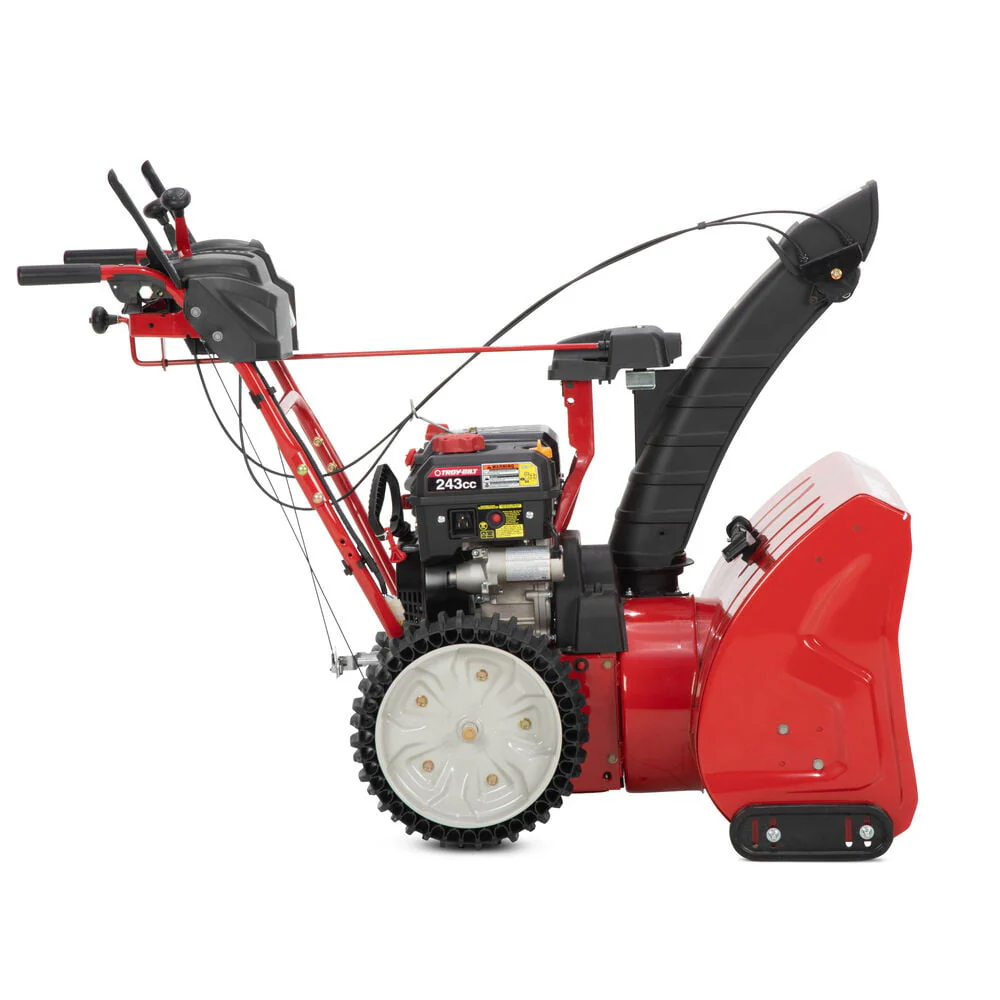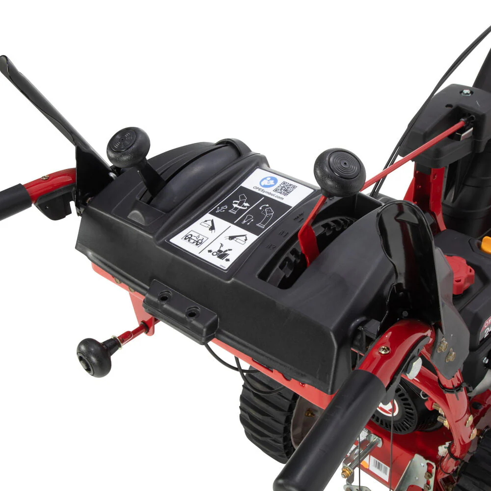 The Troy-Bilt Storm 2620 brings the power and convenience you need to make clearing snow less of a hassle. Engineered with powerful serrated augers that make quick work of heavy, icy snow. See clearer in low light conditions thanks to an in-dash headlight. Airless 15 in. x 5 in. tires provide strong traction and never go flat, reducing maintenance. A center-mount chute crank puts the machine's controls comfortably within your reach. Change the height of snow discharge from the dashboard with a remote pitch control lever and you can adjust chute controls without disengaging the drive thanks to Just 1-Hand operation. The extended chute design minimizes blowback of snow discharge on the operator. The Storm 2620 can handle up to 12 in. of snowfall with a reliable 243cc Troy-Bilt engine that starts at the push of a button, making sure winter won't keep you from doing what you love most.