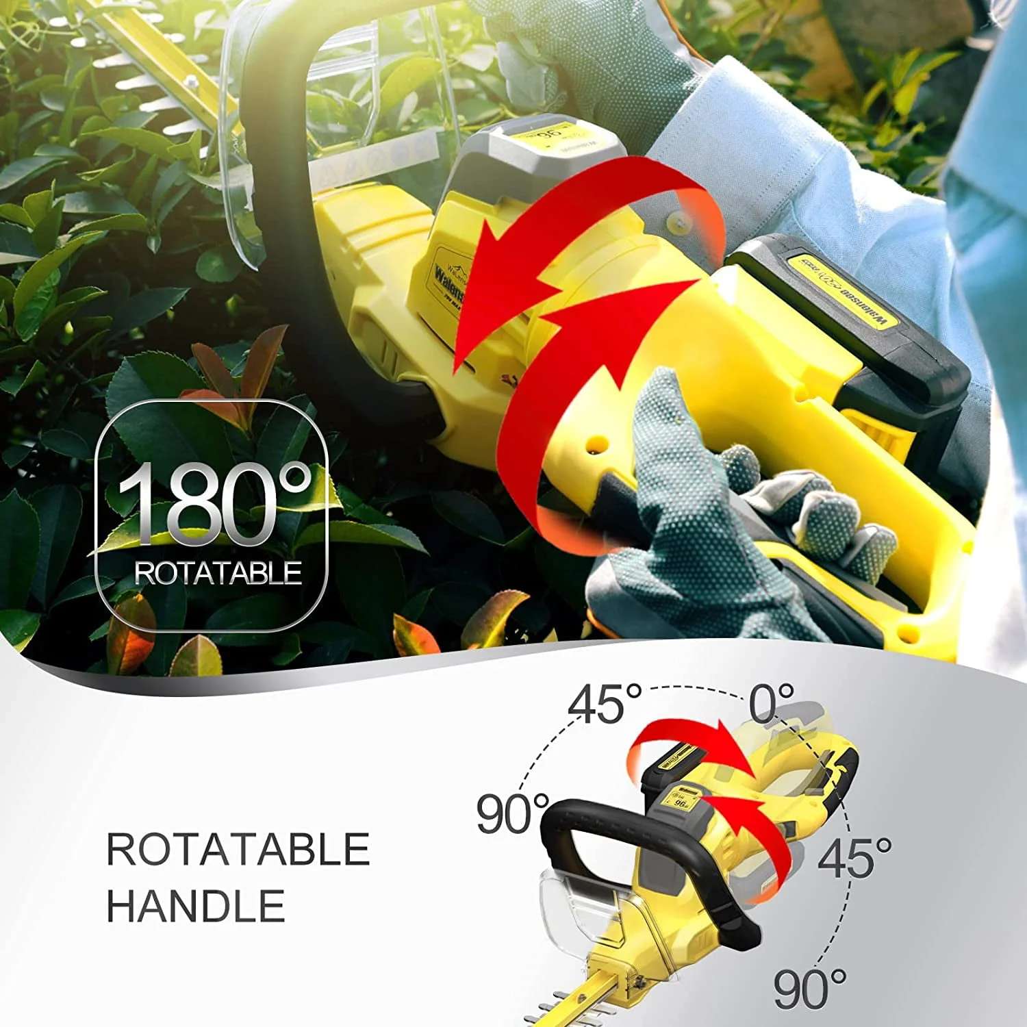 Walensee 20V MAX Cordless Hedge Trimmer, 1400RPM Electric Bush Trimmer w/ 22-Inch Dual-Action Blade, 0.67" Cutting Capacity & 5.9lb Lightweight Shrubbery Trimmer, 2.0Ah Battery & Fast Charger Included. 180° Rotation design for you and the head of hedge trimmers turns on a swivel, easy to start and well balanced. Its ergonomic rubber handle can ease the using stress of your hand.
