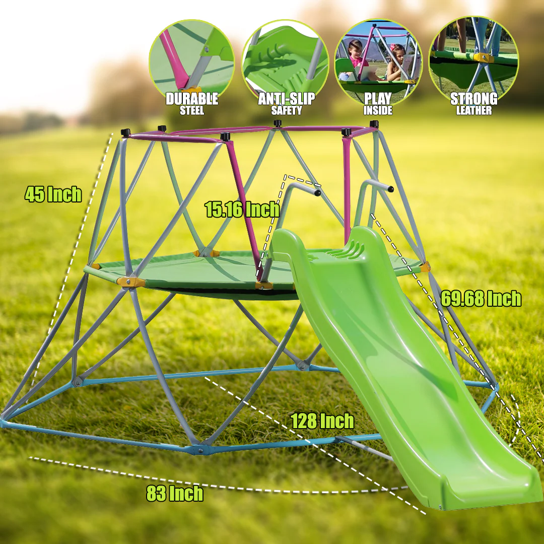 Platports Dome Climber Slide: Good for indoor and outdoor use. Kids love to climb. Walls, furniture, domes, monkey bars, you name it. They also love slides; there’s just something thrilling about sliding down a chute. Platports has combined these two playground loves of children: a climber and a slide into a dome climber slide! This will be the perfect backyard playset for some electronic-free fun! It gets your children more physically active.
