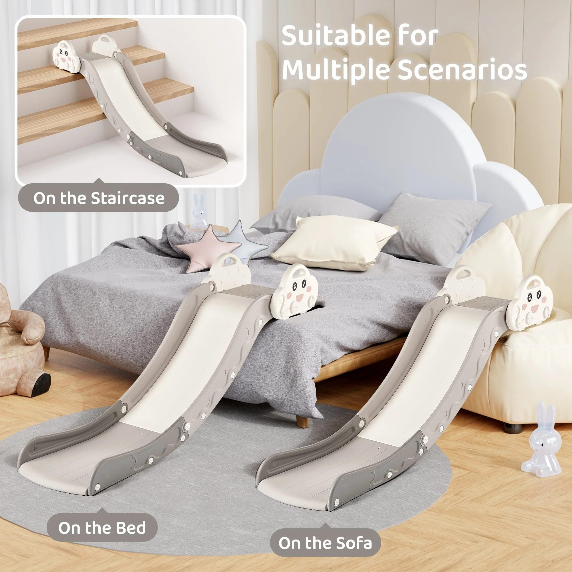Transform any rooms into a happy playground with DUKE BABY indoor sofa slide. This portable slide is carefully designed with safety measures that gives your younger kids a smooth and safe sliding fun. It fits multiple surfaces including couches, beds, stairs, nugget couches, and other furniture in suitable heights. The DUKE BABY Slide collections are all made with safe and durable materials. It’s easy to assemble, store, and move around. Slides promotes kids’ coordination and balance. It’s the perfect choice as the first slide for your children. Gift your family with this DUKE BABY indoor sofa slide. It brings fun play anytime and anywhere! • Ages: Suggested 1-5