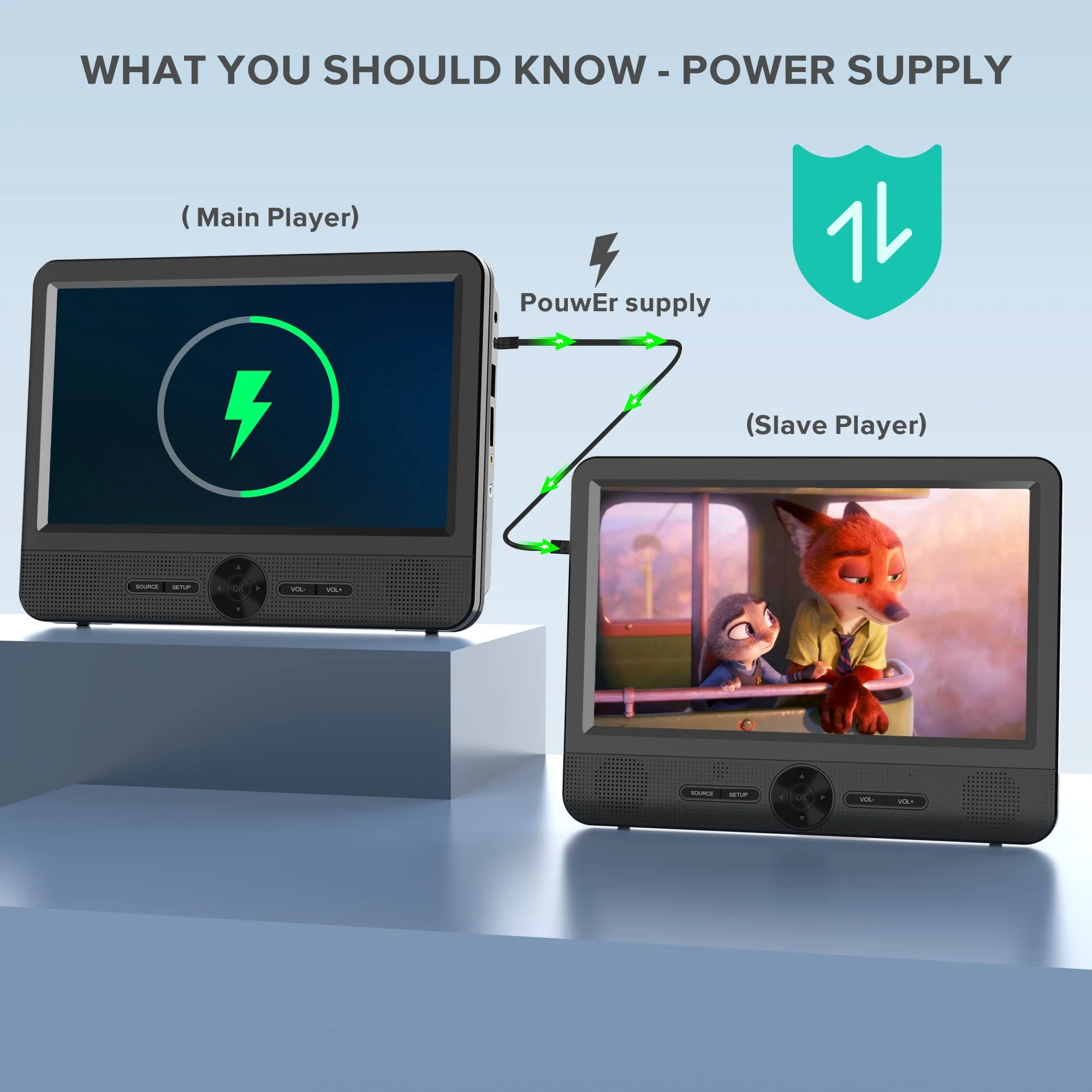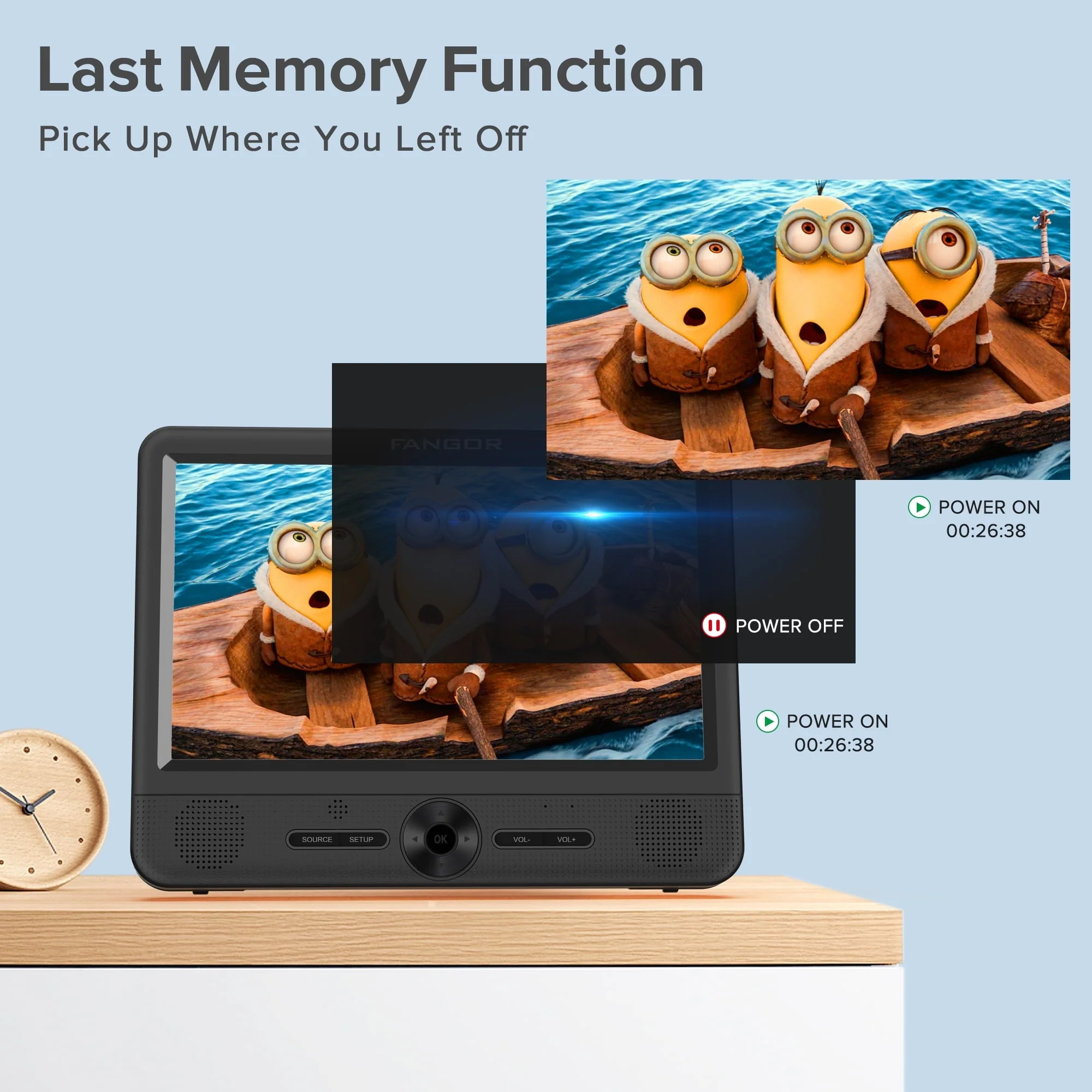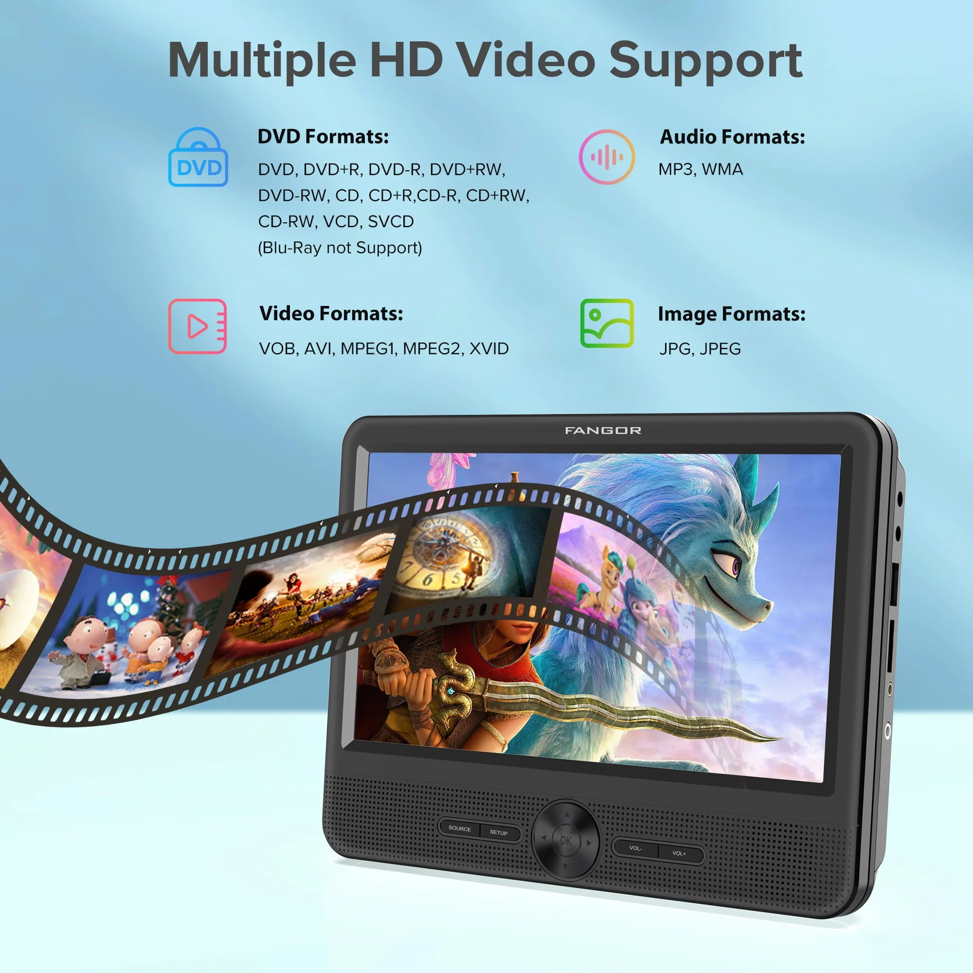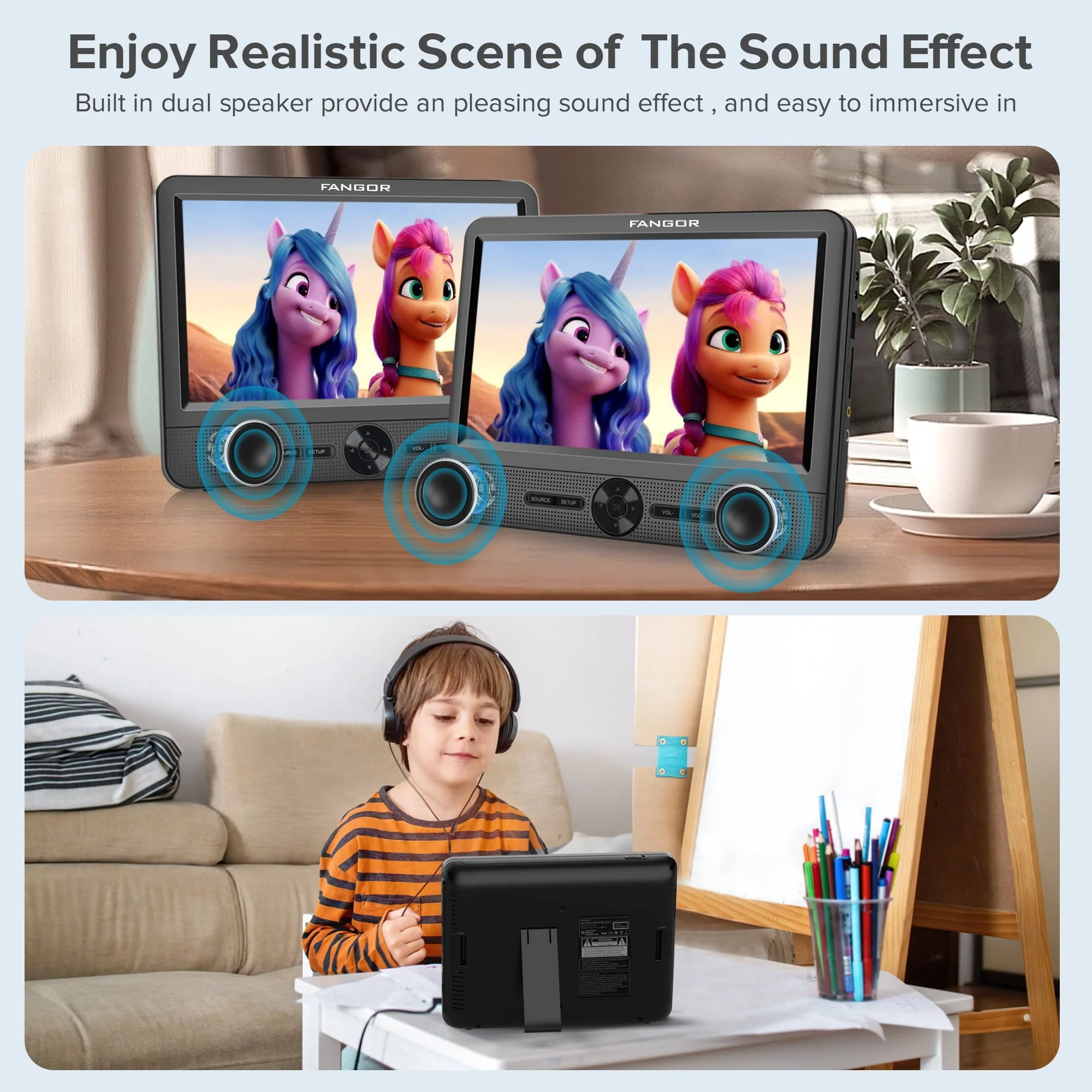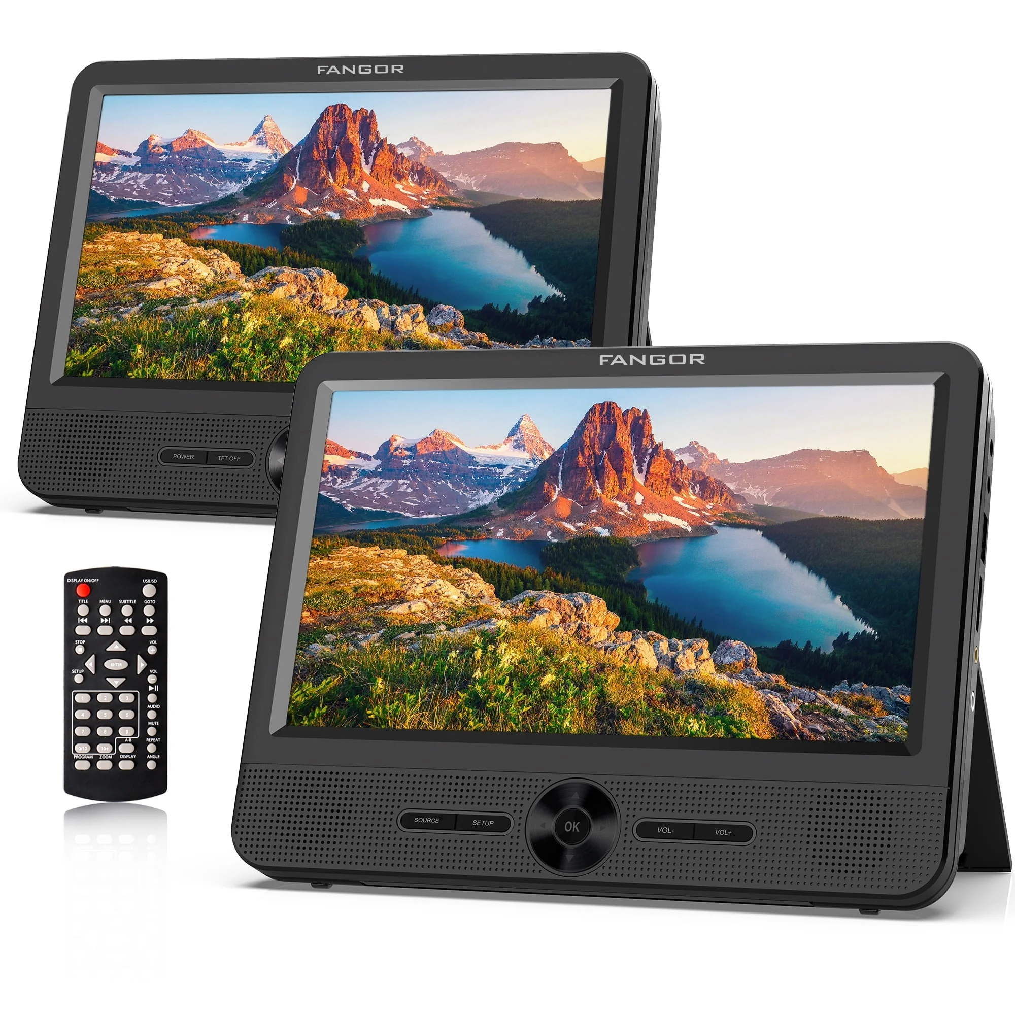 Fangor 10" Dual Screen Portable DVD for Car, Headrest DVD Player with Remote Control and 2 Headrest Bracket, Supports HDMI, USB Port, SD Card Slot, AV in /Out, Last Memory, Ideal Gift for Kids