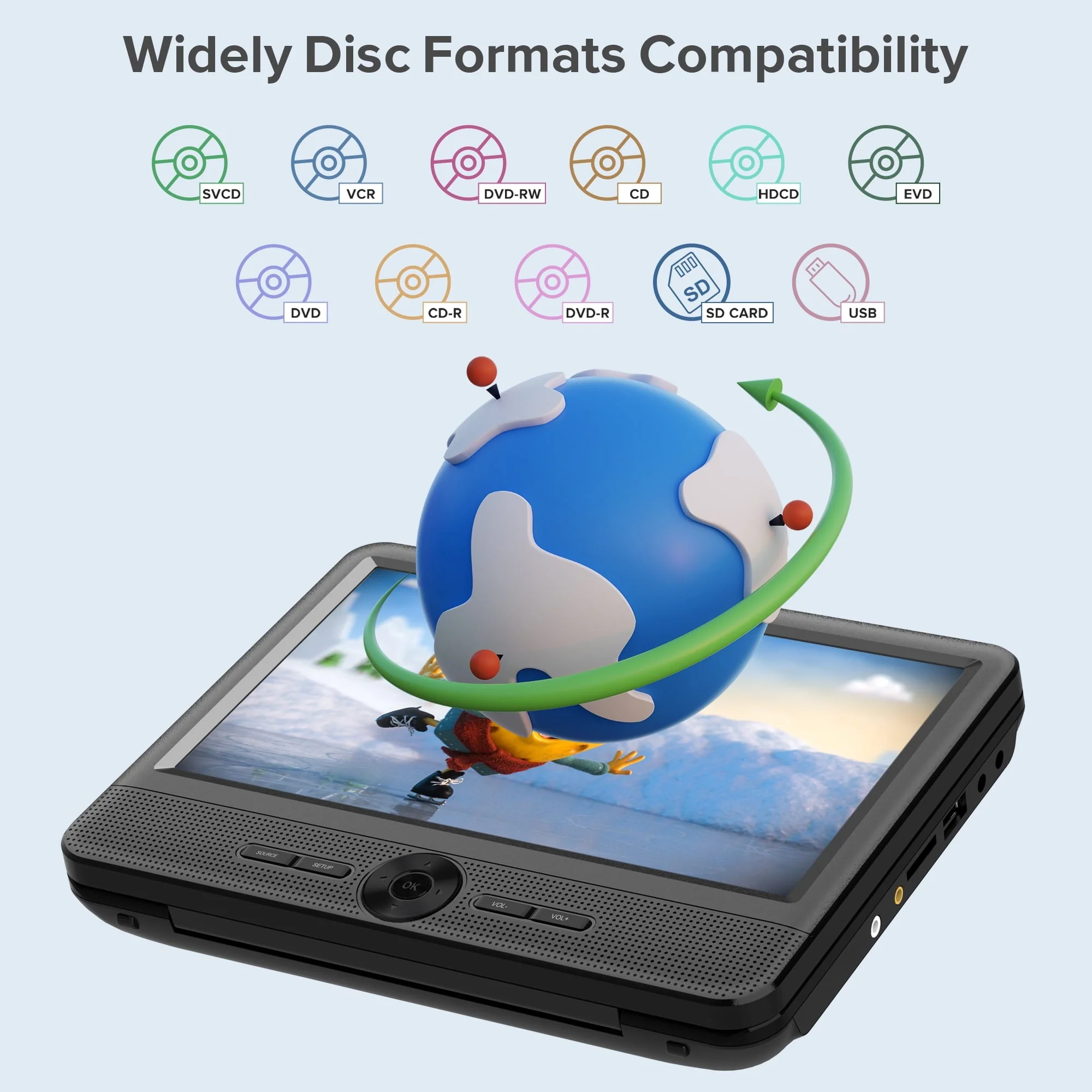The FANGOR 10" Dual Screen Portable DVD Players can be used anywhere you want to take them. The 10" screen gives you a great viewing experience. They are well-suited for long car trips but can go to any other event where you may want to provide some entertainment. You can play one movie on both screens. They each have a headphone jack for privacy and quiet, and remote control to make them easier to use. The screens are compatible with widescreen format DVDs and they produce excellent color quality (Blu-ray Disc not supported). The dual-screen DVD player has stereo sound output. It can easily be mounted in almost any vehicle with the included mounting kits, and you will also get a car charger to keep them going while you are on the road. The FANGOR 10" Dual Screen Portable DVD Player is ideal for keeping kids quiet and comfortable on long car trips. They can be used at home or anywhere else you may need them.