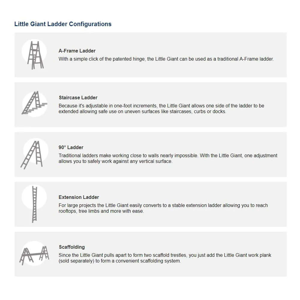 When you have projects to do, you need a ladder that can do it all. The Little Giant LT is the perfect ladder to complete those tasks. From framing a house, to hanging drywall, the LT will help you finish your to-do list.