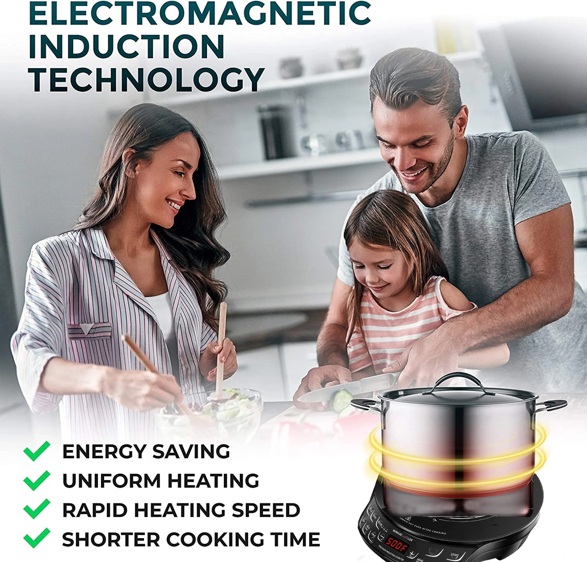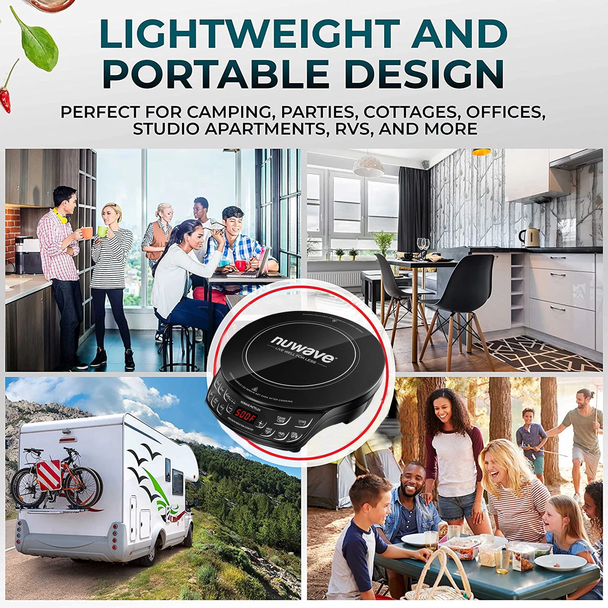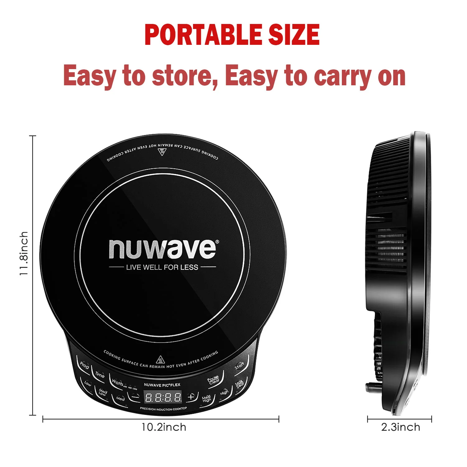 NuWave Portable Induction Cooktop Precision Induction Cooktop Flex offers precise temperature control with the simple press of a button. You can adjust the cooking temperature in 10 Degree increments between 100 Degree and 500 Degree F for a total of 45 precise temperature settings. The induction burner's induction technology heats the cookware directly, no the surrounding area, making it incredibly safe. With no open flame or hot coil, there's virtually no risk of fire. Utilizing 1300 watts of power, the lightweight and portable induction hot plate allows you to cook gourmet meals virtually anywhere. It even offers state-of-the-art programming technology with 100 hours of memory that allow you to program your favorite cooking procedures.