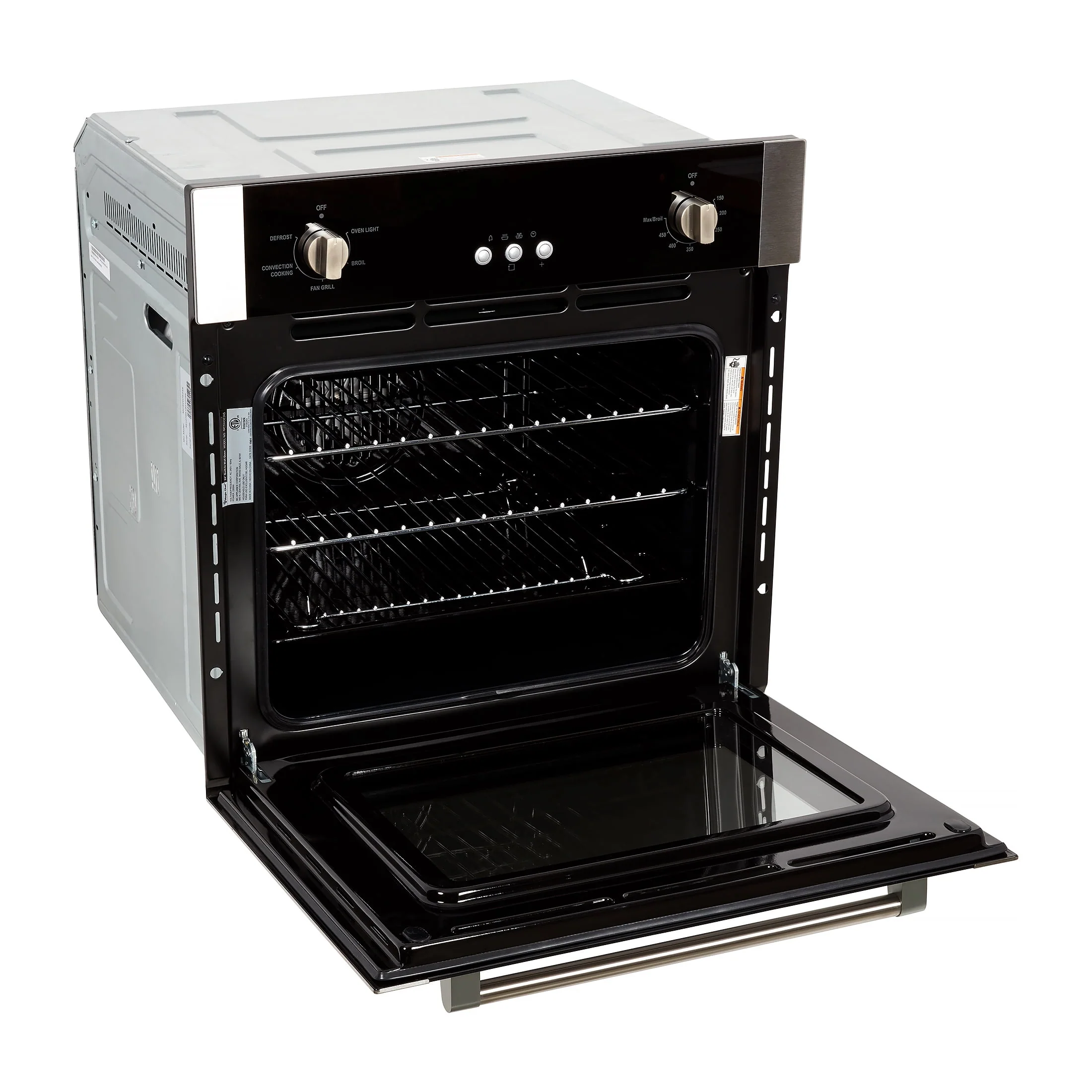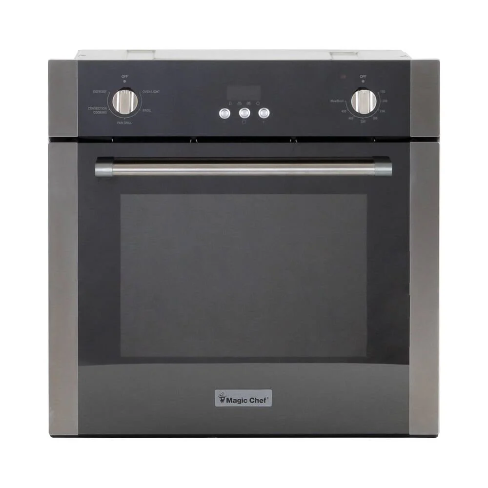The Magic Chef MCSWOE24s is a 24"-inch electric wall oven offers maximum functionality in a compact space making this the ideal solution for smaller kitchens. The 2.2 cu. ft. oven capacity and two adjustable oven racks allow plenty of room to prepare family meals. The convection fan distributes heat throughout the oven cavity for quick, evenly cooked results. Plus, the sleek stainless steel and mirrored glass exterior look great in any kitchen.