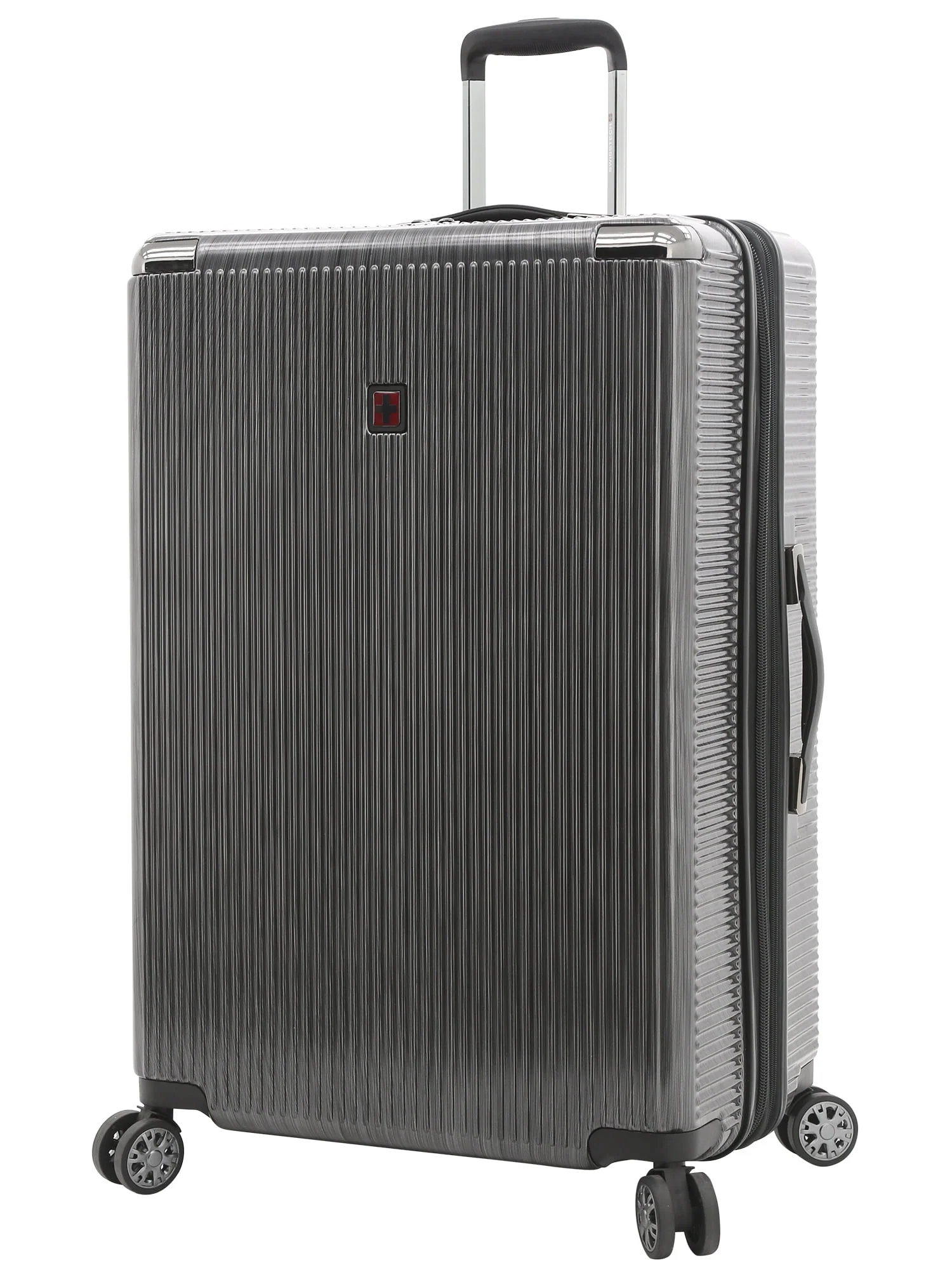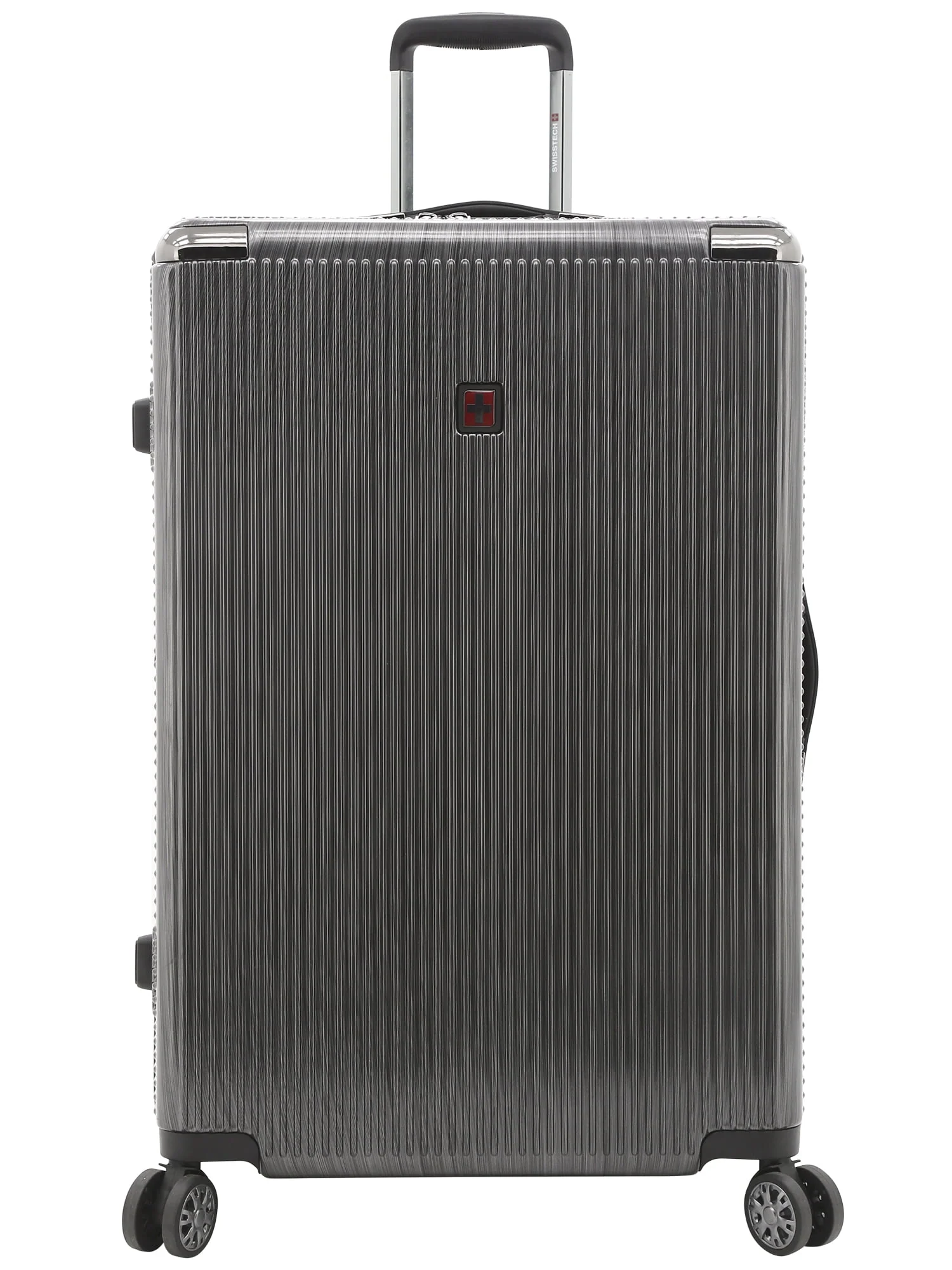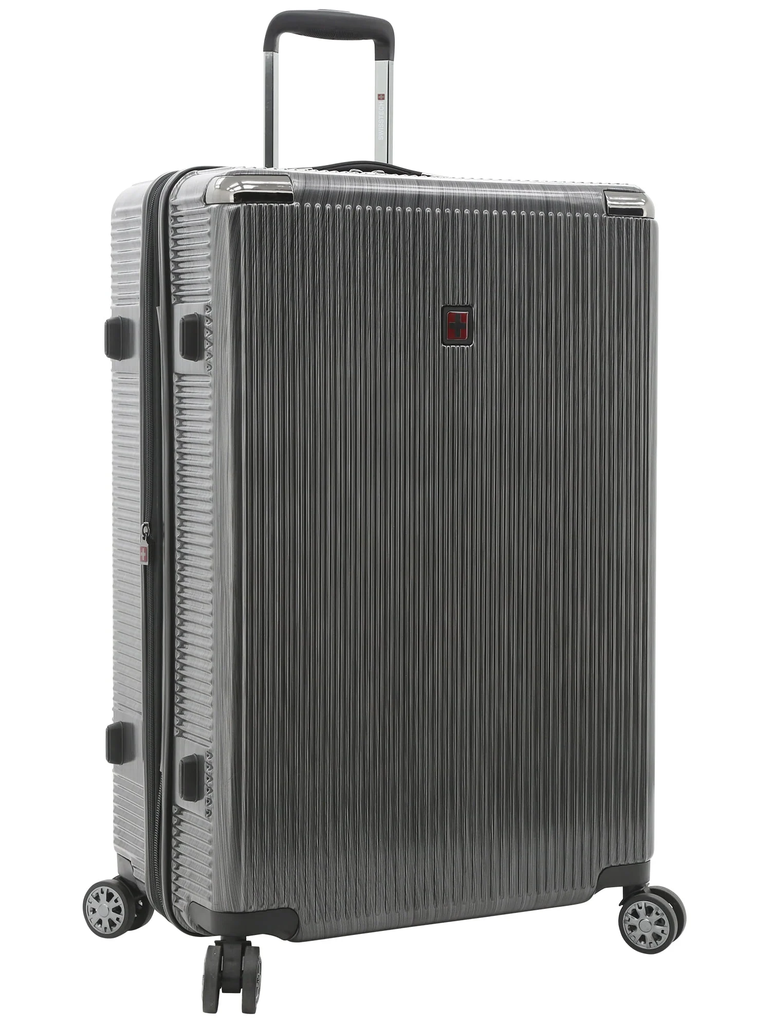 This Swiss Tech 29" lightweight hard side expandable rolling checked suitcase features 8-wheel spinners, a multi-stage locking telescopic handle, with soft grip handle, and an authorized TSA combination lock with built in USB port. Made of hard side ABS and burnished with polycarbonate coating for extra protection, it will stand up to the SWISS TECH name. Additionally, it expands 2" for more packing capacity. It has both a side and top soft gel carry handles for easy carrying, ideal for removing the bag from the overhead compartments on planes. The interior has plenty of packing areas including a separate compartment, removable wet pocket, elastic shoe pockets, and sturdy tie-down compression straps that holds your items in place. This Excursion rolling upright measures 29" x 19.5" x 12", and the total height with the wheels is 31" x 19.5" x 12" and weighs 10.5 lbs. It is exclusive on Walmart.com and comes with 15-year manufacturer’s warranty.