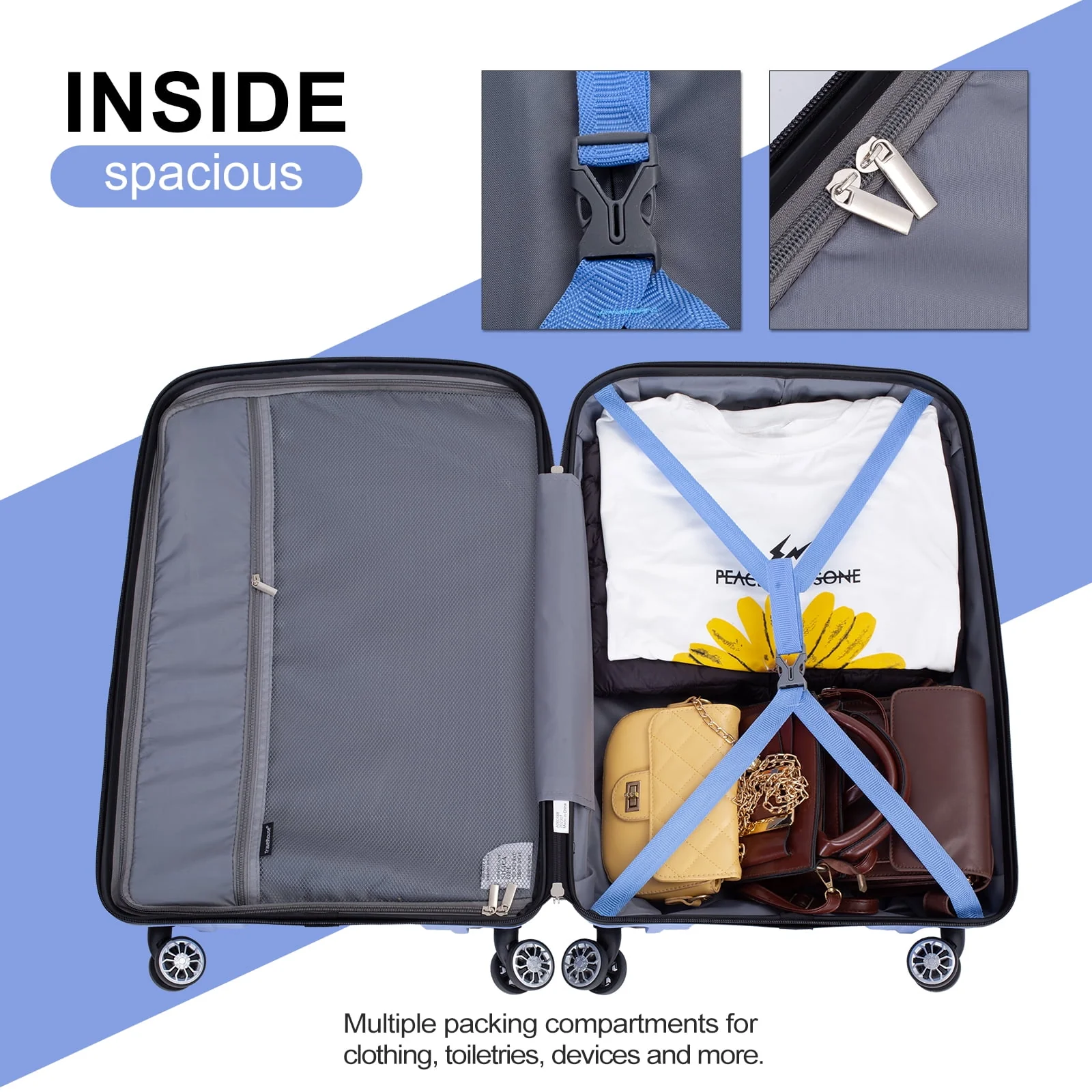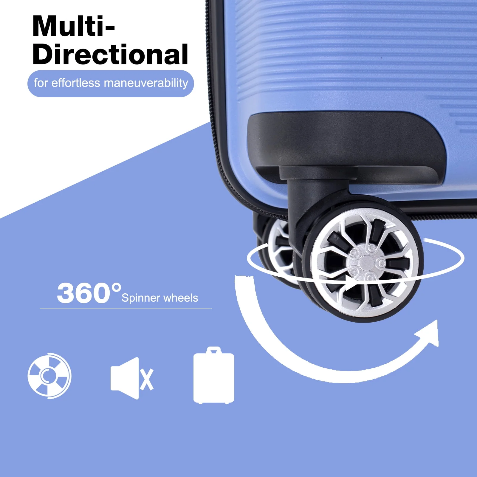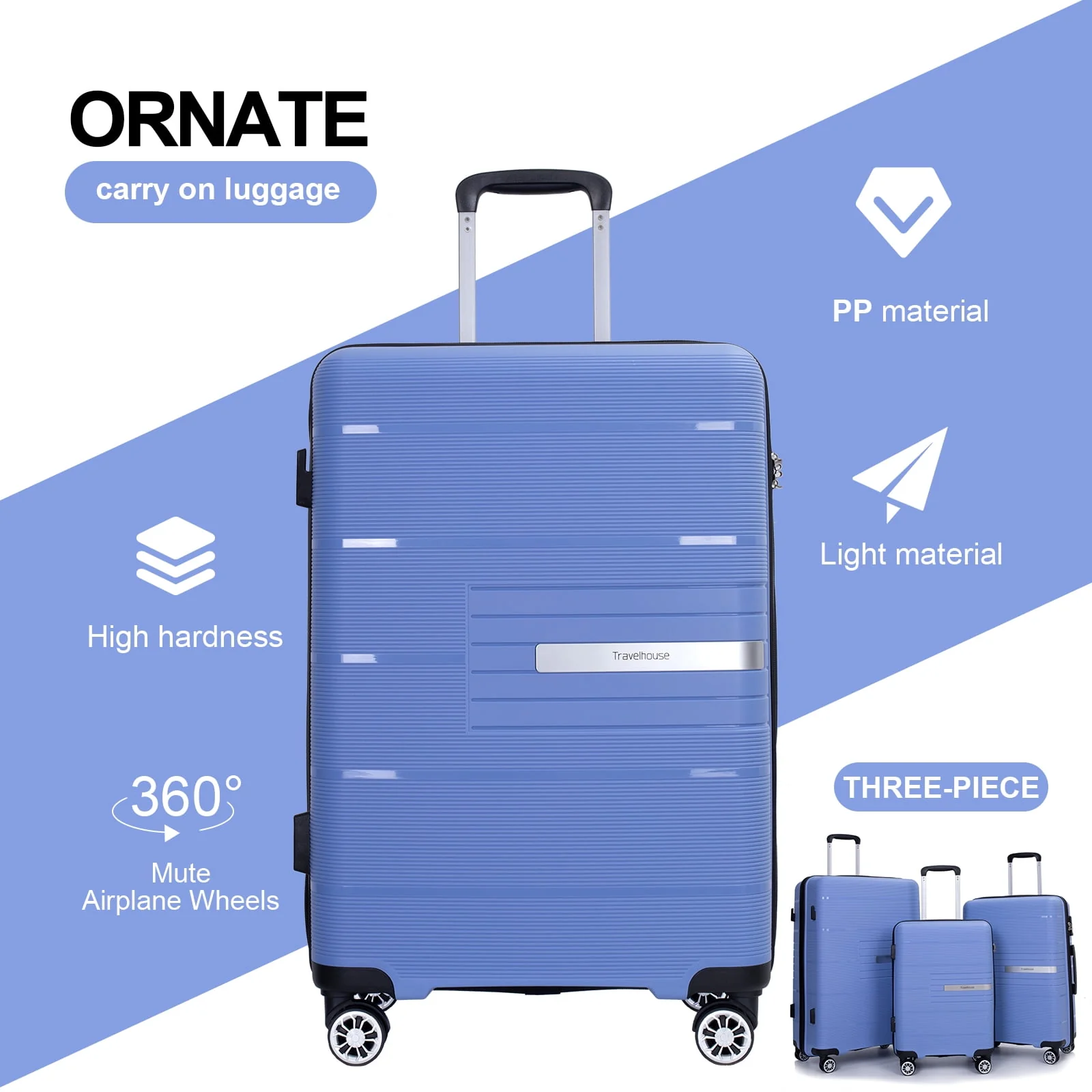 Tripcomp 3 Piece Luggage Sets, Hard Shell Carry on Luggage, PP Case with Two Hooks, Spinner Wheels, TSA Lock, Airline Approved, Lightweight Durable Suitcase, (20"24"28")(Purplish Blue)